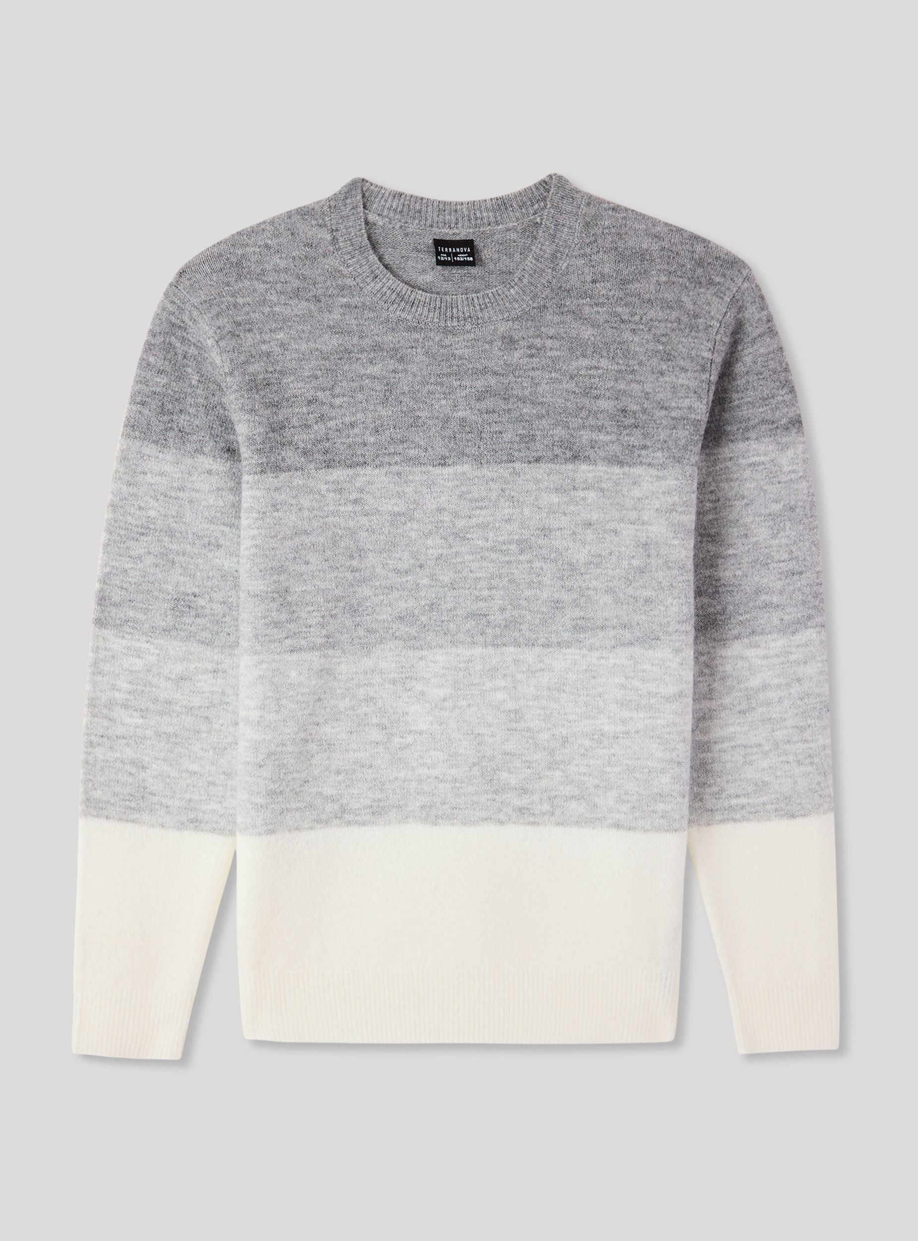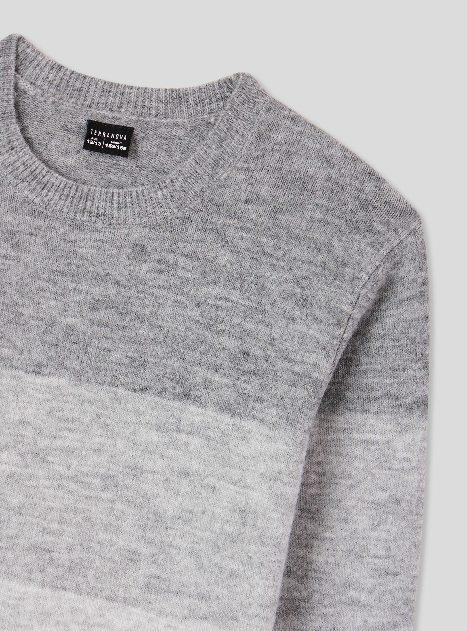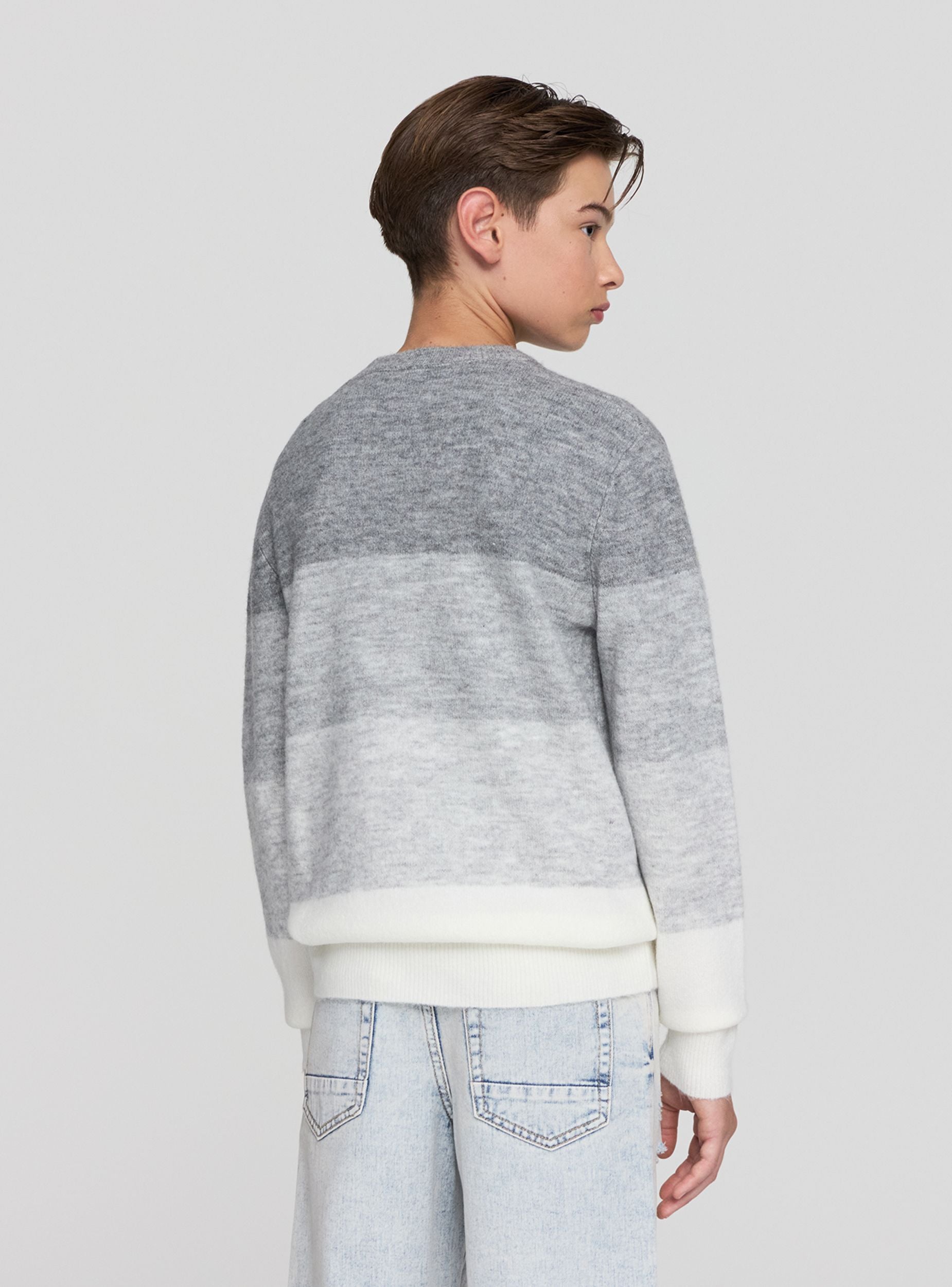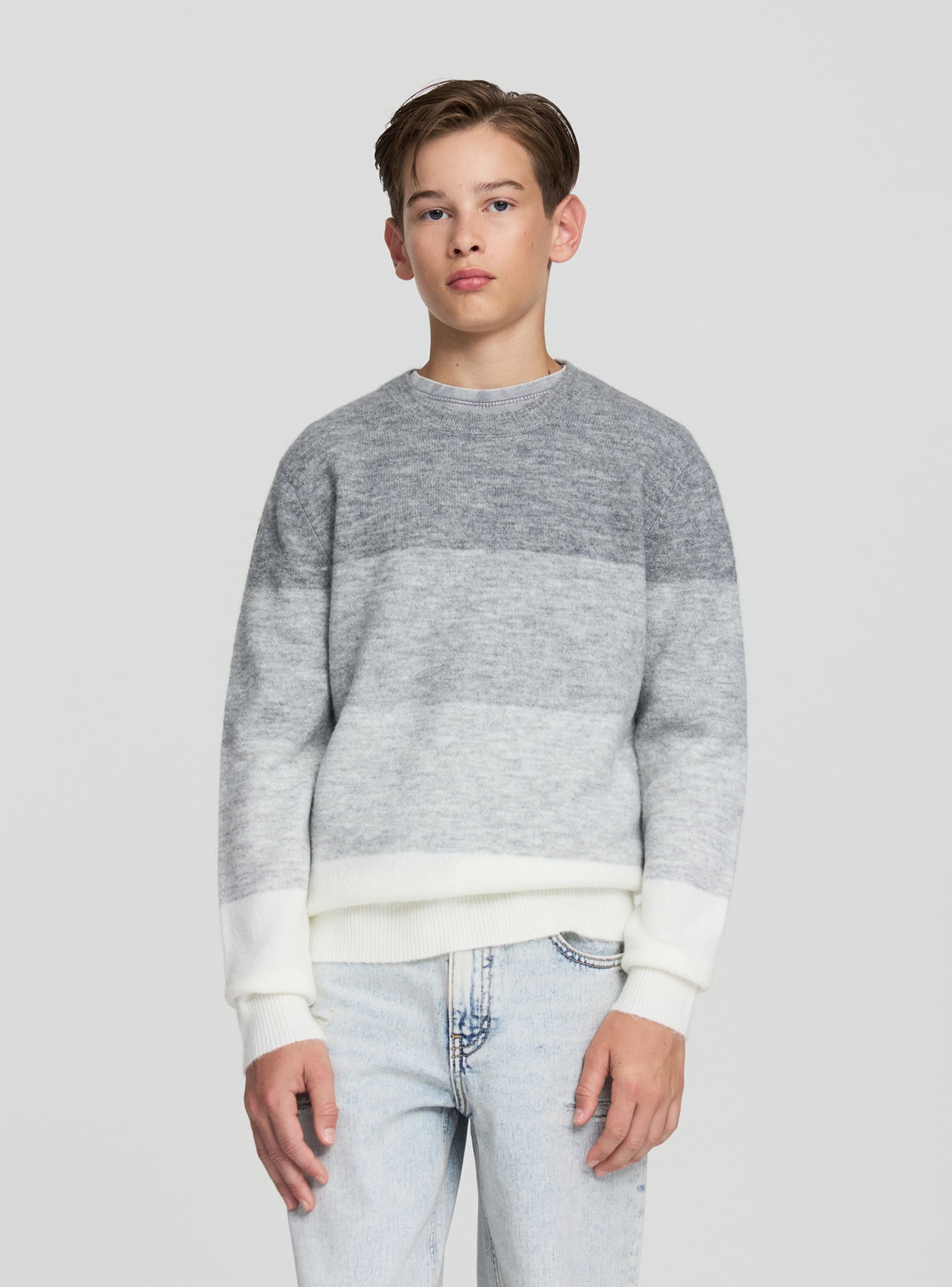 Detský sveter s dlhými rukávmi, ideálny na neformálny a všestranný vzhľad. Dizajn s farebnými prechodmi pruhov dodáva moderný nádych, ideálny do školy alebo na voľný čas. Okrúhly výstrih a regular fit zabezpečujú pohodlie počas celého dňa. Ľahko sa kombinuje s džínsami alebo športovými nohavicami, je praktickou voľbou na každú príležitosť.Detaily