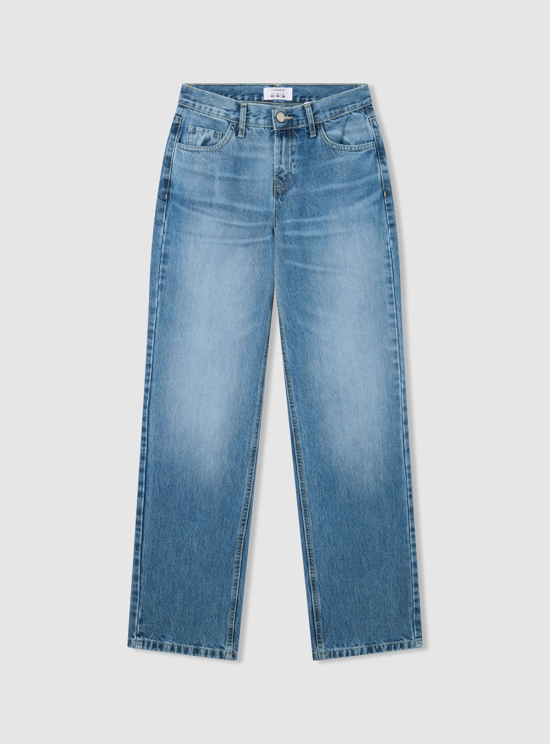 Dámske džínsy s jednofarebným dizajnom, ideálne pre ležérny a všestranný vzhľad. Majú rovný strih (straight leg), ktorý zvýrazňuje siluetu, s nízkym pásom pre moderný nádych. Sú vybavené zapínaním na gombík a zips, a 5 praktickými vreckami. Perfektné na kombinovanie s tričkami alebo košeľami pre každodenný outfit.