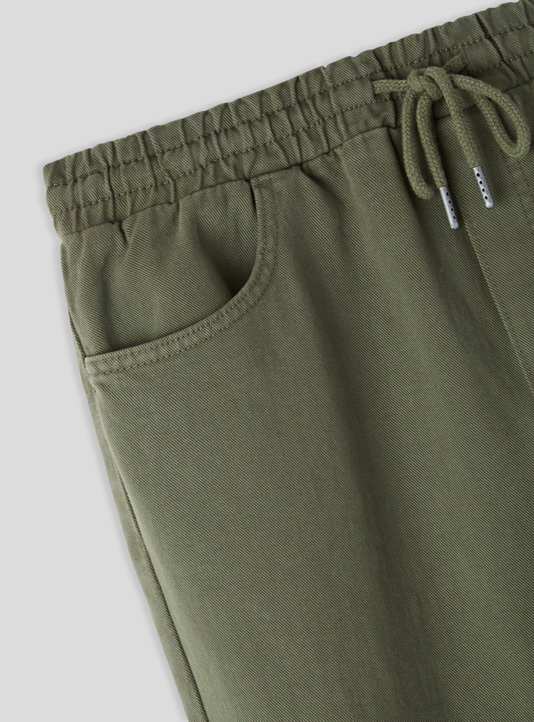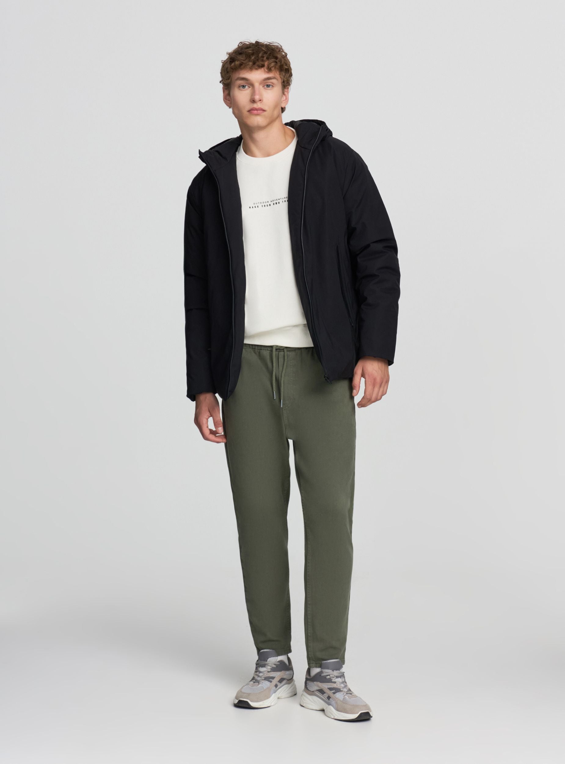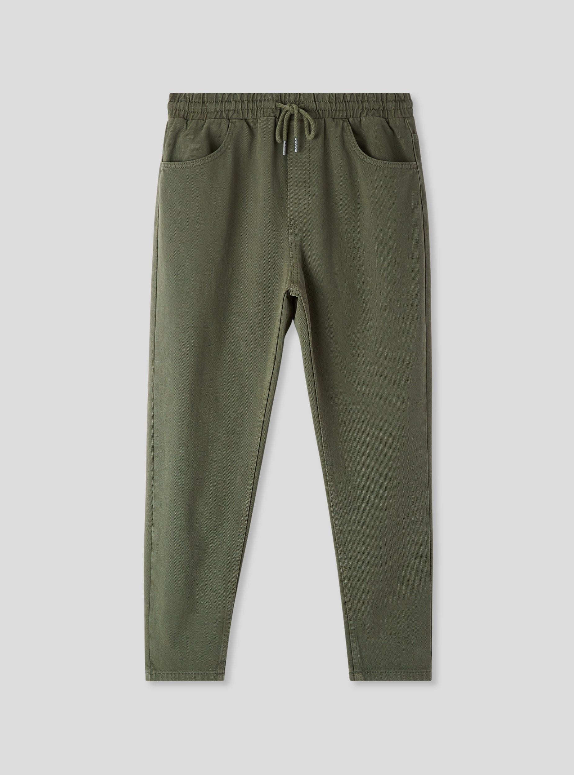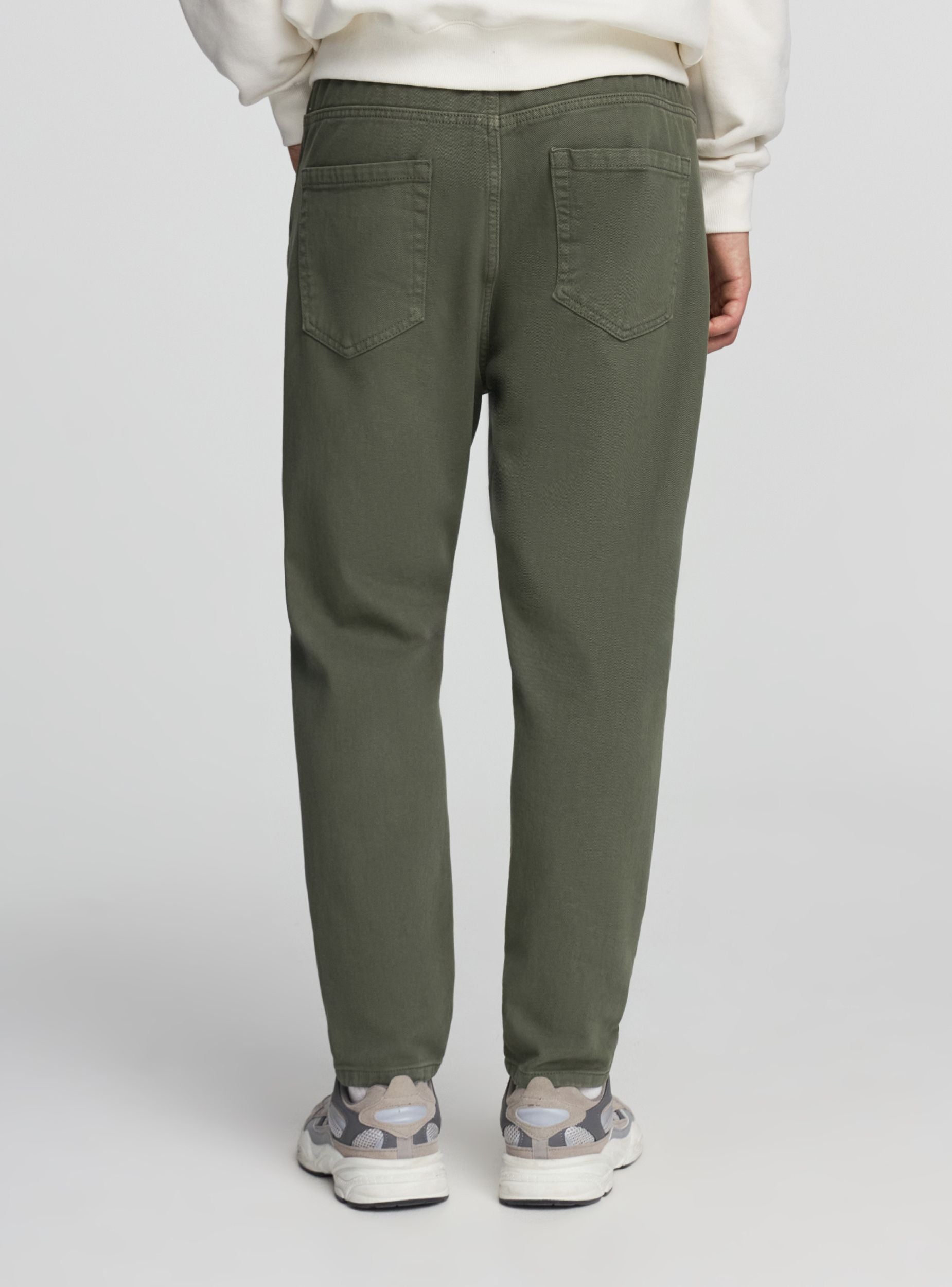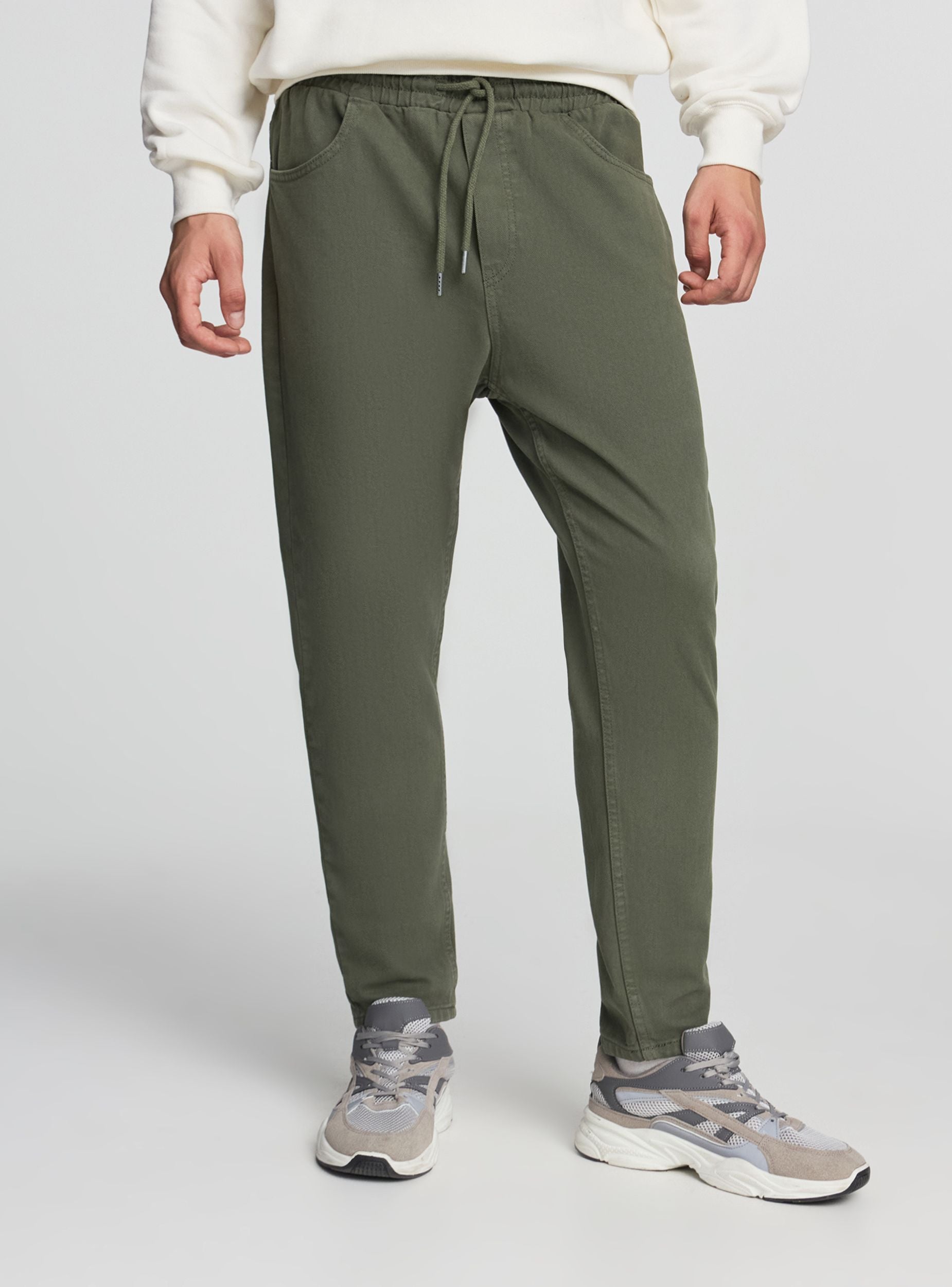 Pánske dlhé nohavice ideálne pre ležérny a všestranný vzhľad. Elastický pás s šnúrkou zaručuje pohodlie a praktickosť, zatiaľ čo regulárny strih sa ľahko prispôsobí rôznym siluetám. Bočné vrecká s lemovaním a zadné vrecká pridávajú funkčnosť, čo robí tieto nohavice dokonalé ako na voľný čas, tak aj na neformálne výlety. Jednofarebná denimová tkanina ich robí ľahko kombinovateľnými s akýmkoľvek iným oblečením.Detaily