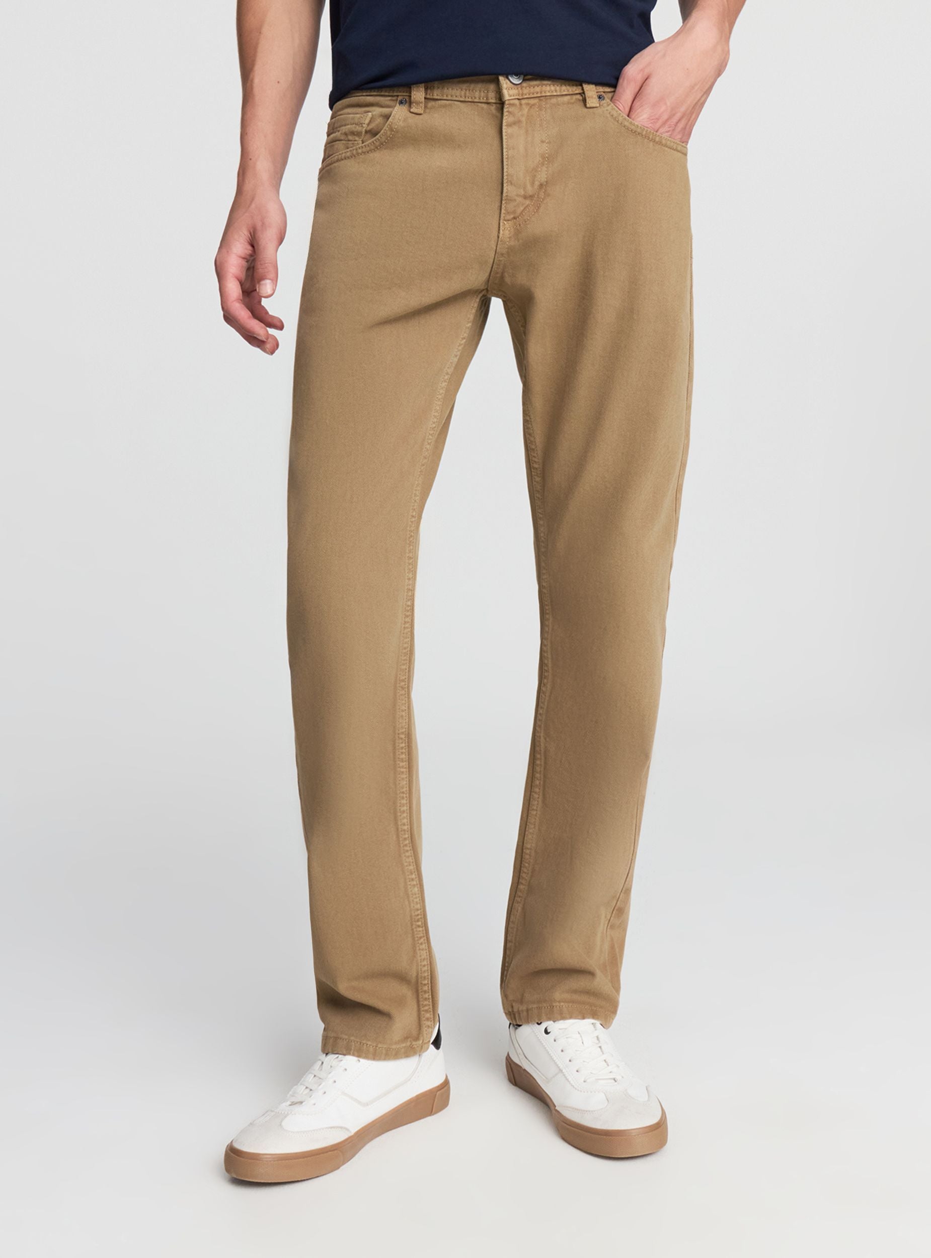 Rifľové nohavice regular fit v jednofarebnom prevedení