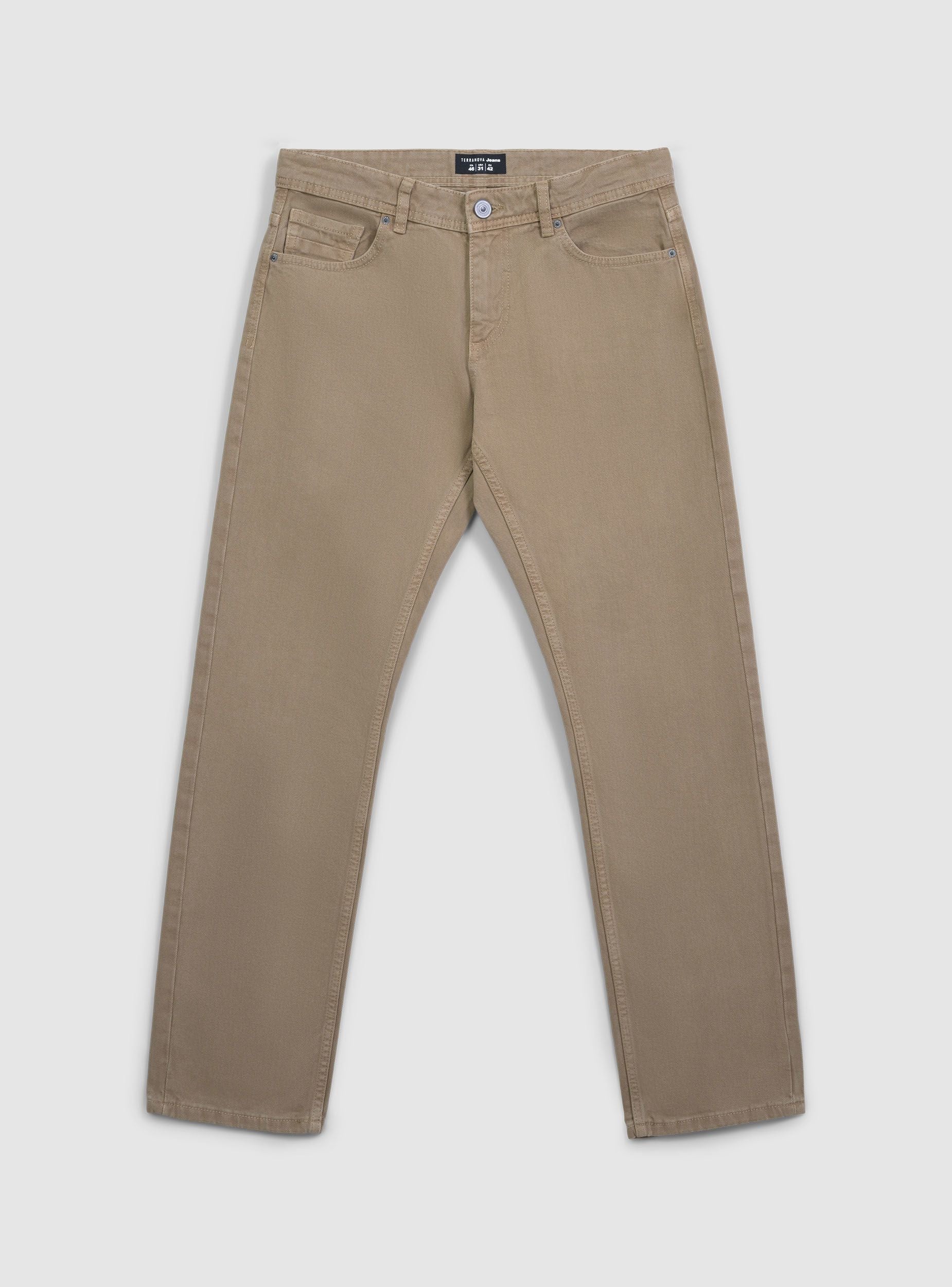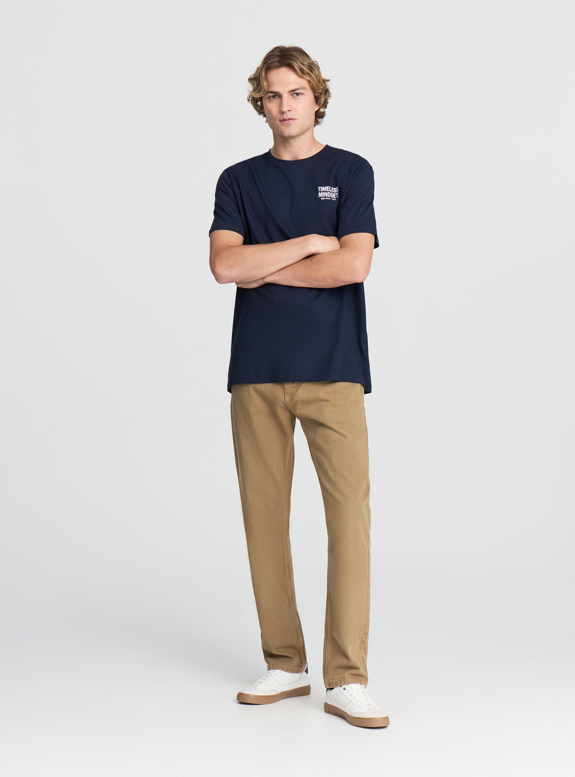Pánske džínsy s regular strihom, ideálne pre ležérny a všestranný vzhľad. Majú zapínanie na gombík a zips, funkčné zadné a predné vrecká a jednofarebný dizajn, ktorý sa ľahko kombinuje s rôznymi outfitmi. Perfektné na nosenie s tričkom alebo košeľou pre neformálny alebo polofomálny vzhľad.