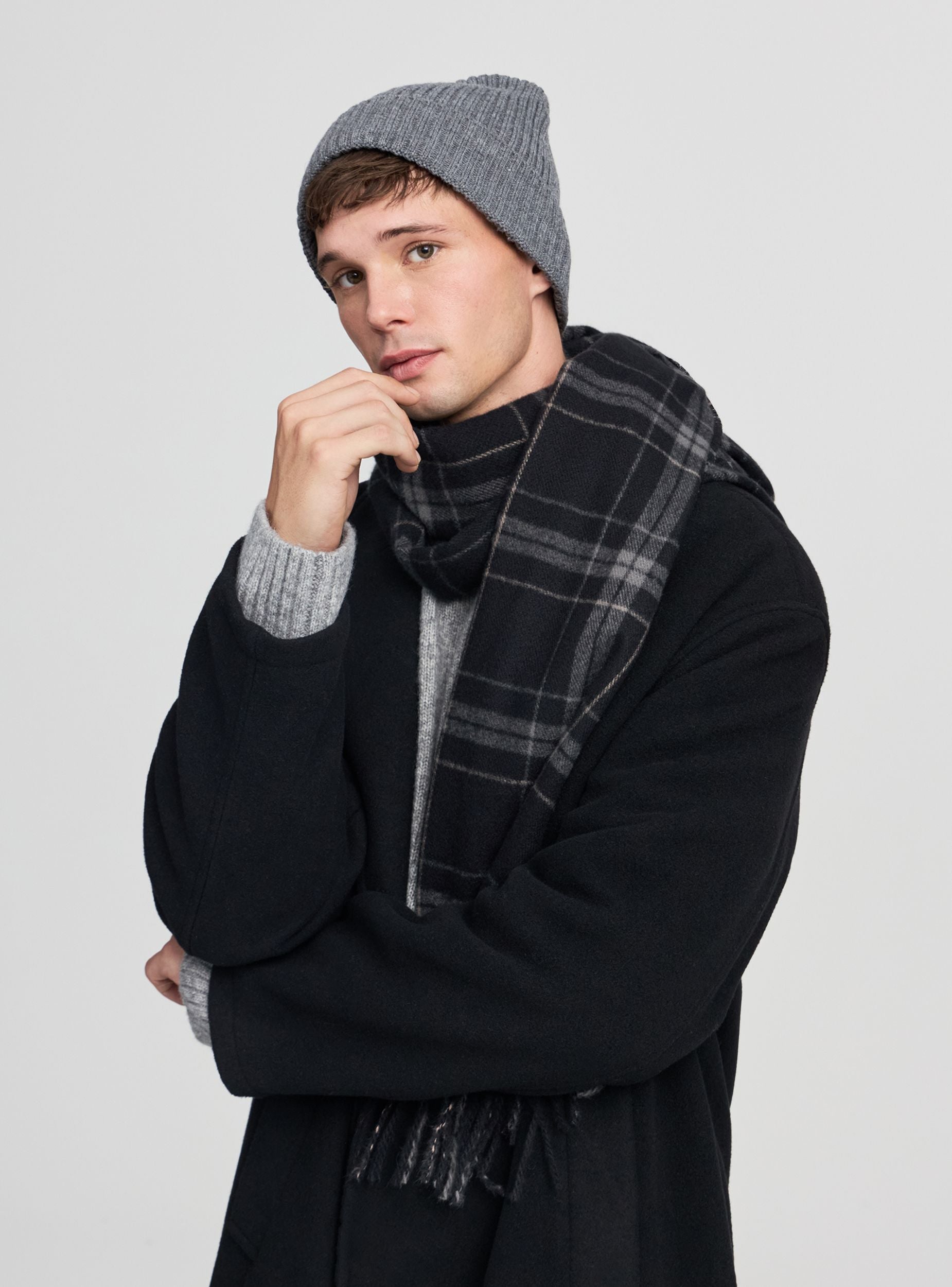 Pánsky šál s károvaným vzorom, ideálny na doplnenie elegantných alebo ležérnych outfitov. Má jemnú úpravu a detaily s strapcami na koncoch, ktoré pridávajú štýlový nádych. Perfektný na ochranu pred chladom počas zimnej sezóny, ľahko sa kombinuje s kabátmi a bundami. Univerzálny doplnok na obohatenie pánskeho šatníka.