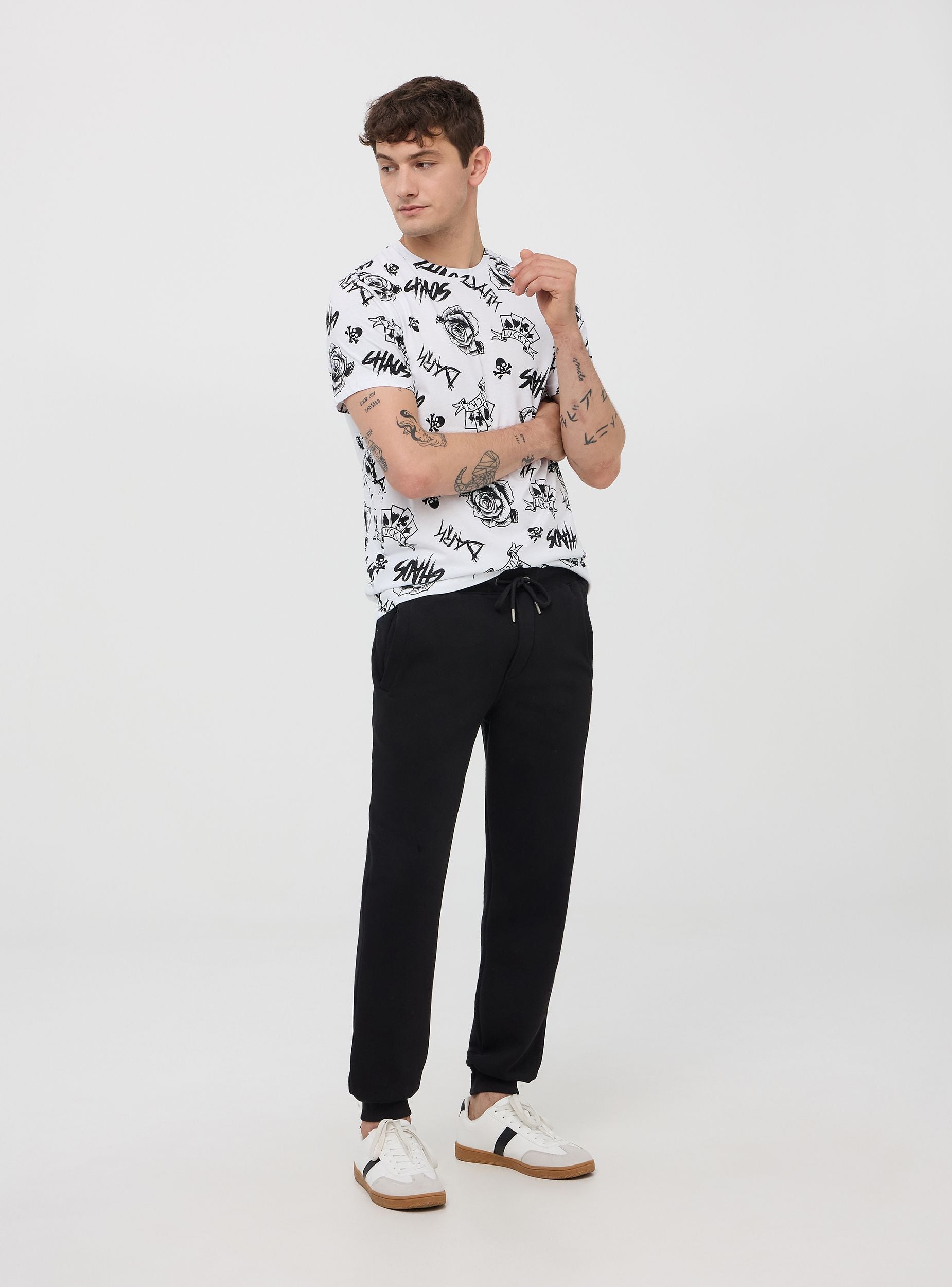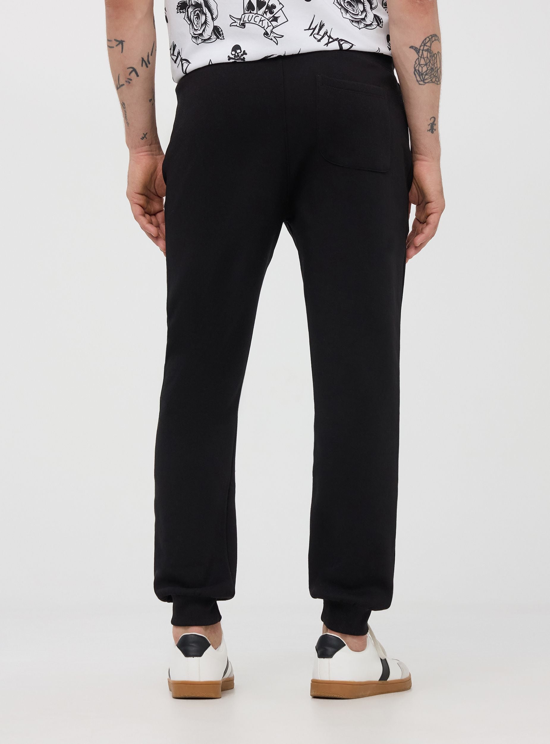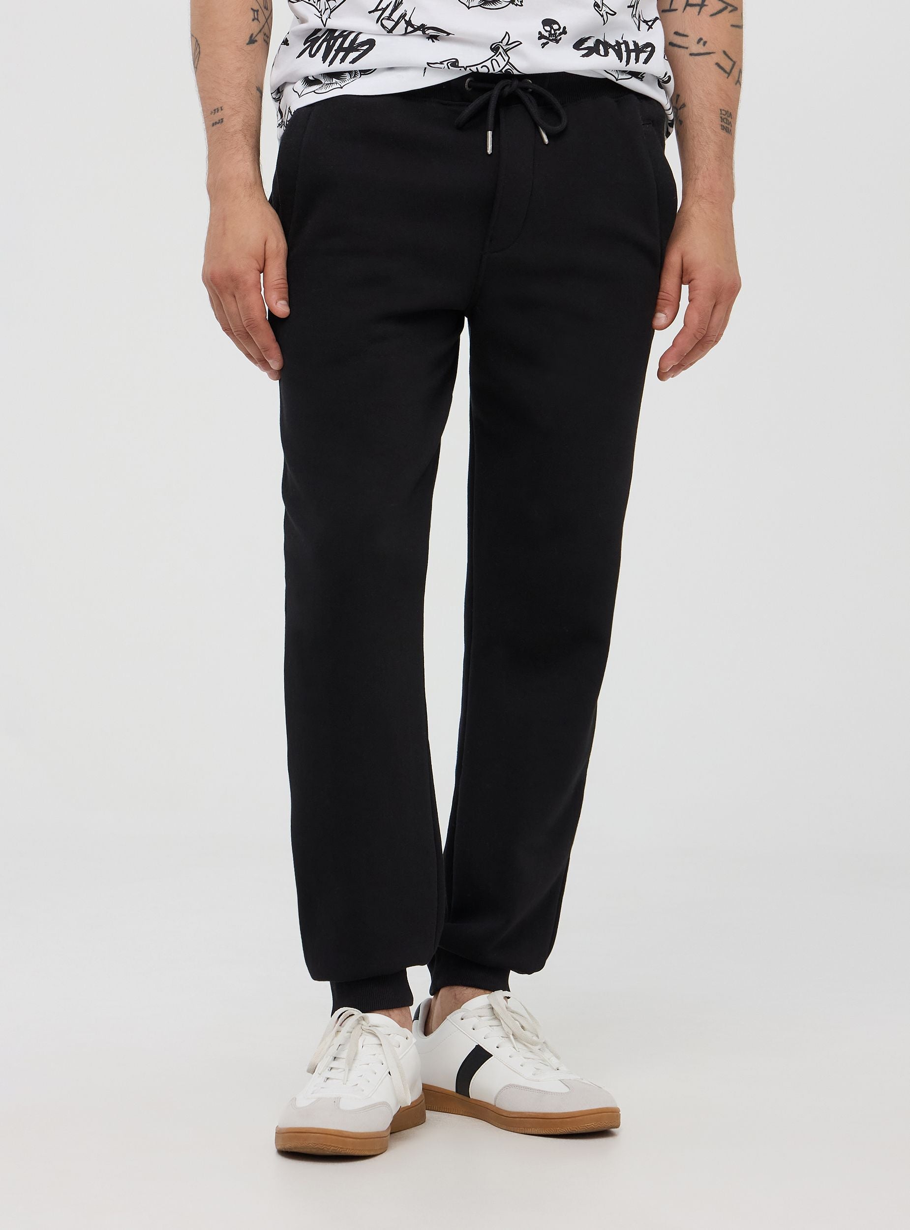 Pánske teplákové nohavice. Vyrobené z ťažkého jednofarebného materiálu. Model s elastickým pásom a nastaviteľnou šnúrkou pre zabezpečenie prispôsobivého a pohodlného strihu, bočné vrecká a jedno zadné vrecko, elastické manžety. Perfektné na voľný čas, chvíle relaxácie alebo neformálne výlety.Detaily