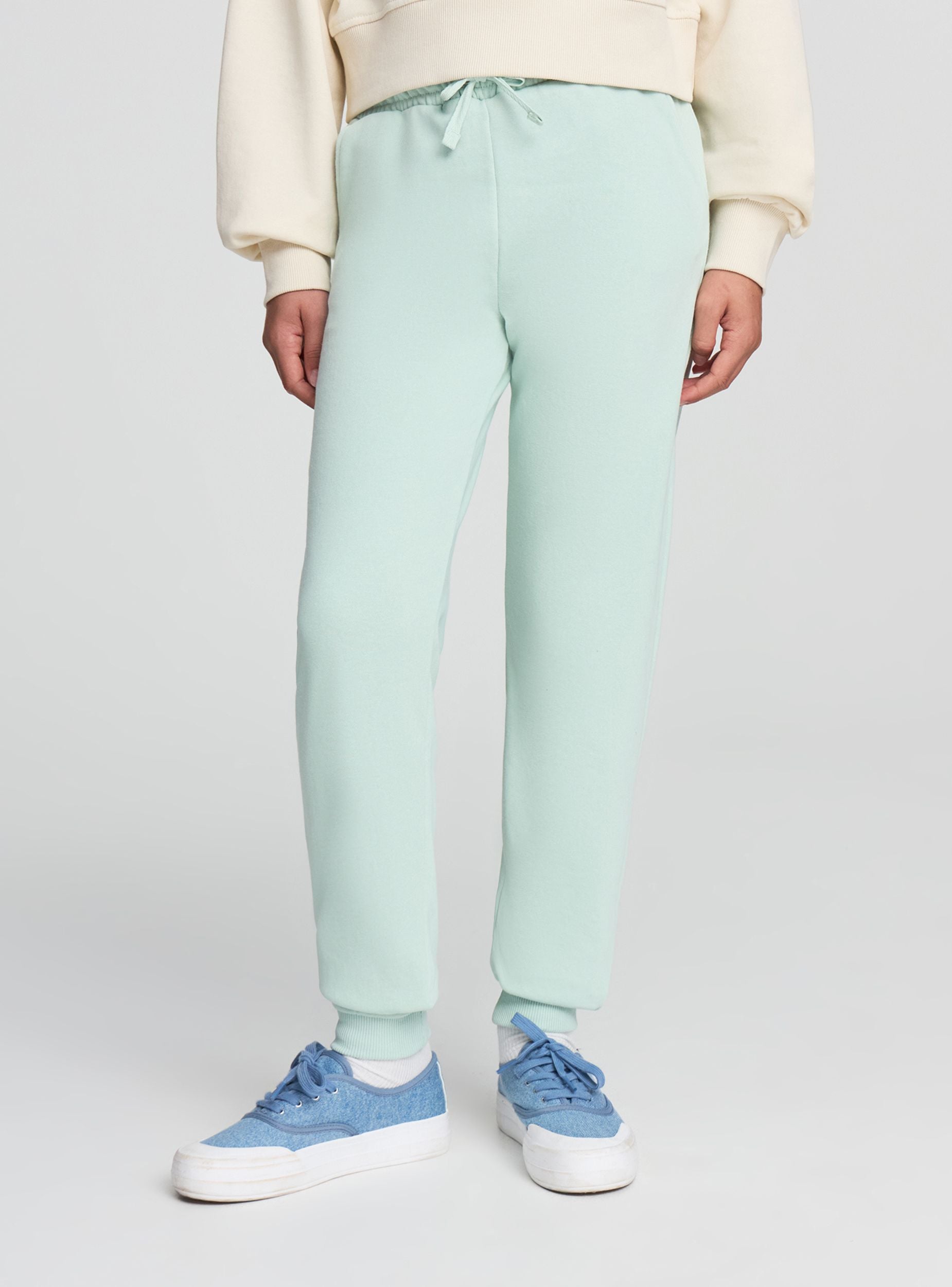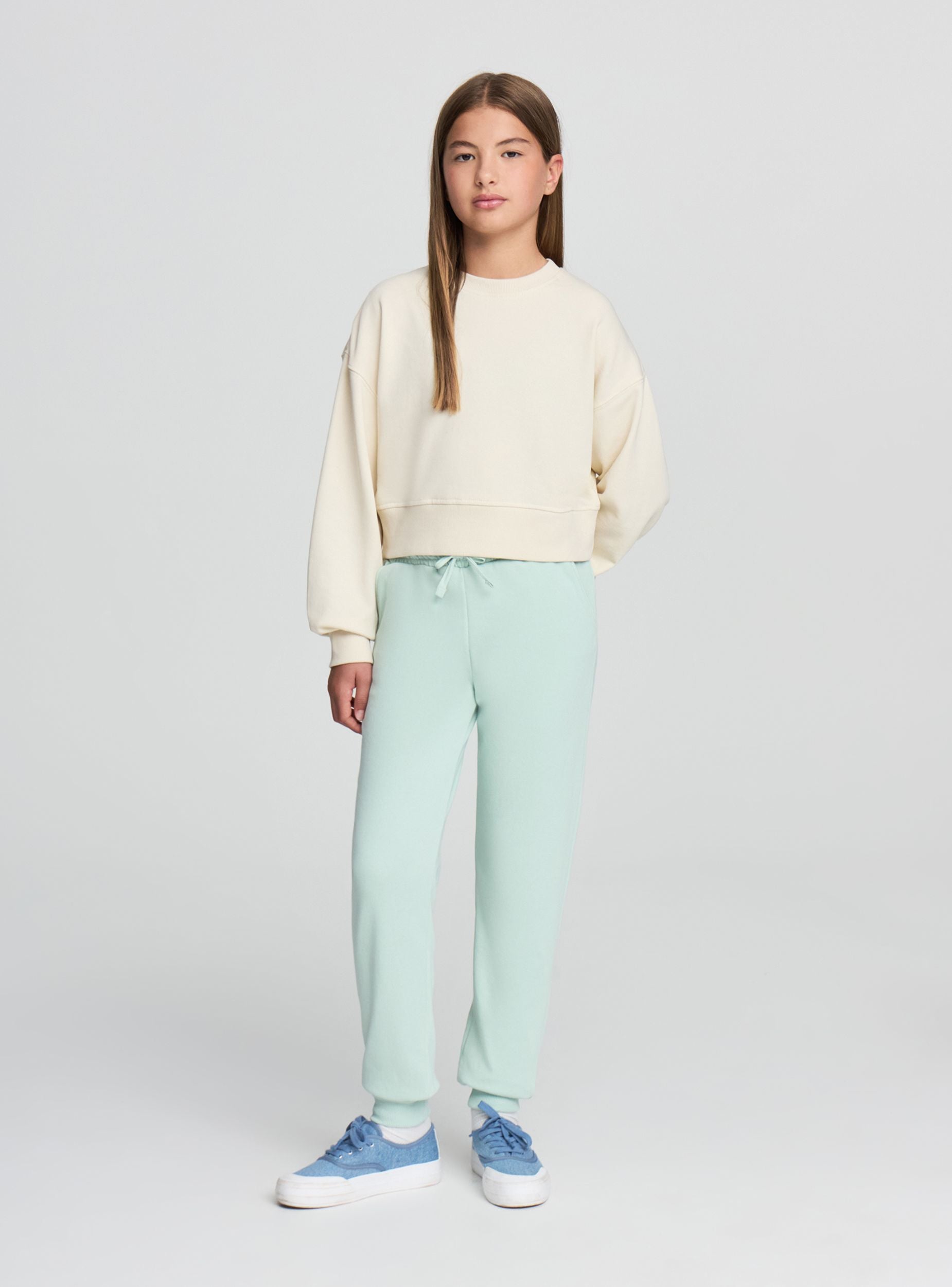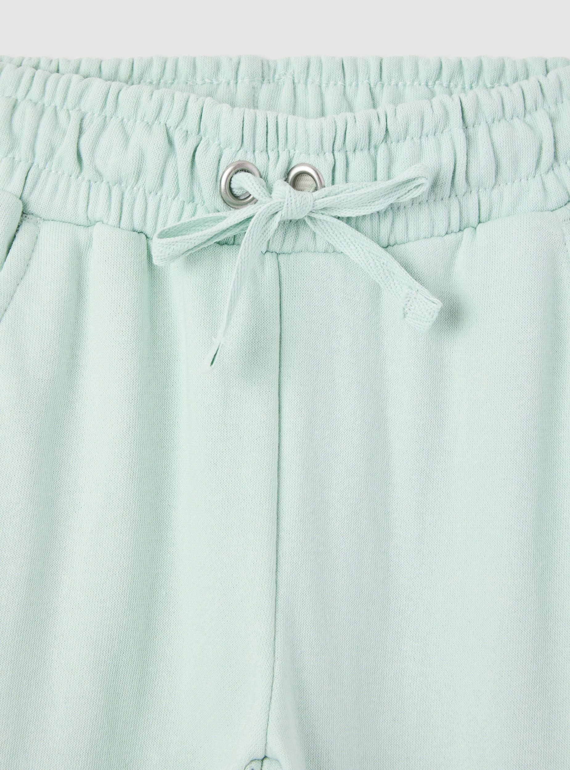 Ľahké dievčenské teplákové nohavice ideálne na voľný čas a každodenné aktivity. Majú pravidelný strih a jednofarebný dizajn, s elastickým pásom a nastaviteľným sťahovaním pre optimálne pohodlie. Sú vybavené praktickými bočnými vreckami a elastickými manžetami na členkoch, vďaka čomu sú perfektné na vytváranie ležérnych a pohodlných outfitov.