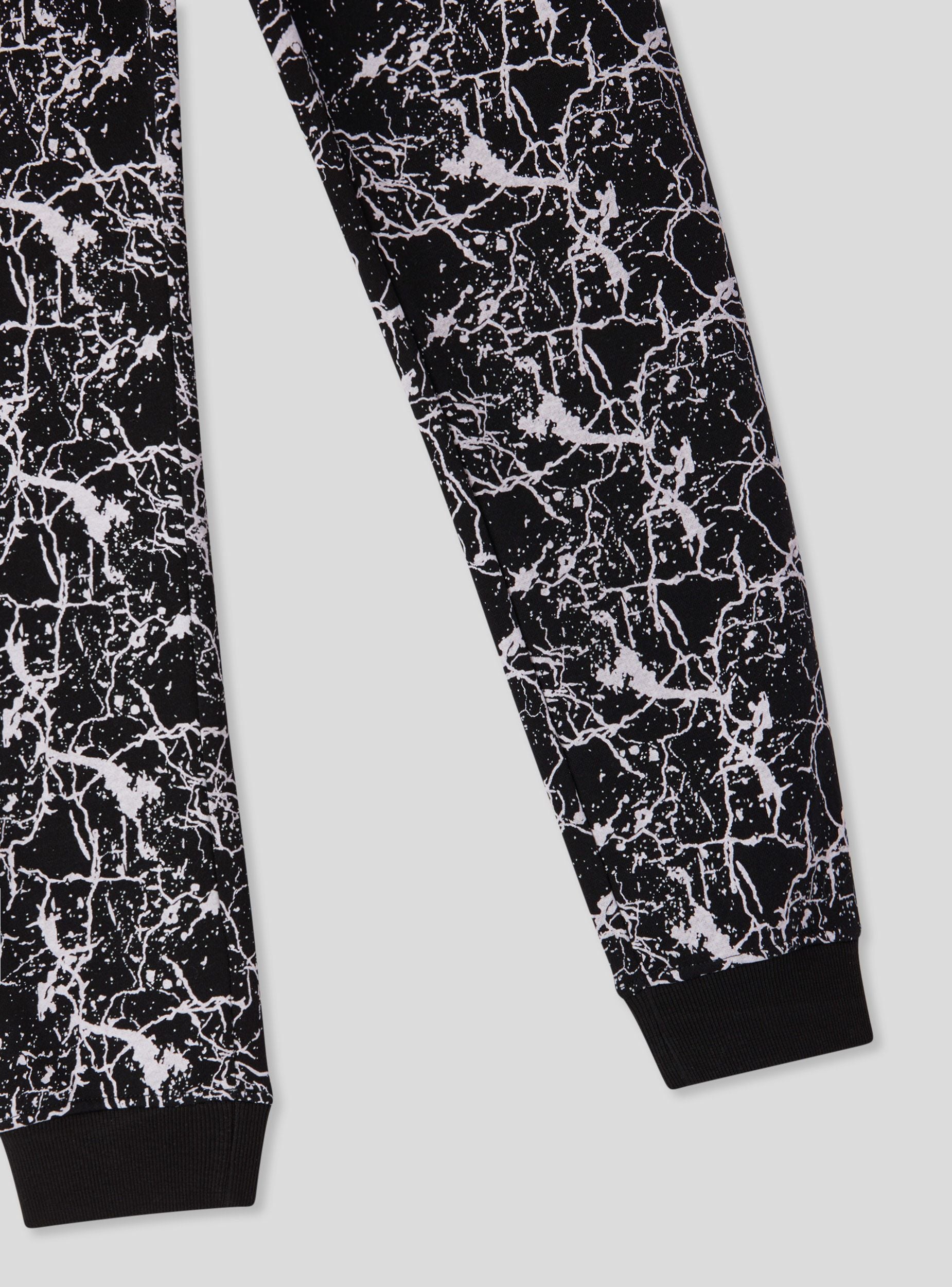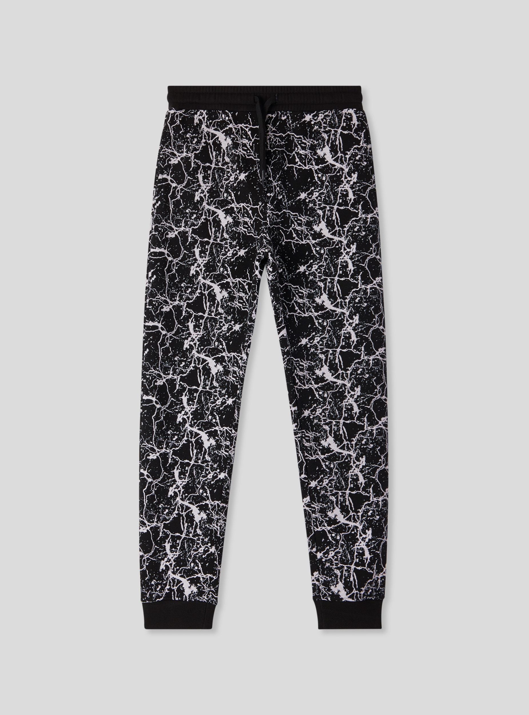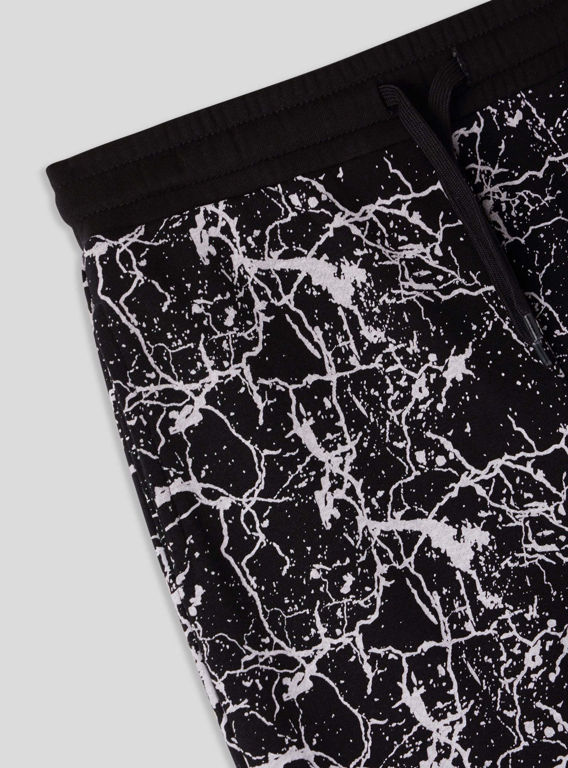 Detské teplákové nohavice z ťažkého materiálu s celoplošným mramorovým vzorom, ideálne na voľný čas a športové aktivity. Model má normálny strih, elastický pás s nastaviteľnou šnúrkou a elastické manžety na nohaviciach. Perfektné na kombinovanie s mikinami alebo tričkami pre dynamický a pohodlný vzhľad, sú navrhnuté tak, aby zabezpečili slobodu pohybu pri každej príležitosti.Detaily