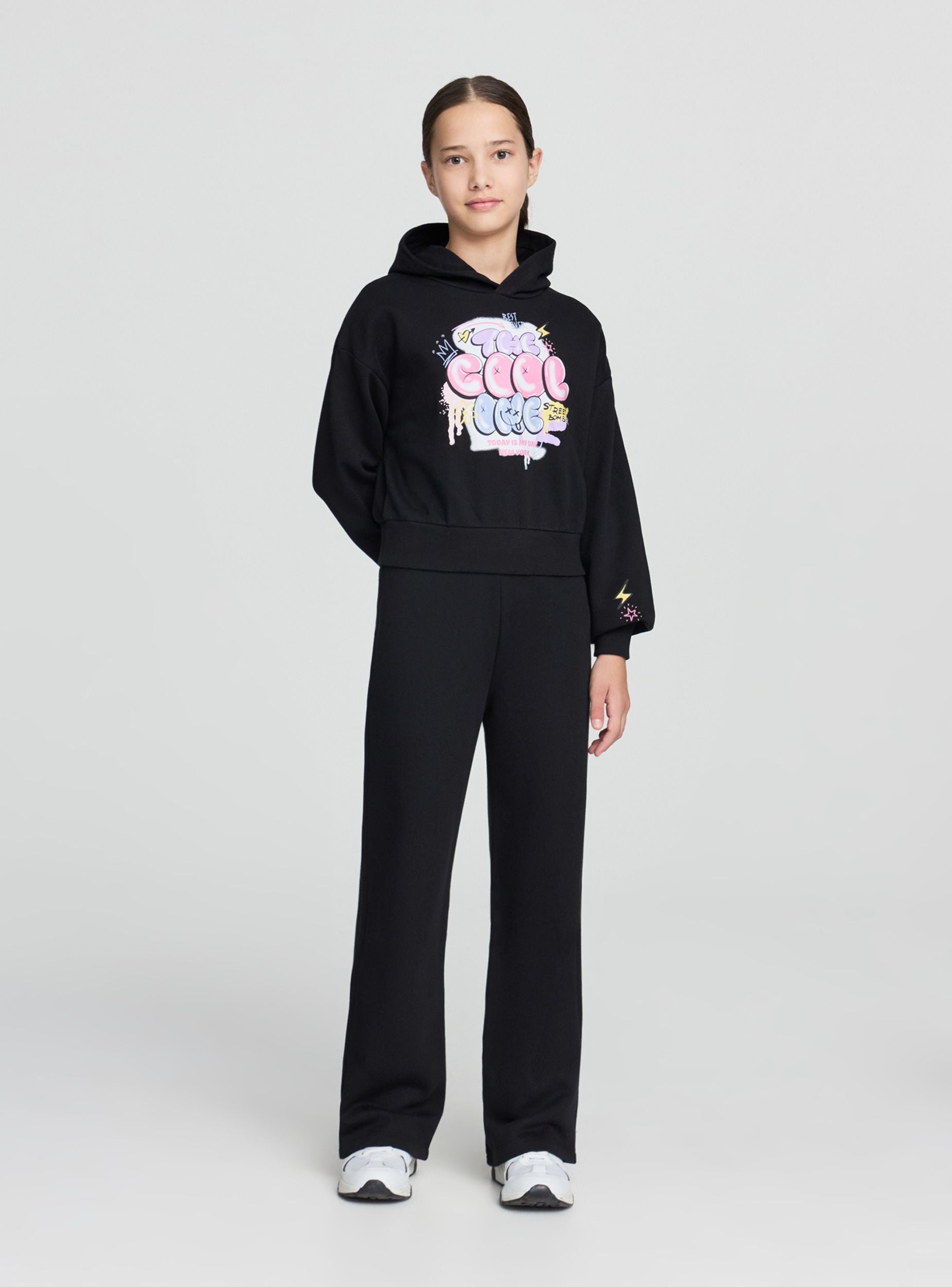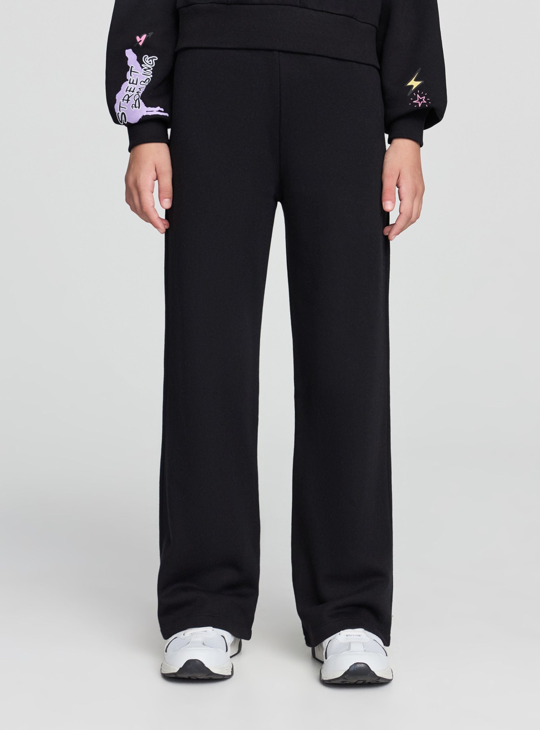 Tepláky pre dievčatá sú ideálne na voľný čas a neformálne dni. Perfektné na vytváranie pohodlných a všestranných outfitov, ľahko sa kombinujú s tričkami a mikinami. Voľný strih a široký dizajn nohavíc zaručujú slobodu pohybu a pohodlie. Ideálne na športové aktivity alebo na uvoľnený a módny vzhľad.