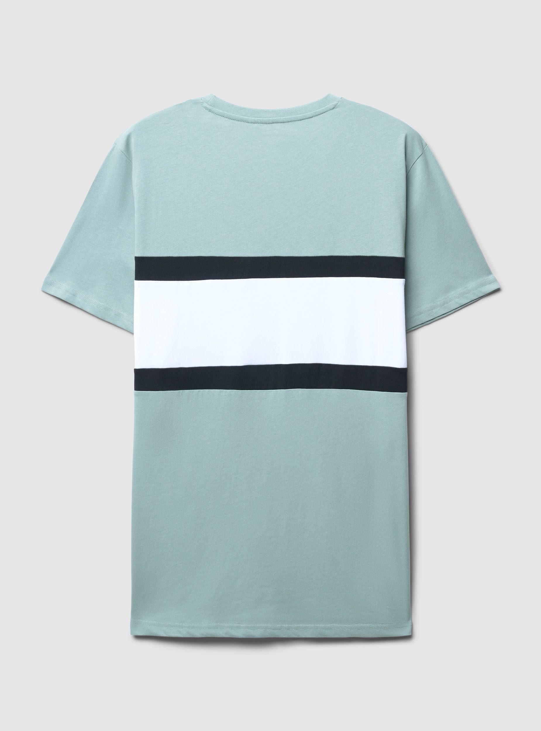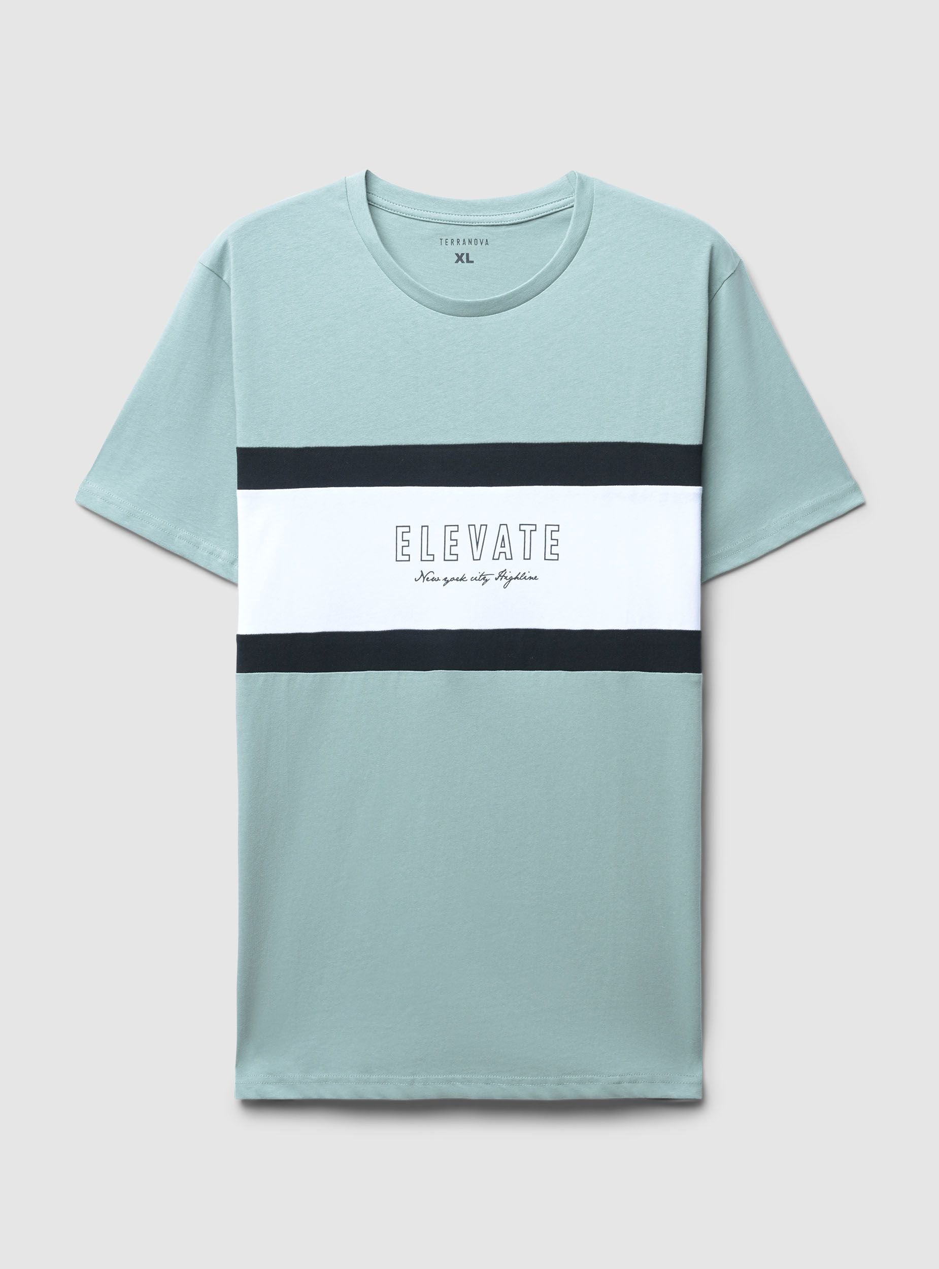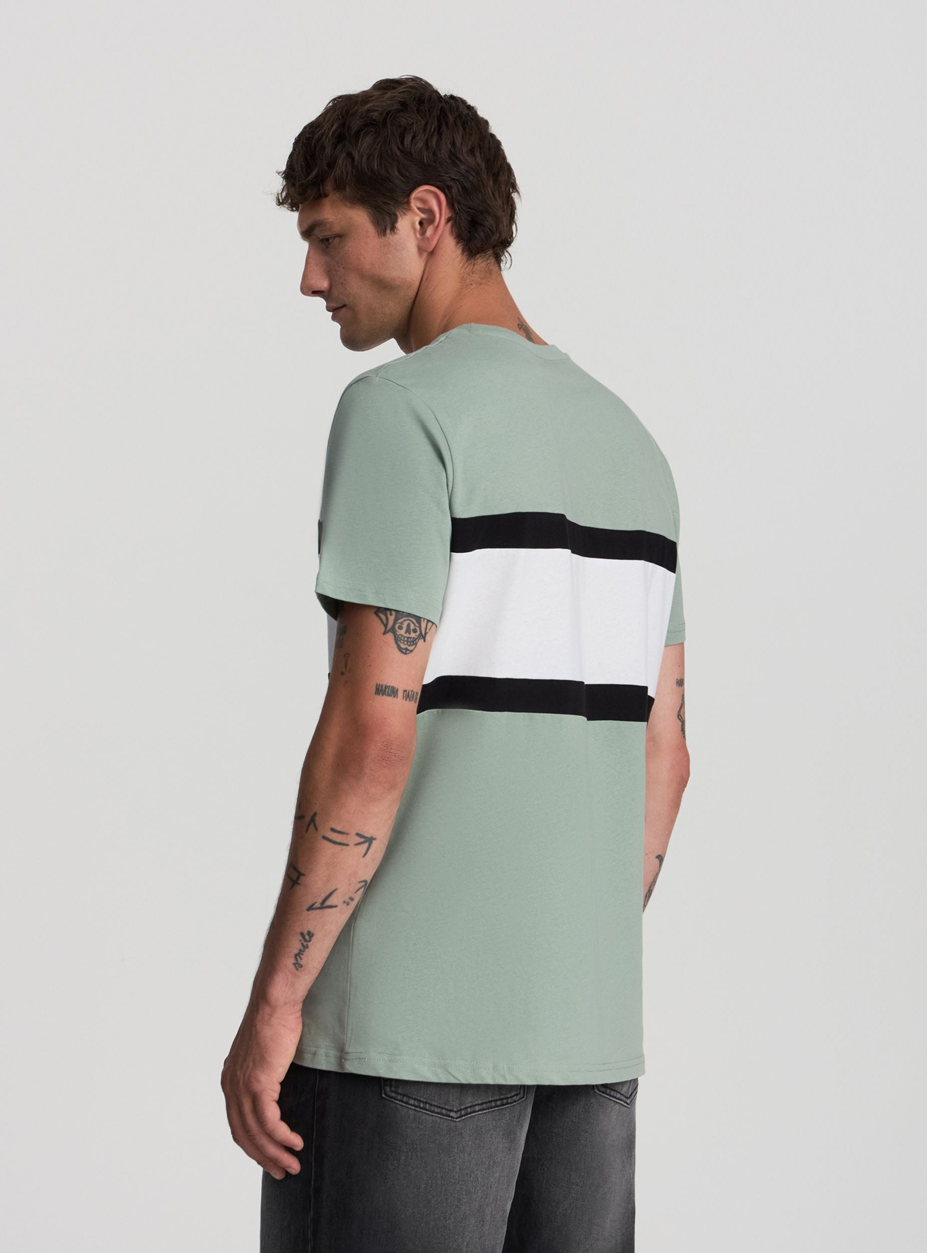 Pánske tričko s nápisom a dizajnom v blokoch farieb. Má pohodlný strih a okrúhly výstrih, ideálne pre ležérny vzhľad. Perfektné na kombinovanie s džínsami alebo športovými nohavicami pre uvoľnený outfit. Nápis na hrudi pridáva moderný štýlový prvok, zatiaľ čo dizajn v blokoch farieb ho robí univerzálnym pre rôzne príležitosti.