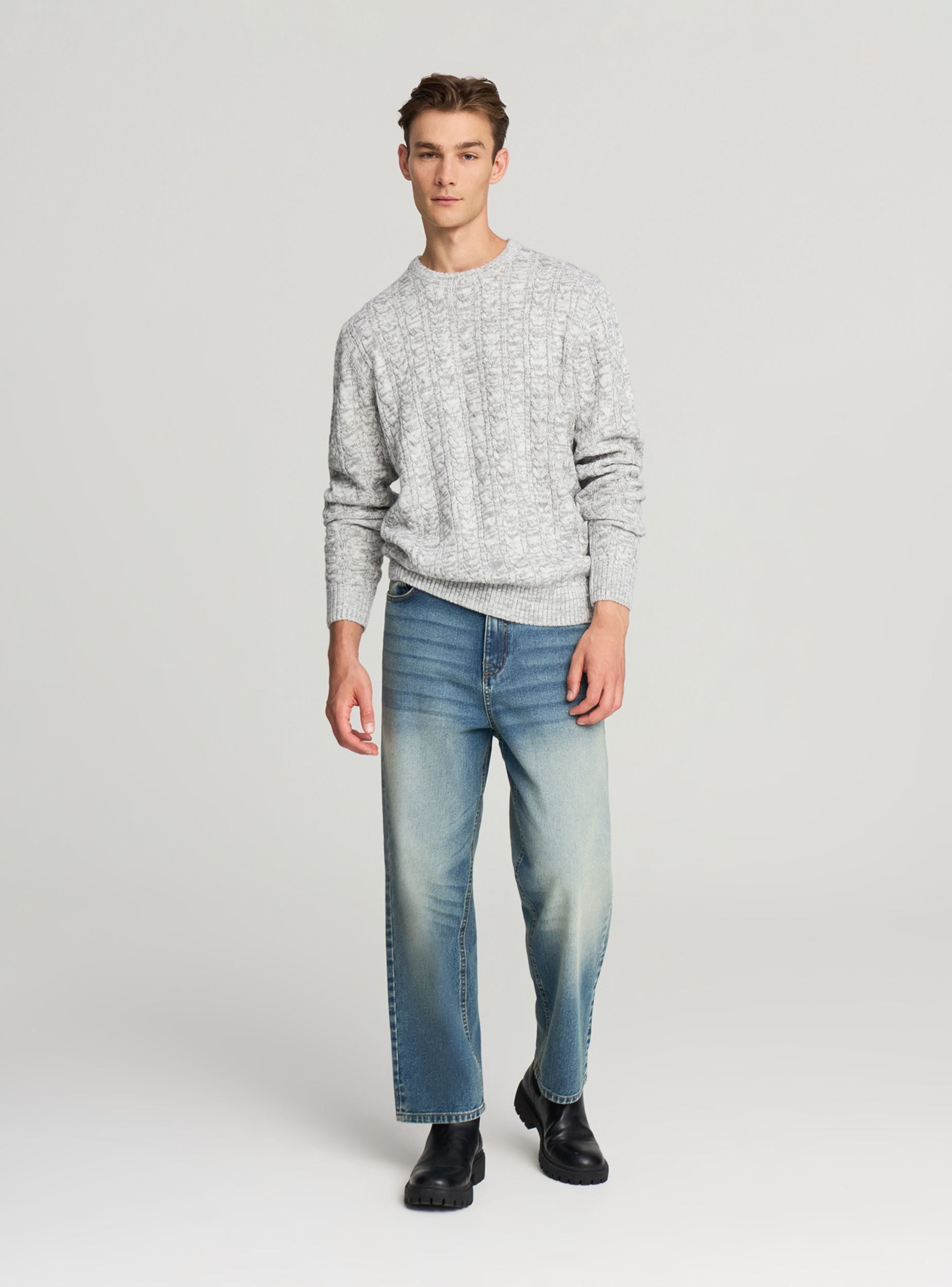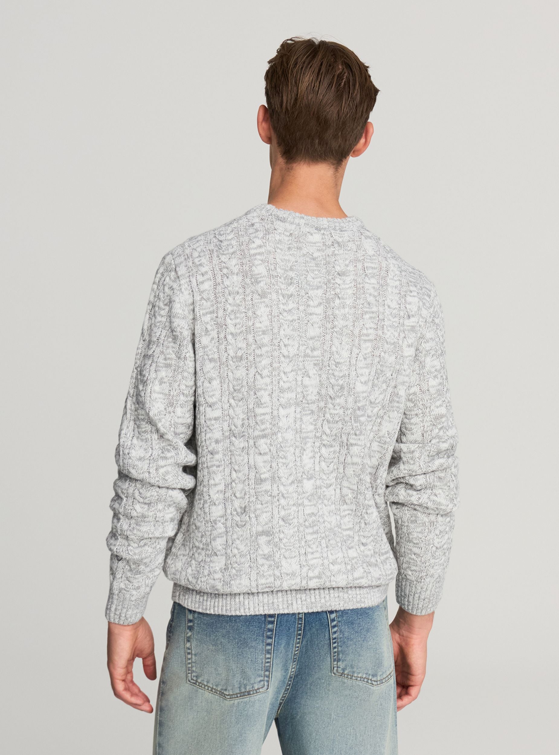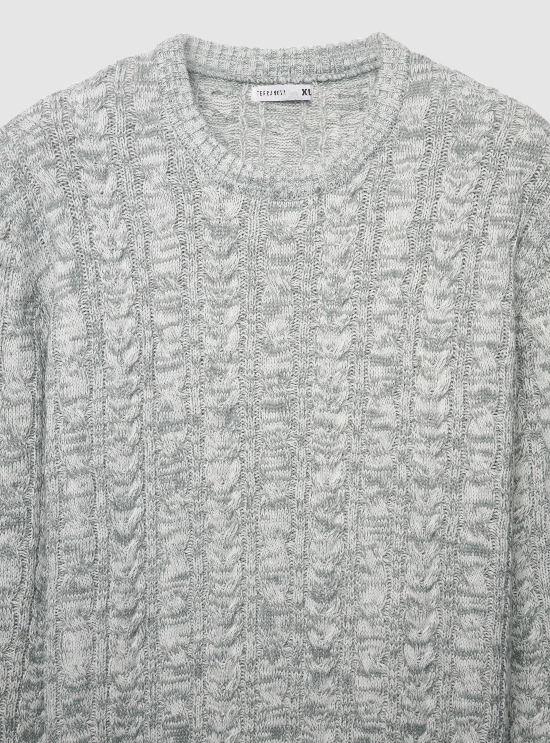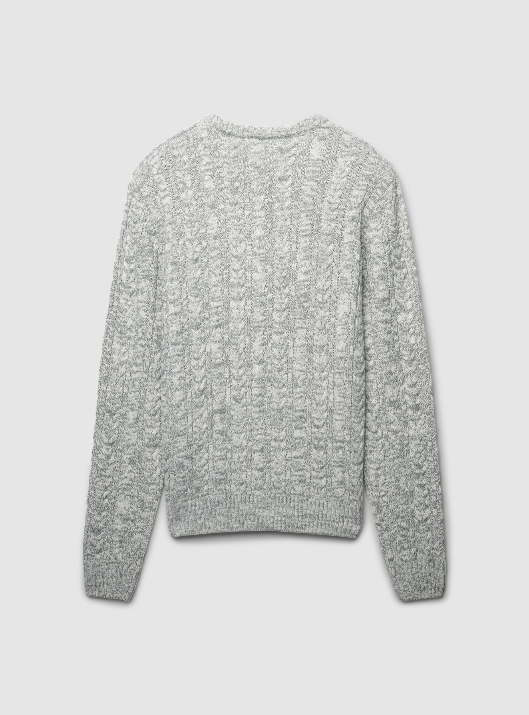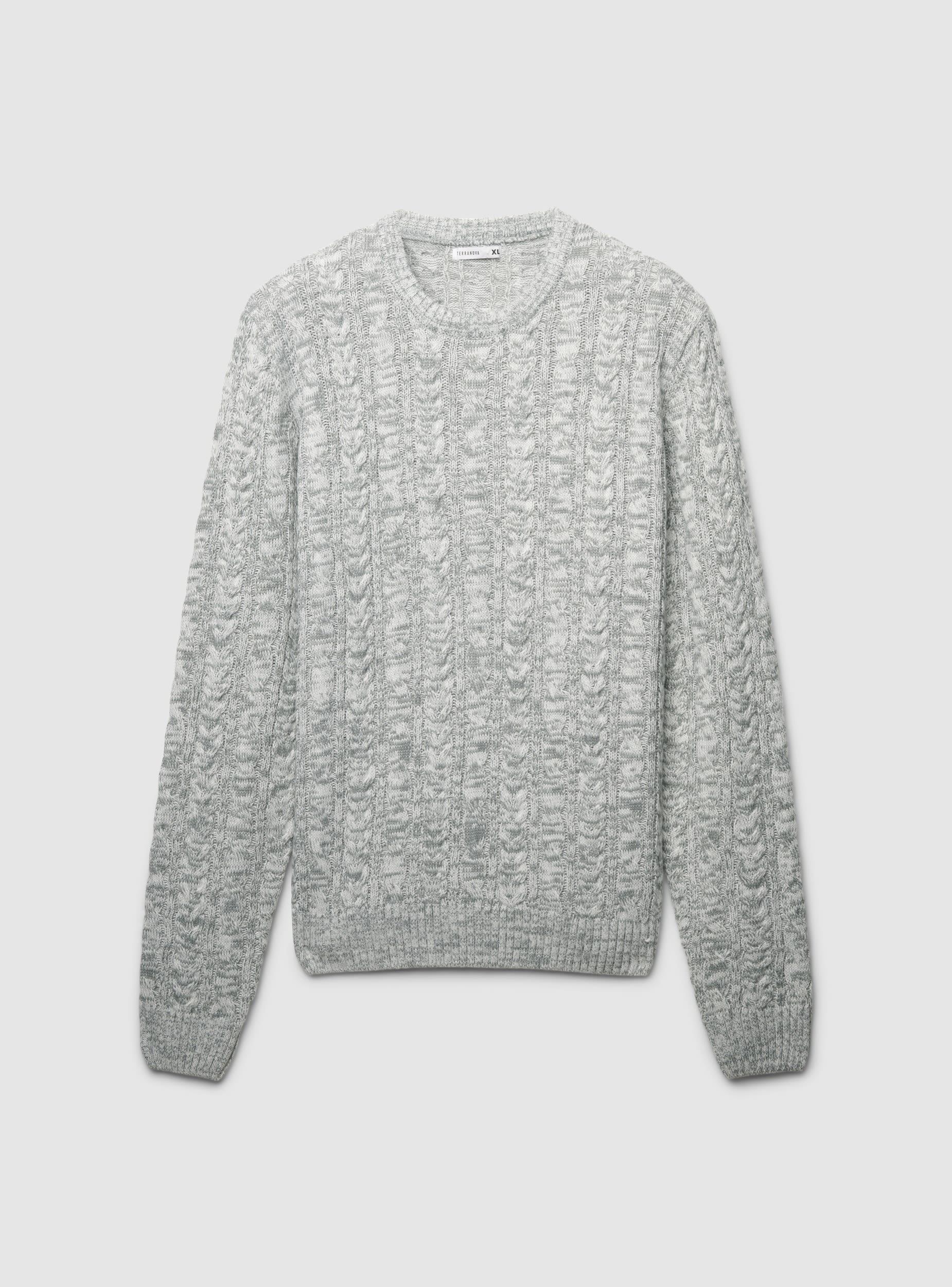 Pánsky pulóver s okrúhlym výstrihom a jednofarebným vzorom vrkočov. Dlhé rukávy a rebrované lemy na krku, zápästiach a spodnom okraji pre pohodlné nosenie. Perfektný k rifliam alebo chino nohaviciam na voľný čas, hodí sa aj ku košeliam pre elegantnejší vzhľad.