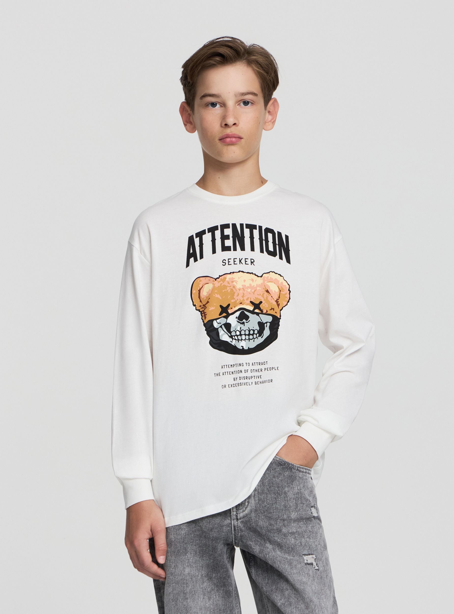Tričko s dlhým rukávom s potlačou medveďa a nápisom