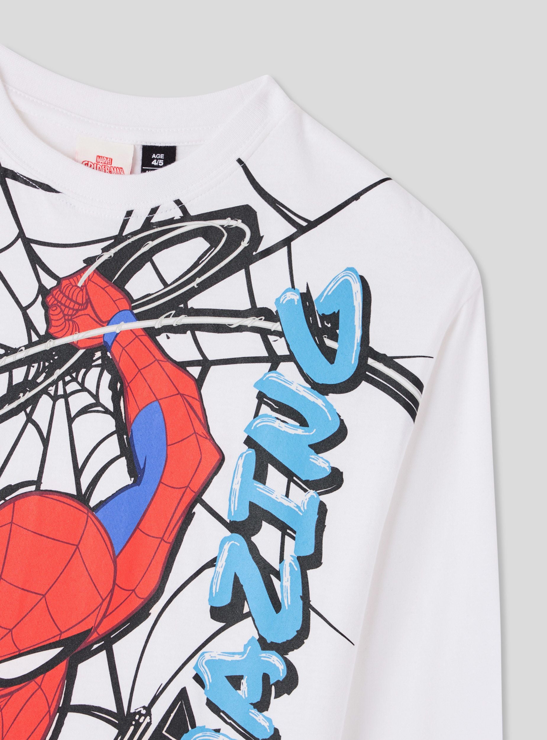 Detské tričko s dlhým rukávom so potlačou Spiderman® a nápisom "Amazing" na prednej strane. Ideálne na voľný čas a školské dni, ľahko sa kombinuje s džínsami alebo športovými nohavicami. Regular strih a okrúhly výstrih zaručujú pohodlie a voľnosť pohybu, zatiaľ čo živá grafika pridáva zábavný prvok k každodennému vzhľadu.Detaily