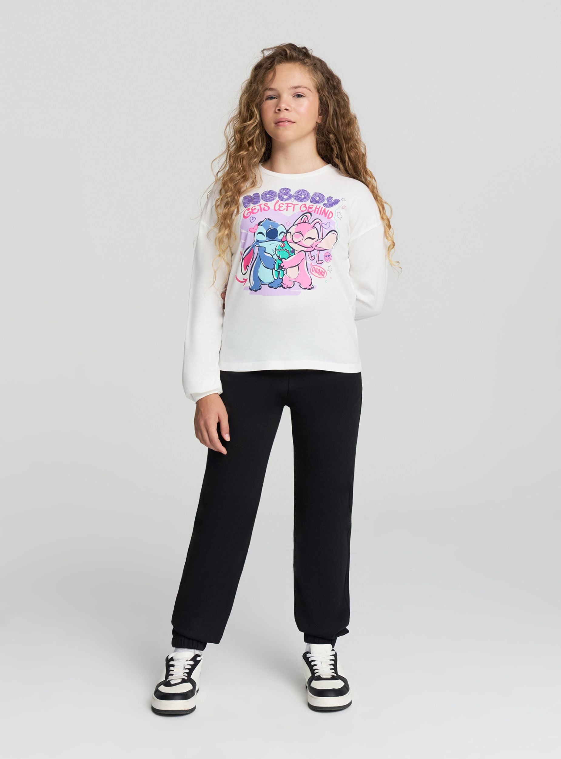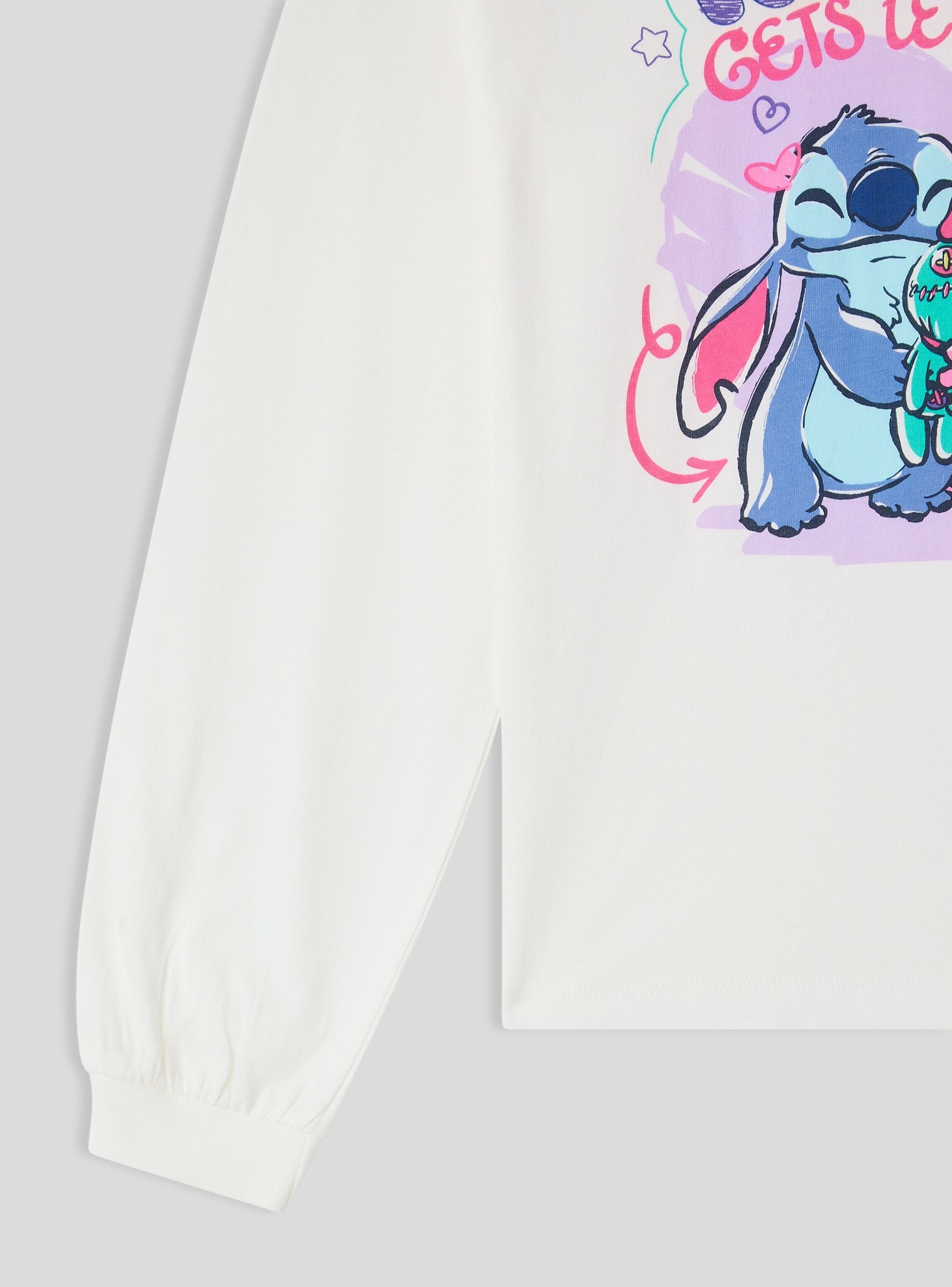 Detský dlhý rukáv s potlačou inšpirovanou Stitch® a Angel, ideálny na voľný čas a školské dni. Okrúhly výstrih a manžety zabezpečujú pohodlie a praktickosť, zatiaľ čo regular fit ho robí ideálnym na kombinovanie s džínsy alebo športovými nohavicami. Univerzálny kúsok, ktorý pridáva nádych radosti každodenným outfitom vďaka farebnej grafike.Detaily