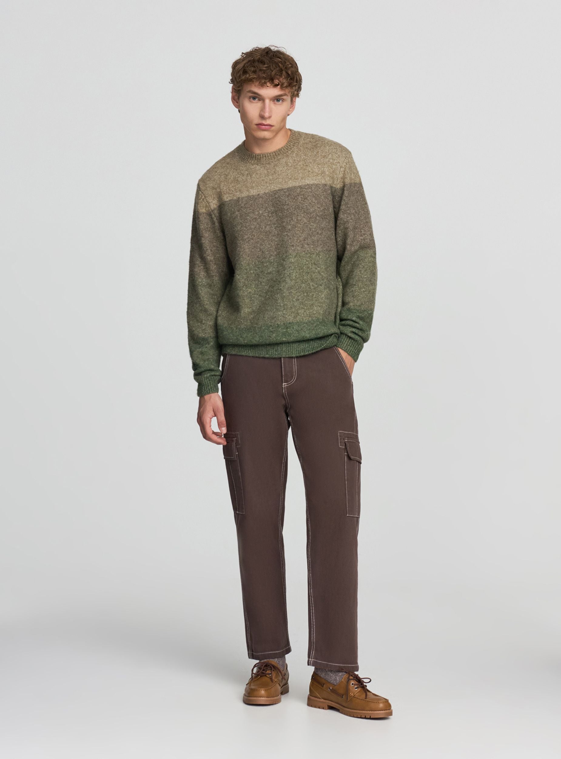 Pánska mikina s dlhými rukávmi a farebnými blokmi. Perfektná pre ležérny a moderný vzhľad, táto mikina vyniká svojím všestranným štýlom a pohodlným strihom. Ideálna na kombinovanie s džínsami alebo chino nohavicami pre neformálny outfit. Okrúhly výstrih a rebrované manžety pridávajú dizajnu nádych elegancie.