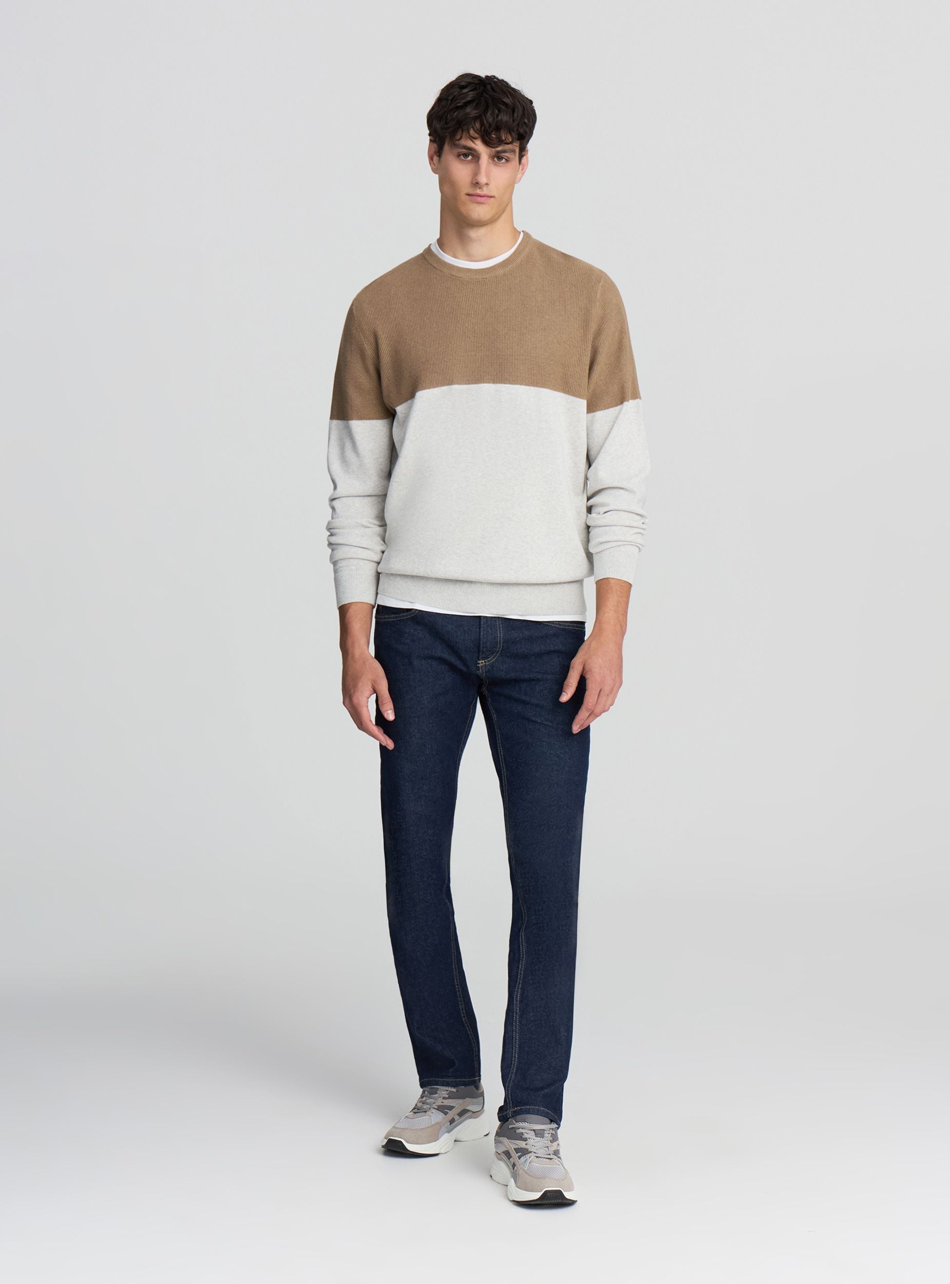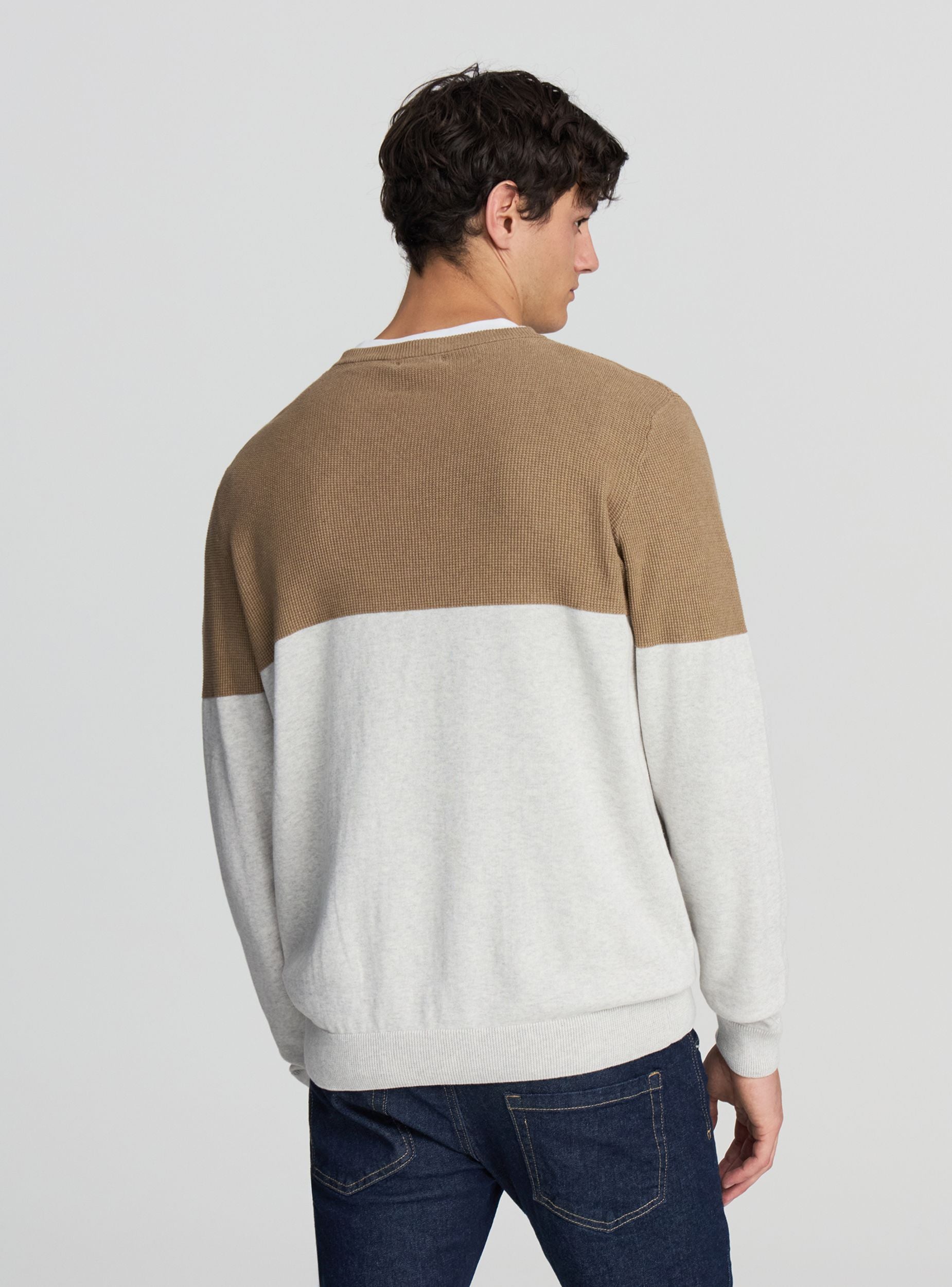 Pánska mikina ideálna pre ležérny a všestranný vzhľad. Perfektná na nosenie pri neformálnych príležitostiach, ľahko sa kombinuje s džínsami alebo chinos nohavicami pre pohodlný a módny outfit. Dvojfarebný dizajn s ľahkým vzorom pridáva moderný a dynamický nádych. Nezbytný kúsok na obohatenie šatníka so štýlom a praktickosťou.