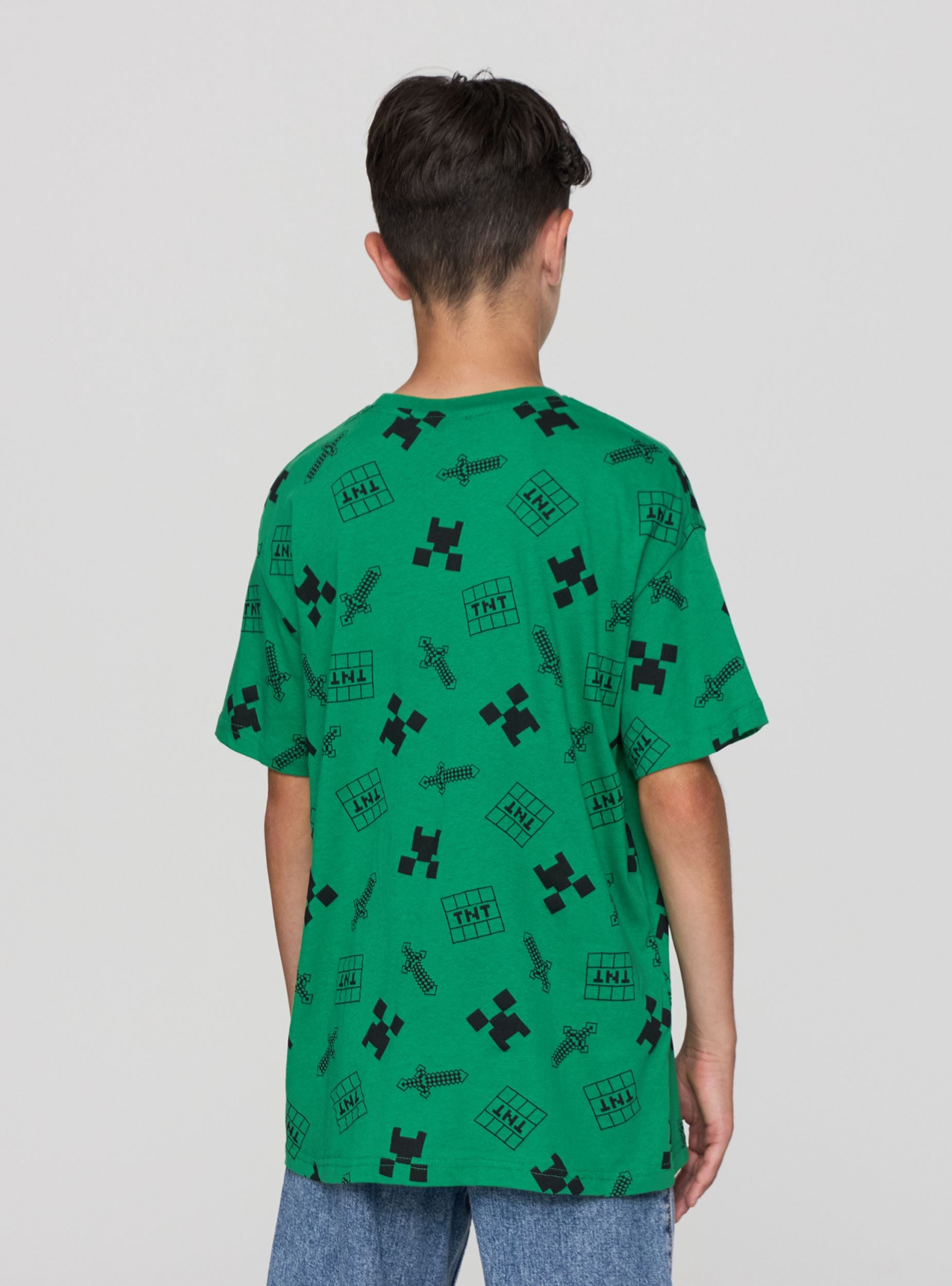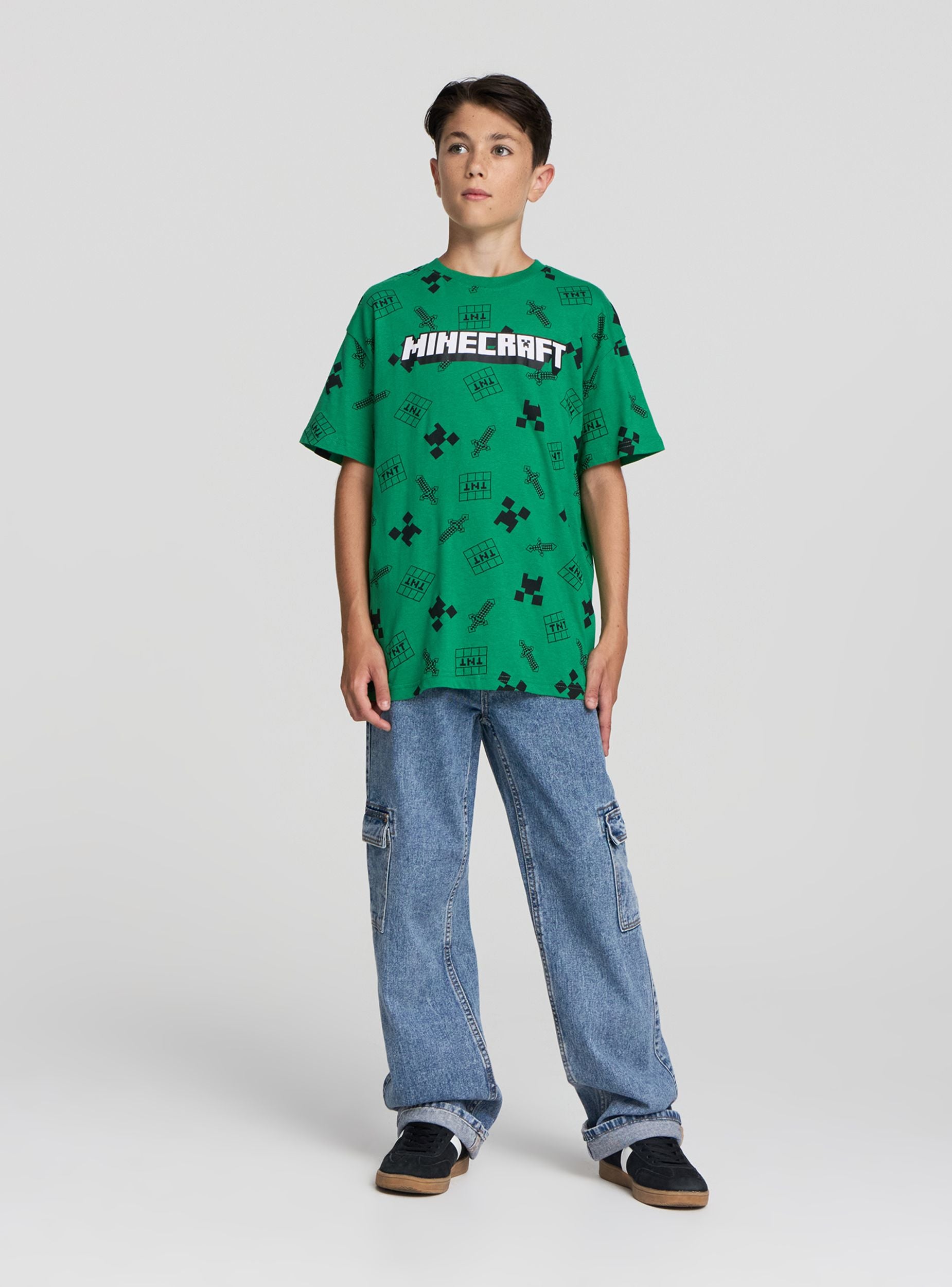 Chlapčenské tričko s potlačou Minecraft®, ideálne pre mladých fanúšikov známej videohry. Má pohodlný strih a krátke rukávy, čo je perfektné na voľný čas a bežné dni. Živá a pútavá potlač pridáva nádych originality, vďaka čomu je tento kúsok všestranný na kombinovanie s džínsami alebo kraťasmi.