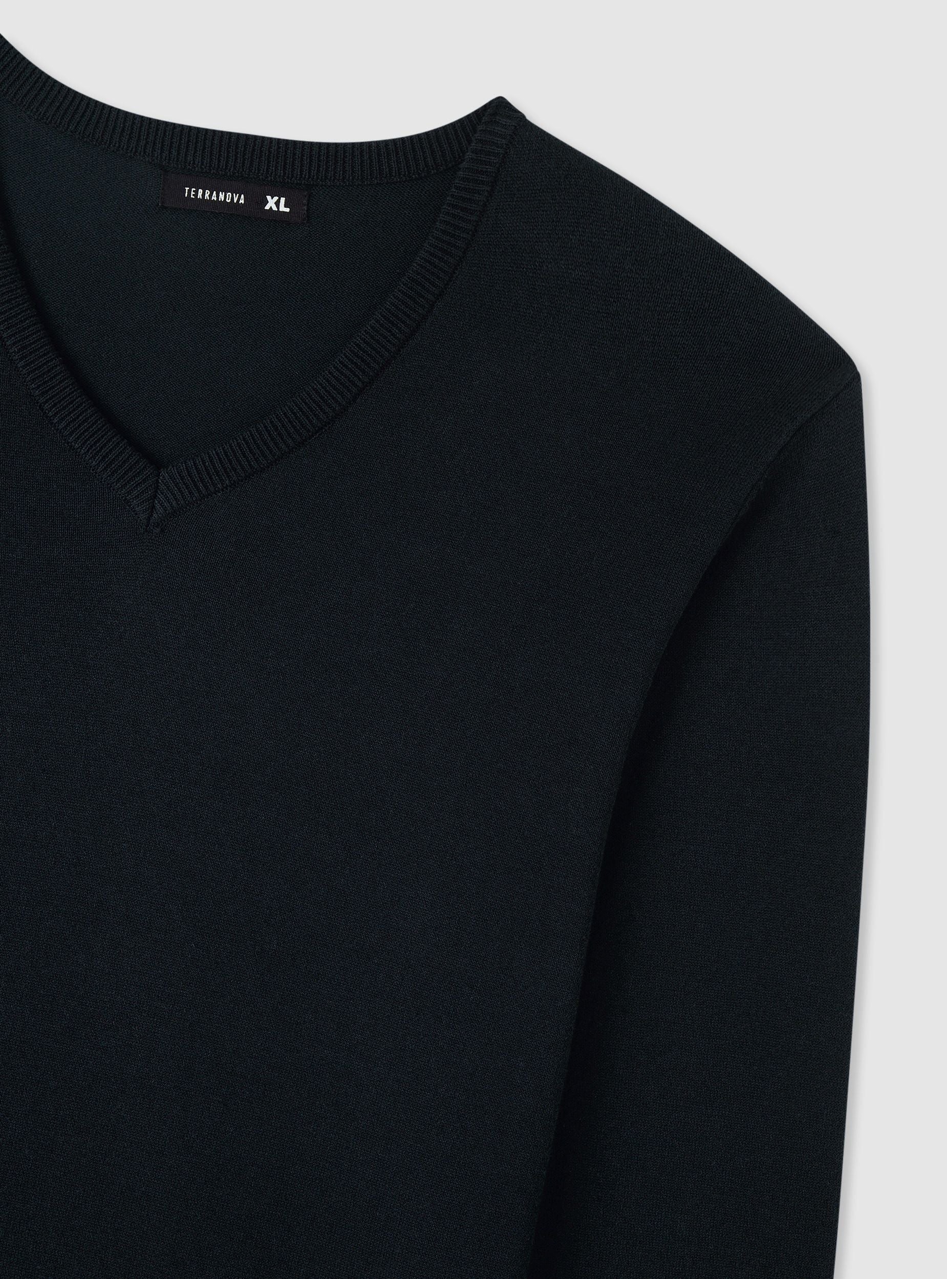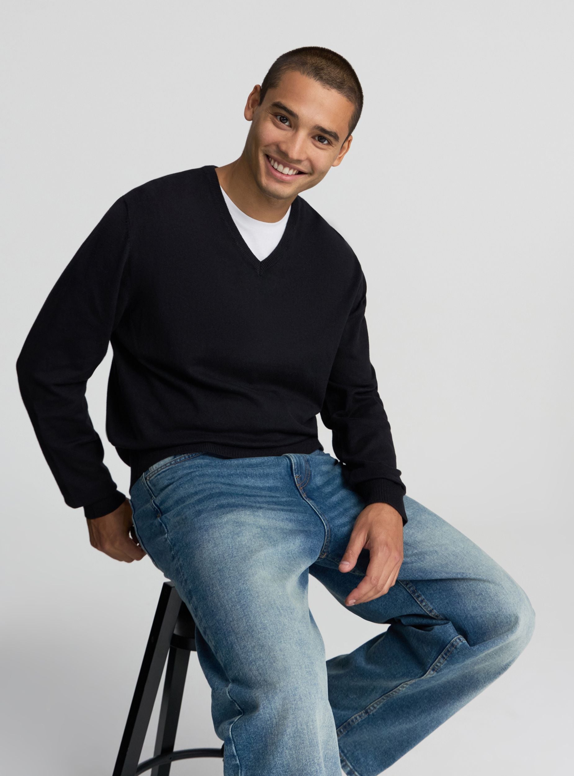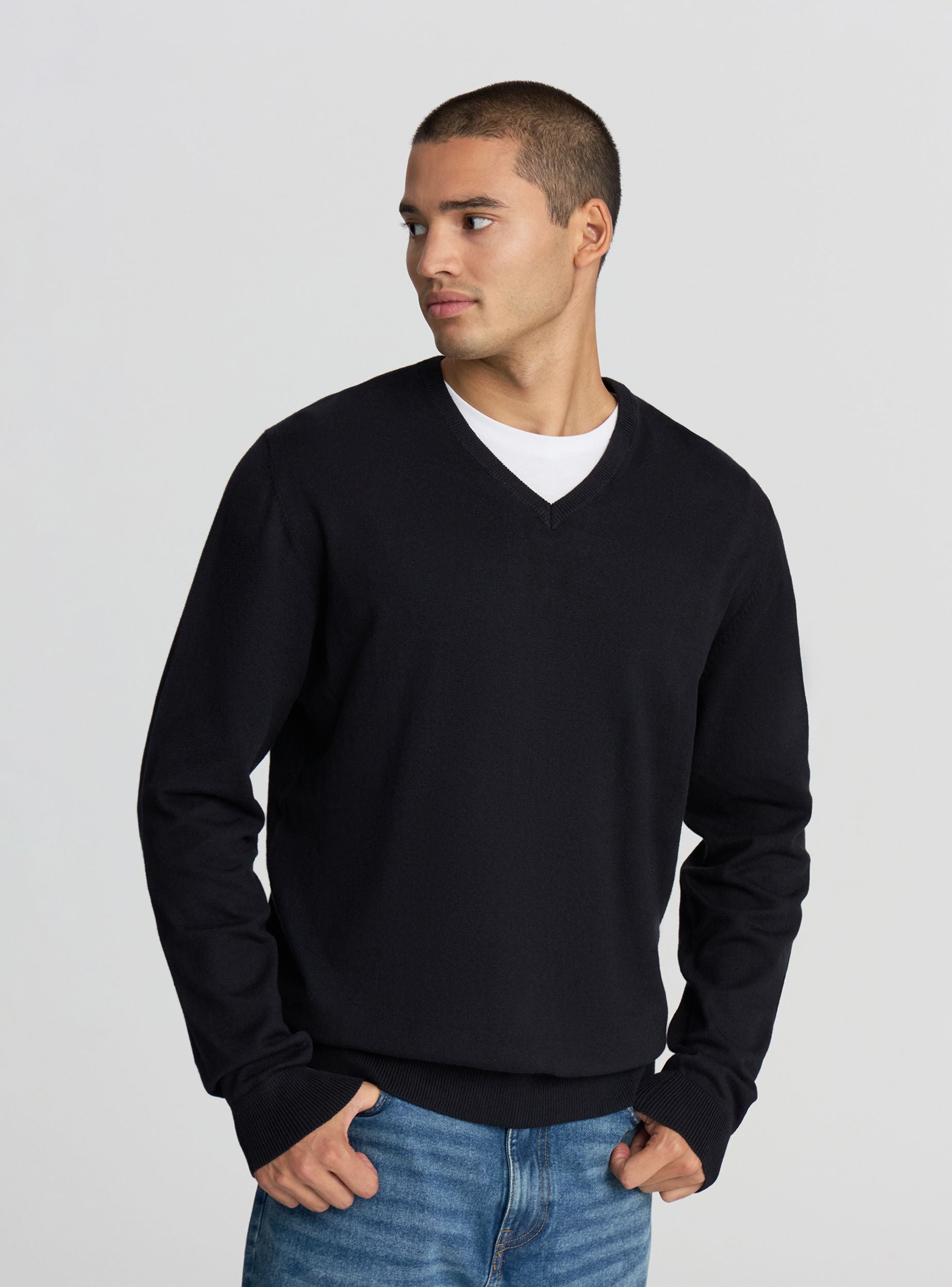 Pánsky sveter s výstrihom do V, ideálny pre elegantný a profesionálny vzhľad. Perfektný na nosenie cez košeľu alebo samostatne, hodí sa na rôzne formálne aj neformálne príležitosti. Dlhé rukávy a jednoduchý jednofarebný dizajn ho robia všestranným a vhodným na každé ročné obdobie. Nevyhnutný kúsok na obohatenie šatníka štýlom a praktickosťou.Detaily