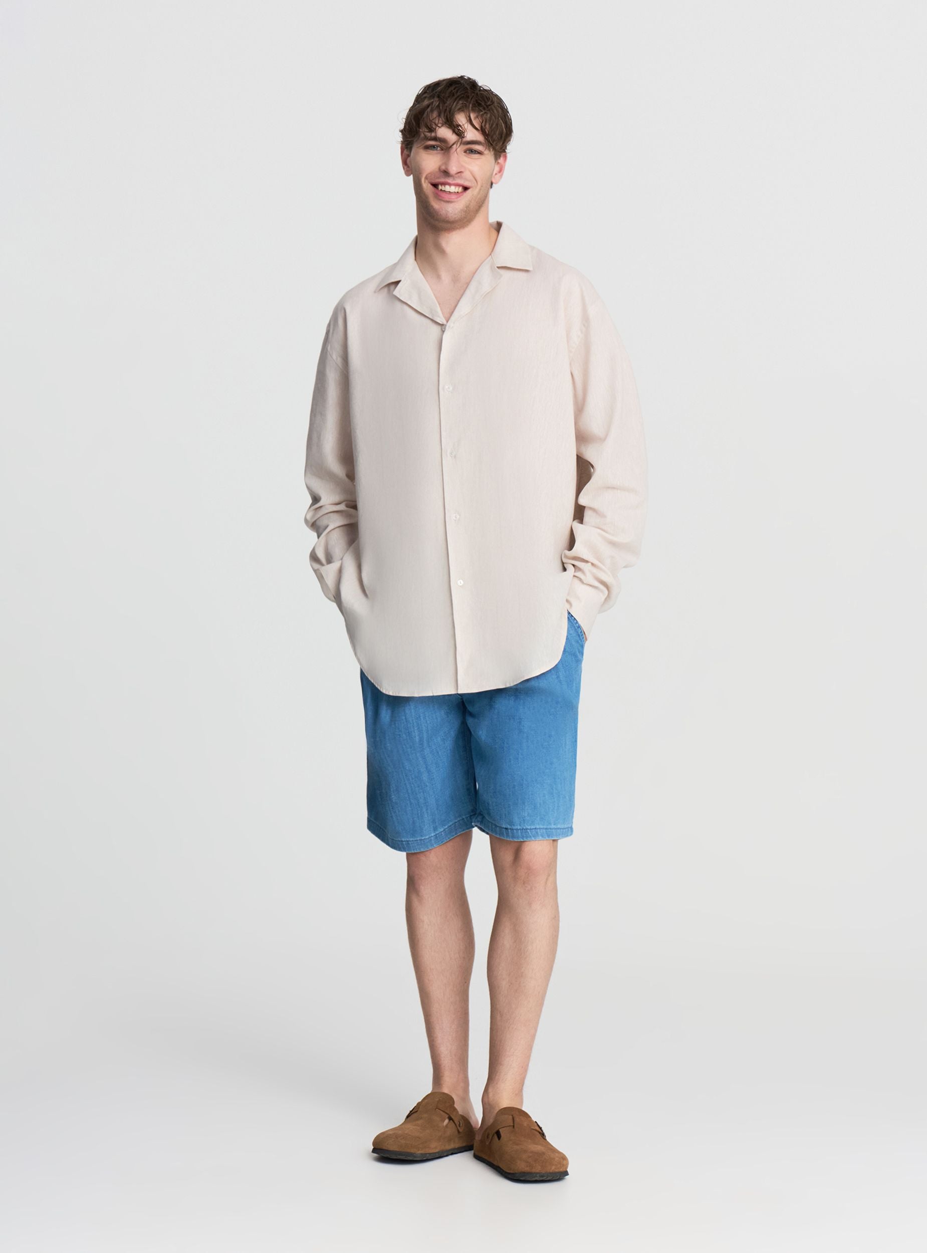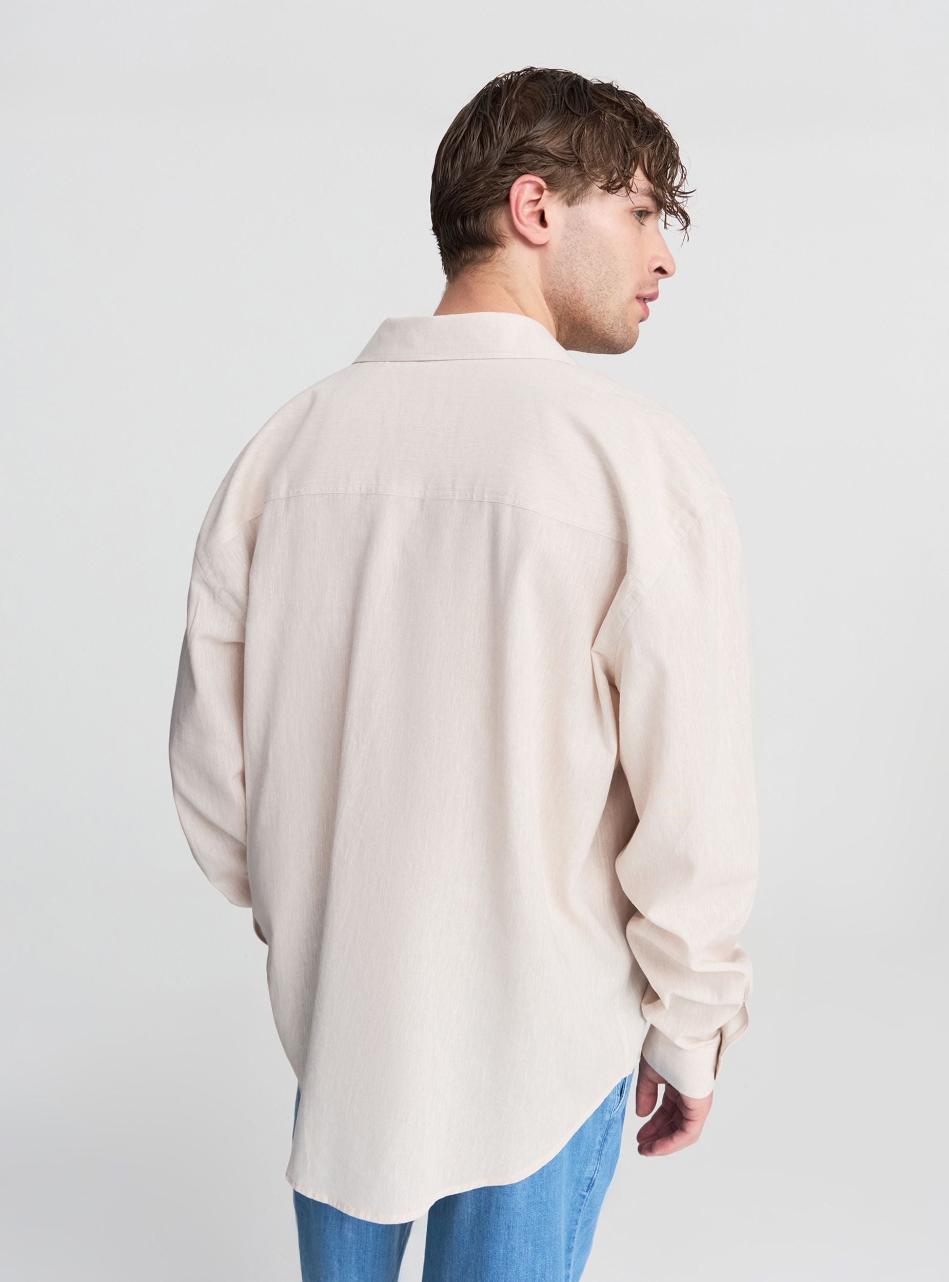 Camicia da uomo in misto lino a tinta unita. Maniche lunghe, colletto classico e chiusura frontale con bottoni. Perfetta per occasioni casual chic o serate eleganti, si abbina facilmente a pantaloni chino o jeans per un look curato e versatile. Ideale anche sotto giacche leggere in primavera o estate.Podrobnosti