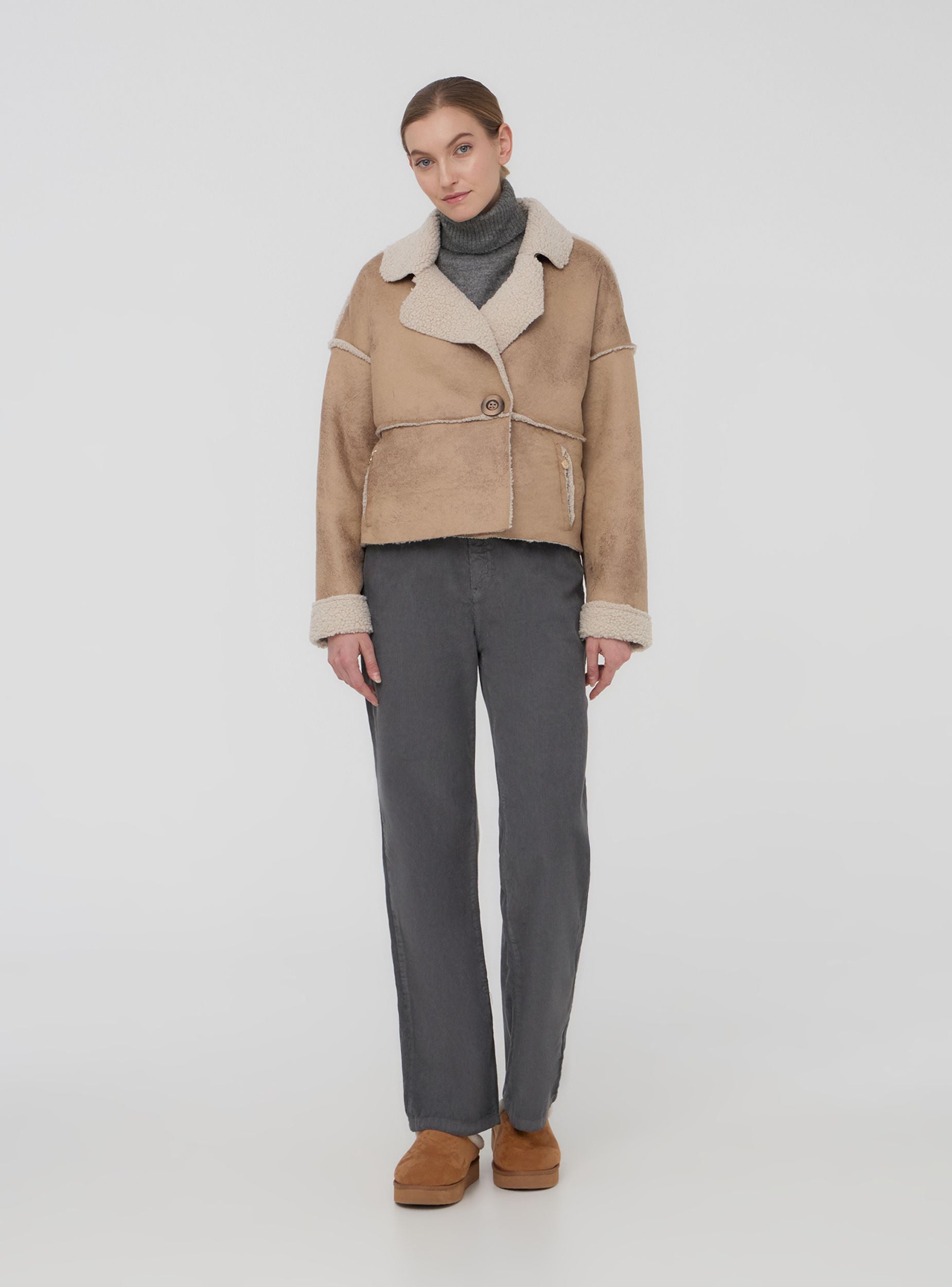 Giubbotto da donna in montone sintetico, dallo stile moderno e accattivante. Questo capo corto è perfetto per chi cerca un look di tendenza senza rinunciare al comfort. La chiusura con un singolo bottone sul davanti dona un tocco minimalista e sofisticato, mentre il design versatile si abbina facilmente a diversi outfit. I dettagli delle zip sulle tasche aggiungono una nota dinamica e contemporanea, rendendo questo giubbotto ideale per completare il tuo guardaroba autunnale e invernale con carattere e personalità.Podrobnosti