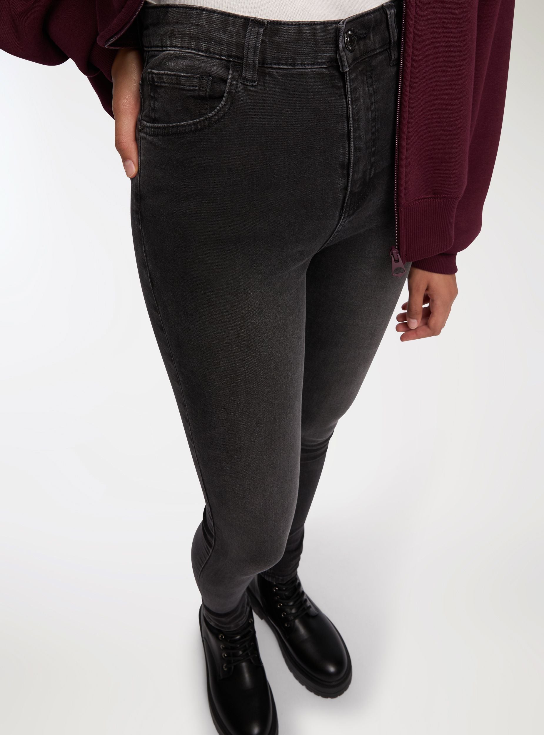 Jeans skinny da donna a vita alta perfetti per esaltare la silhouette. Il tessuto denim garantisce una vestibilità aderente e confortevole. Modello dotato di chiusura con zip e bottone, e cinque tasche, due anteriori, due posteriori e una piccola tasca anteriore aggiuntiva. Questi jeans sono ideali per un look casual e versatile. Perfetti per essere indossati durante il giorno o la sera, possono essere facilmente abbinati con una varietà di top e scarpe, rendendoli un capo essenziale nel guardaroba di ogni donna.
