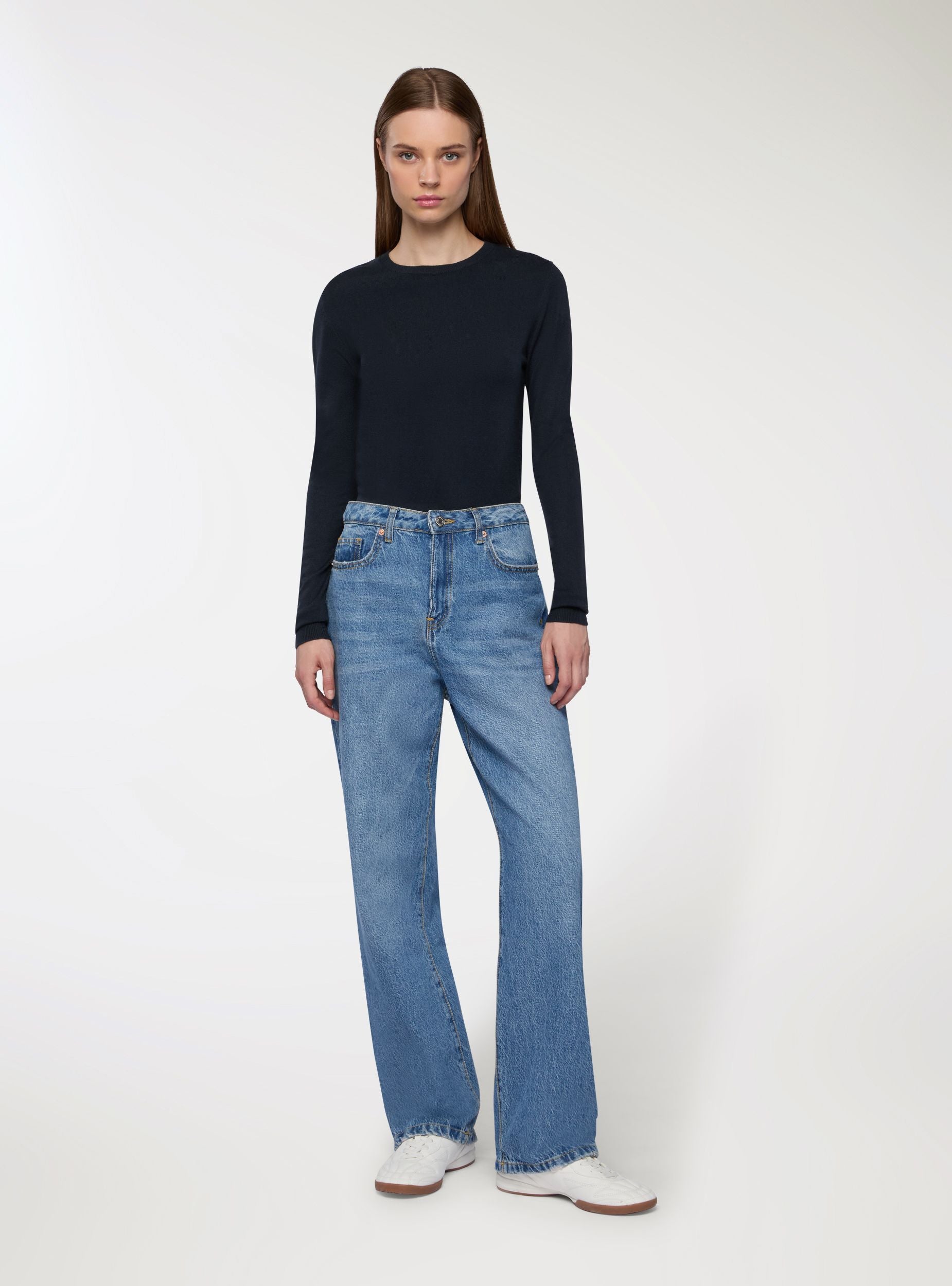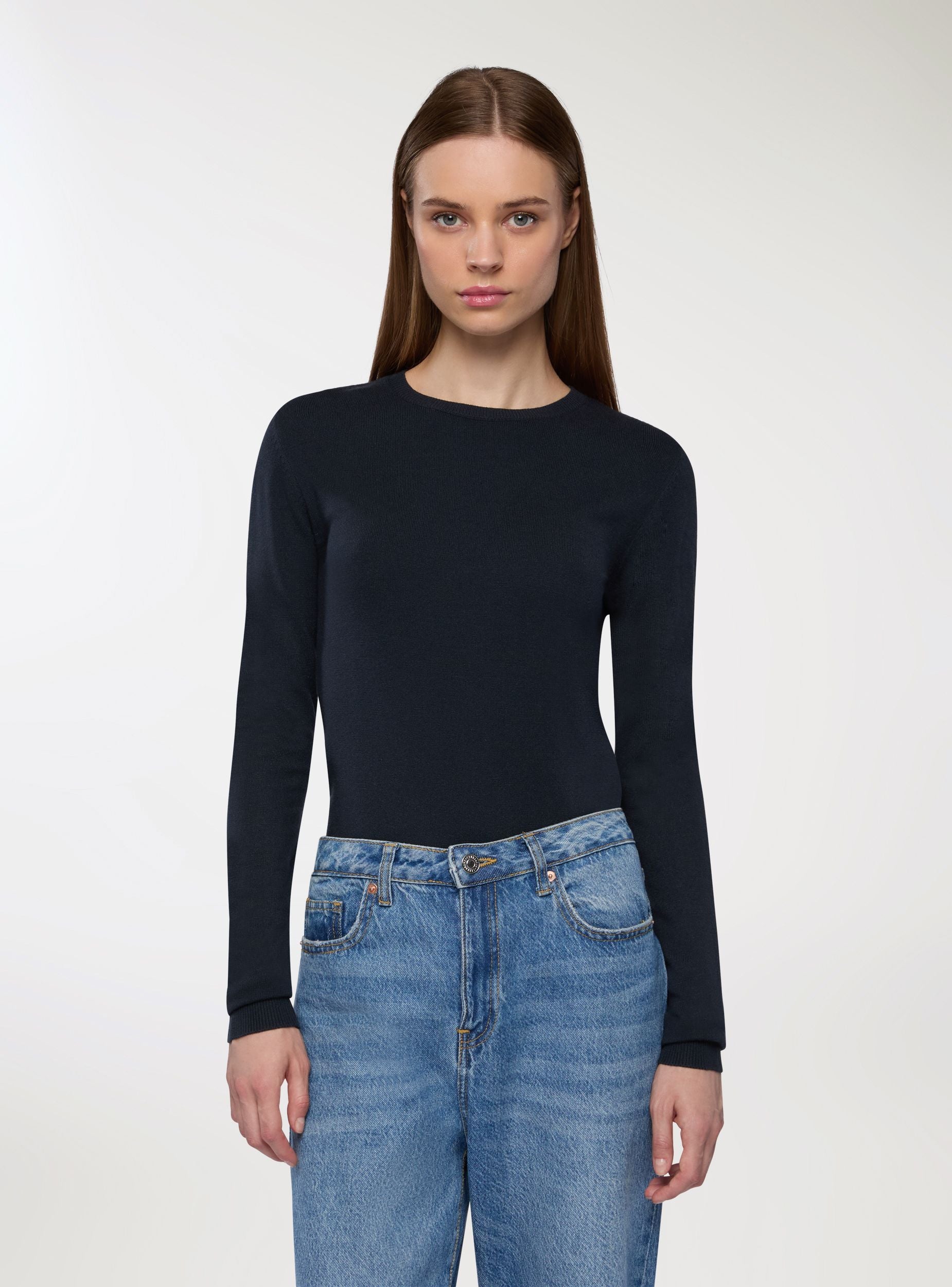 Maglia basica da donna a maniche lunghe con girocollo e finiture a costine. Questa maglia è un capo essenziale e senza tempo, pensato per adattarsi a ogni stagione e occasione. Il design minimal con girocollo e maniche lunghe la rende perfetta da indossare sia da sola che come strato sotto giacche, cardigan o blazer. I dettagli a costine su colletto, fondo e polsini aggiungono un tocco curato e discreto che valorizza la semplicità del modello. Morbida, versatile e dalla vestibilità comoda, è una maglia basica da avere sempre a portata di mano nel guardaroba quotidiano, perfetta per creare outfit casual o più eleganti con estrema facilità.