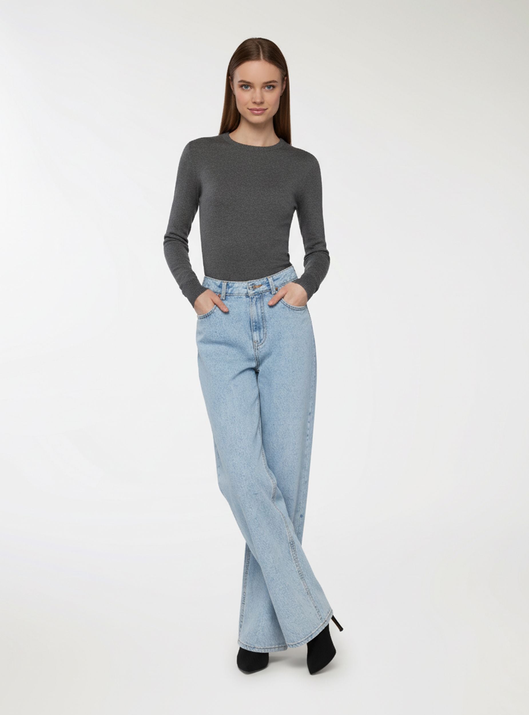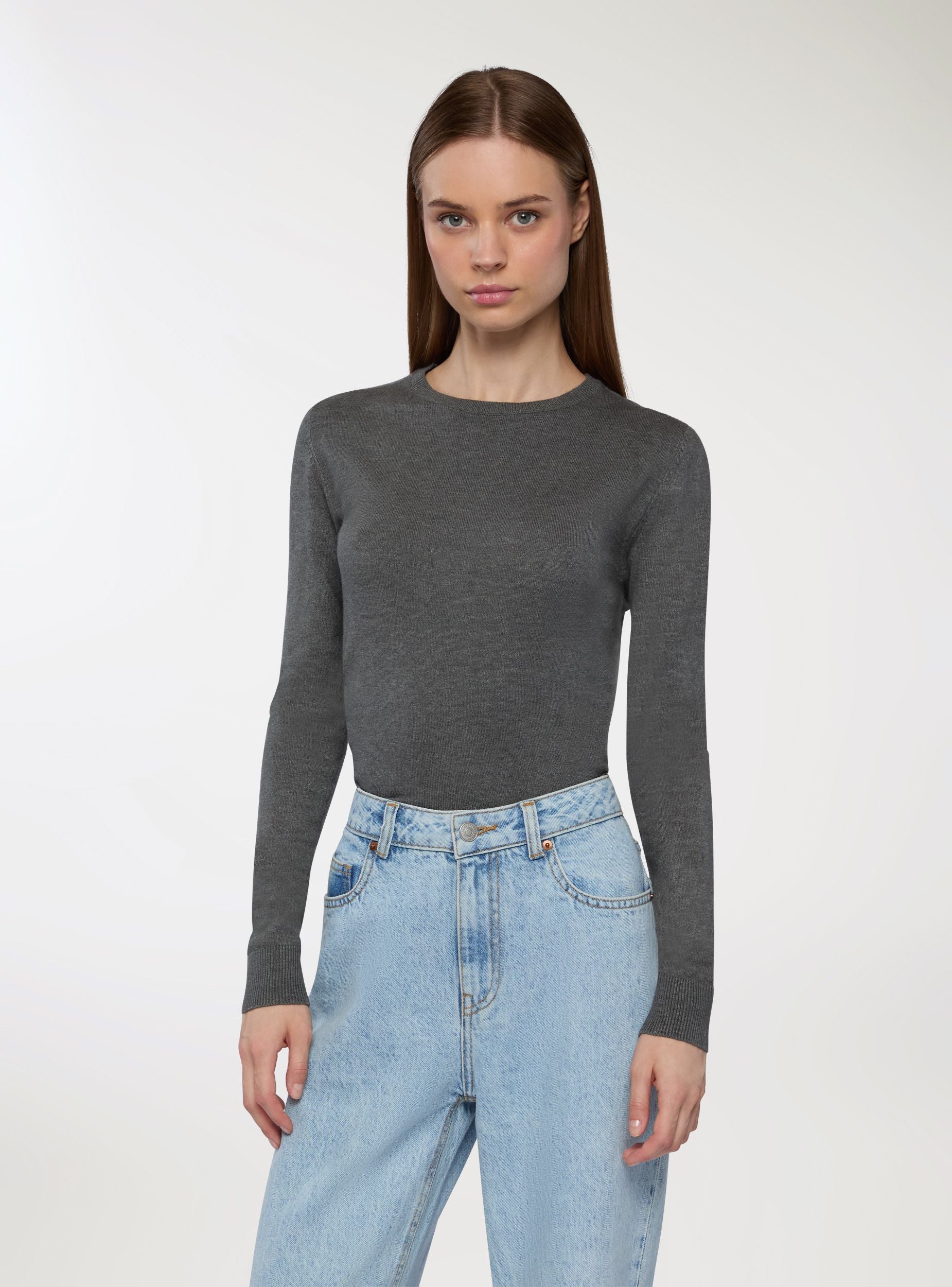 Maglia basica da donna a maniche lunghe con girocollo e finiture a costine. Questa maglia è un capo essenziale e senza tempo, pensato per adattarsi a ogni stagione e occasione. Il design minimal con girocollo e maniche lunghe la rende perfetta da indossare sia da sola che come strato sotto giacche, cardigan o blazer. I dettagli a costine su colletto, fondo e polsini aggiungono un tocco curato e discreto che valorizza la semplicità del modello. Morbida, versatile e dalla vestibilità comoda, è una maglia basica da avere sempre a portata di mano nel guardaroba quotidiano, perfetta per creare outfit casual o più eleganti con estrema facilità.