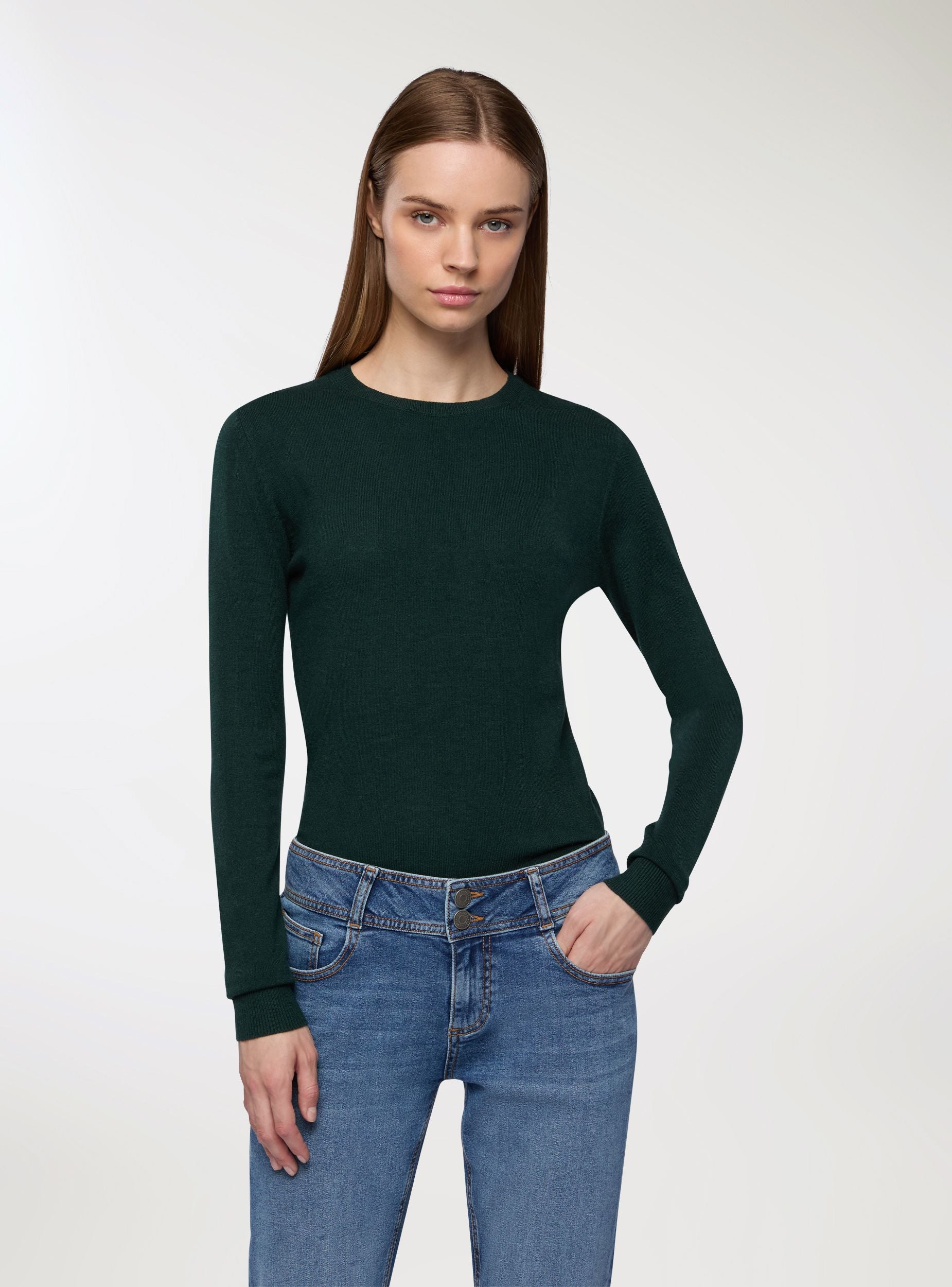 Maglia basica da donna a maniche lunghe con girocollo e finiture a costine. Questa maglia è un capo essenziale e senza tempo, pensato per adattarsi a ogni stagione e occasione. Il design minimal con girocollo e maniche lunghe la rende perfetta da indossare sia da sola che come strato sotto giacche, cardigan o blazer. I dettagli a costine su colletto, fondo e polsini aggiungono un tocco curato e discreto che valorizza la semplicità del modello. Morbida, versatile e dalla vestibilità comoda, è una maglia basica da avere sempre a portata di mano nel guardaroba quotidiano, perfetta per creare outfit casual o più eleganti con estrema facilità.