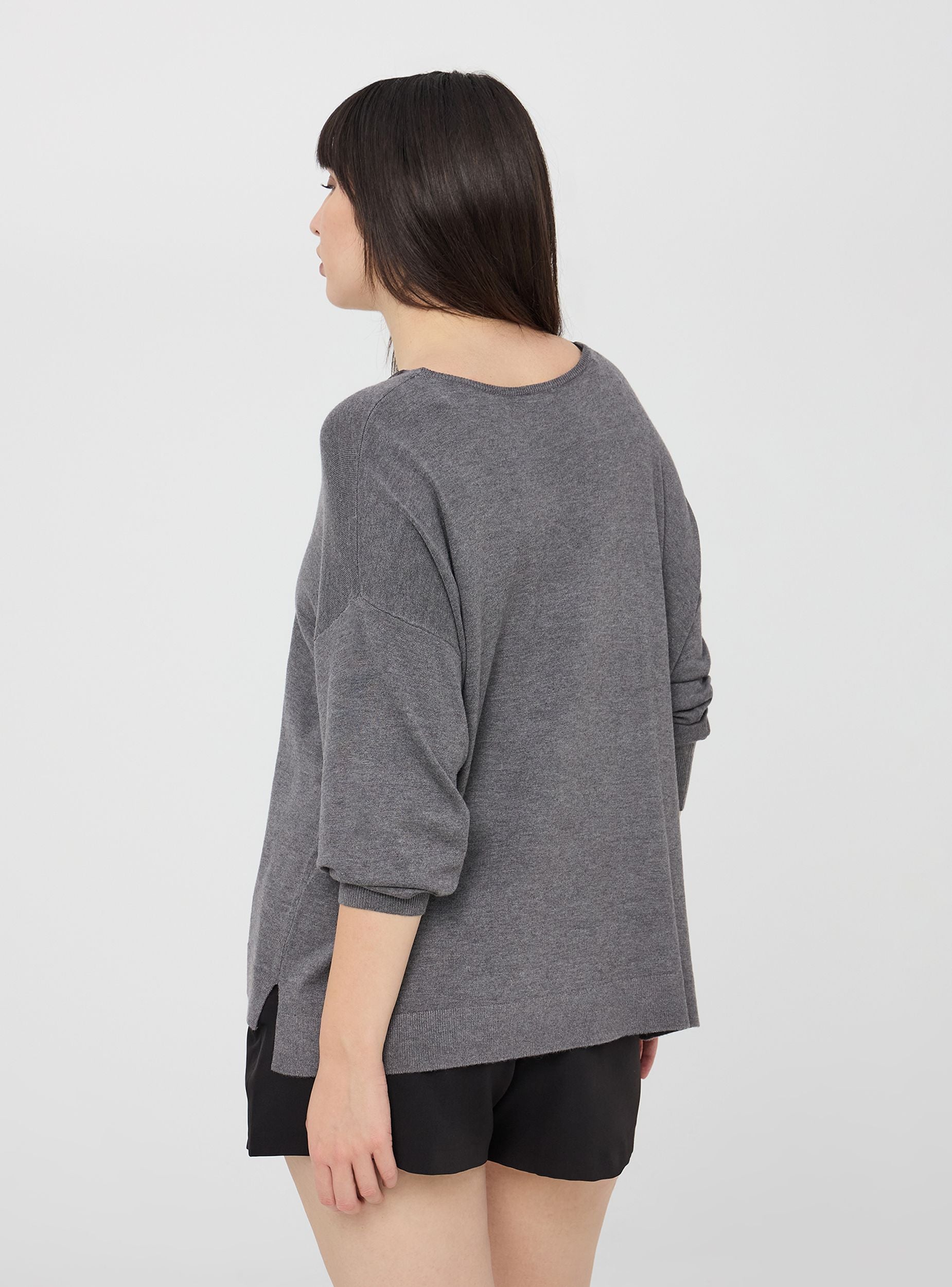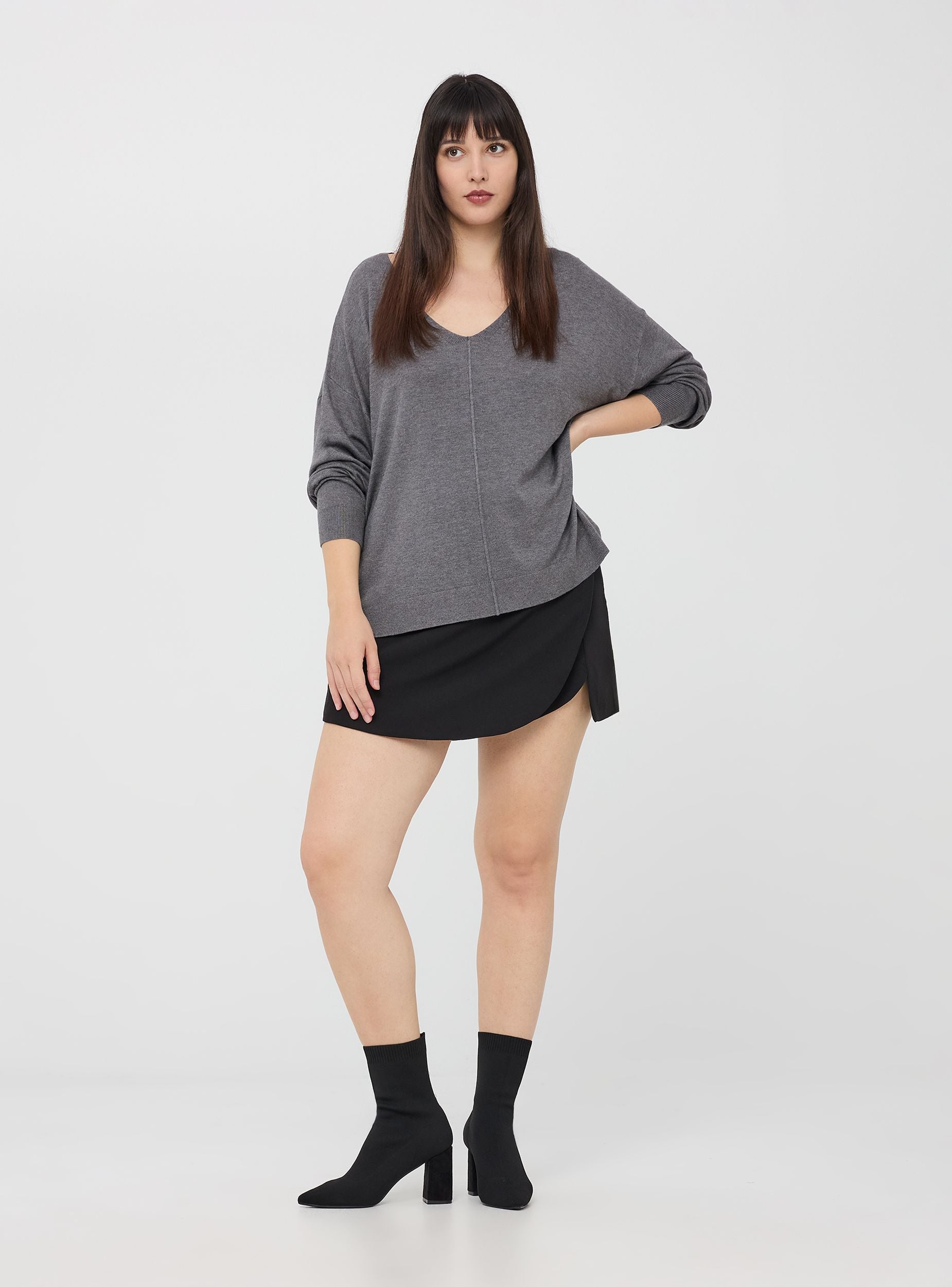 Maglia da donna con scollo a V, caratterizzata da un design semplice e minimalista in tessuto a tinta unita. Le maniche lunghe e la vestibilità comoda la rendono ideale per essere indossata in diverse occasioni, sia informali che casual, abbinata a jeans o pantaloni eleganti per un look versatile e confortevole.Podrobnosti