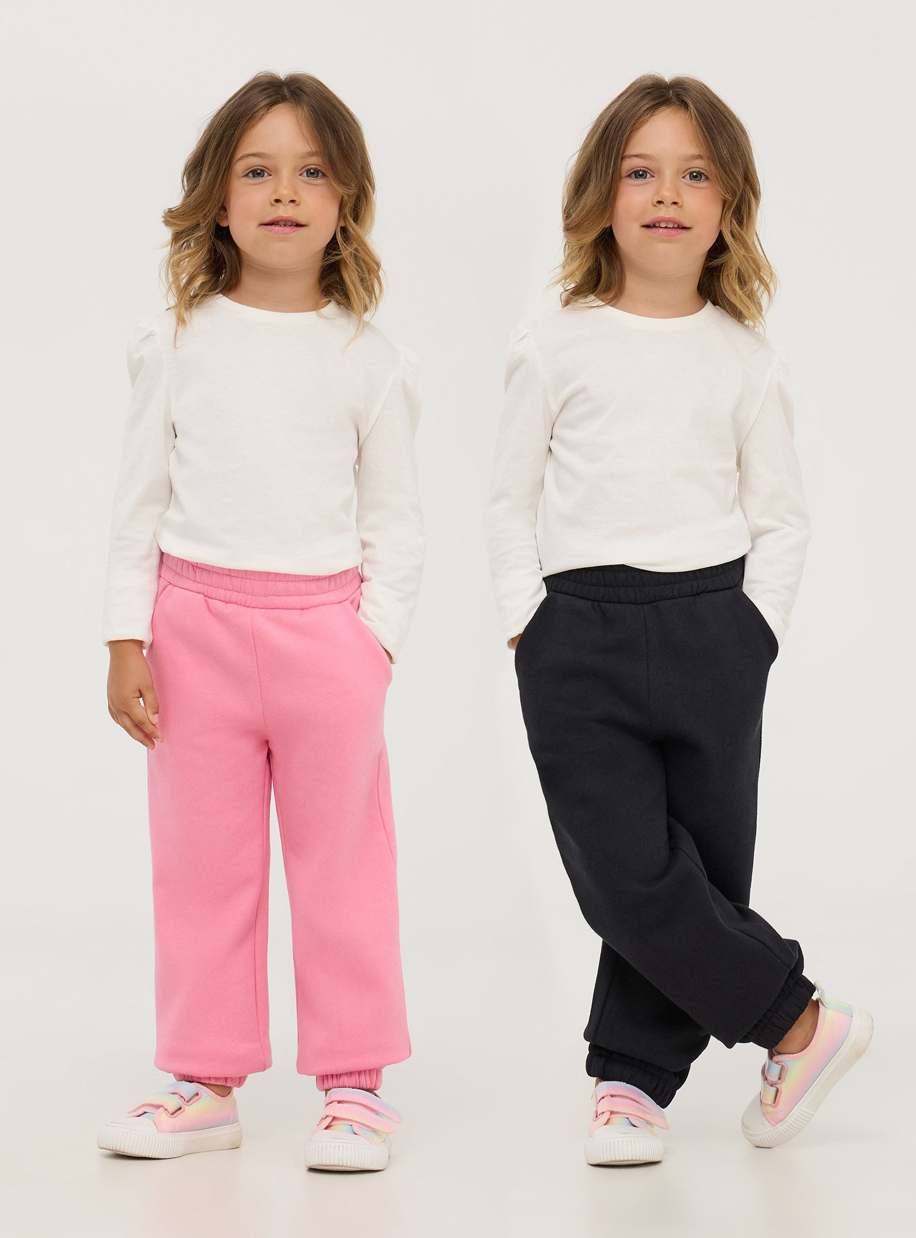 Confezione composta da 5 pantaloni della tuta da bimba a tinta unita. Elastico in vita e sul fondo gamba, tasche laterali. Tessuto pesante. Vestibilità regular.Podrobnosti