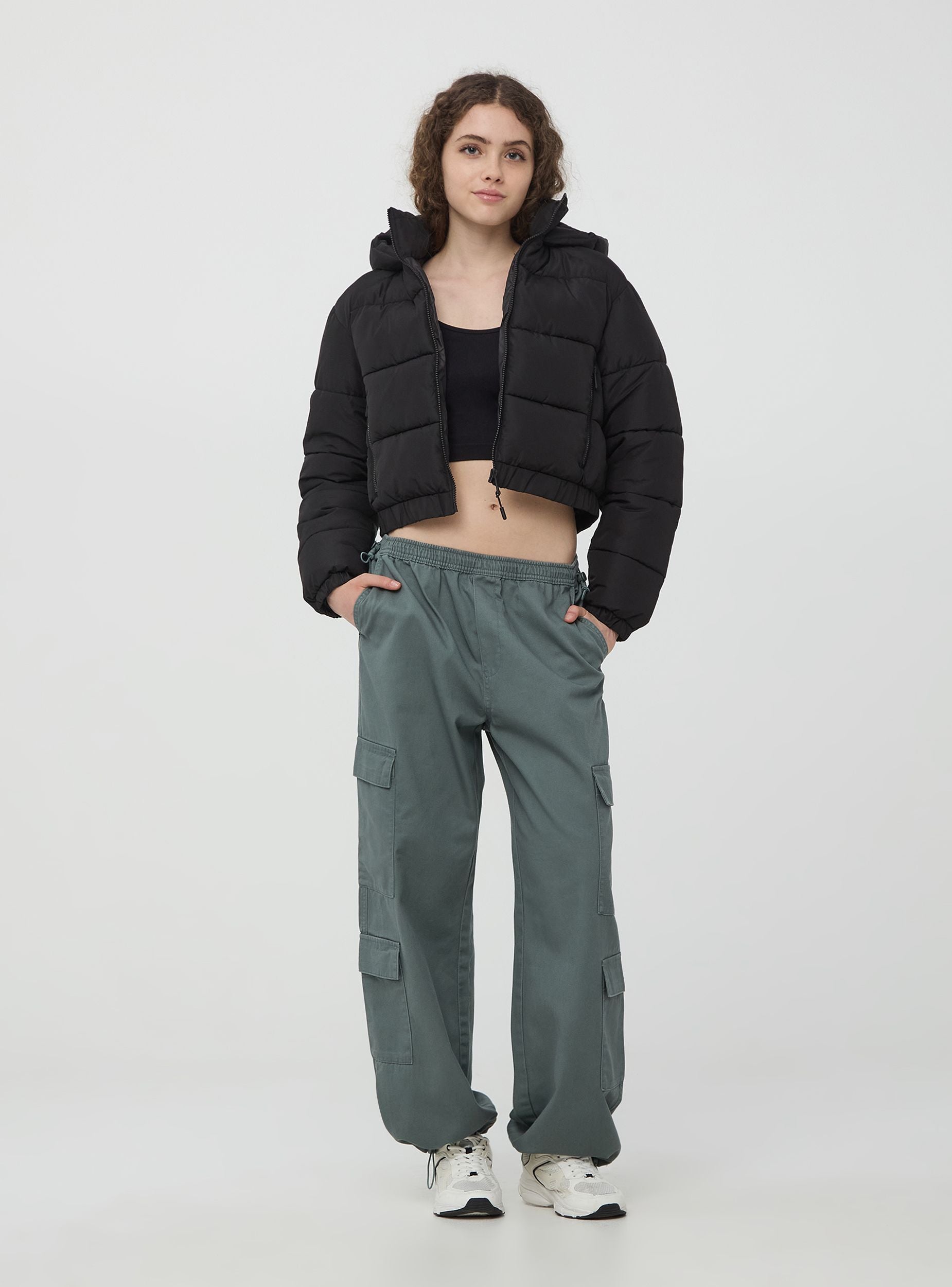 Pantaloni parachute da donna realizzati in twill di cotone, con un design che include un elastico in vita con coulisse regolabile e stopper, presenti anche sul fondo. Dotato di tasconi multipli con patta per maggiore praticità e stile, un taglio ampio e comodo per una vestibilità rilassata. Perfetti per un look casual e alla moda, questi pantaloni parachute in twill sono ideali per attività all'aperto, passeggiate in città o momenti di relax nel weekend. La loro versatilità li rende adatti sia per un abbigliamento quotidiano che per occasioni più informali.Podrobnosti