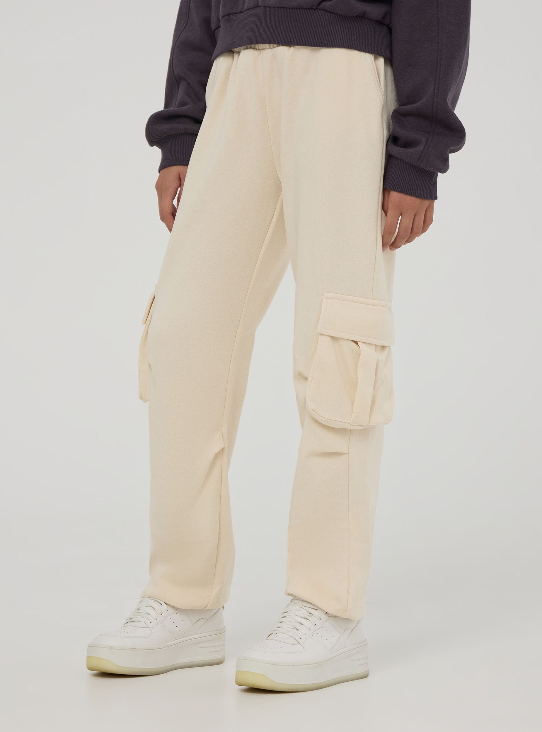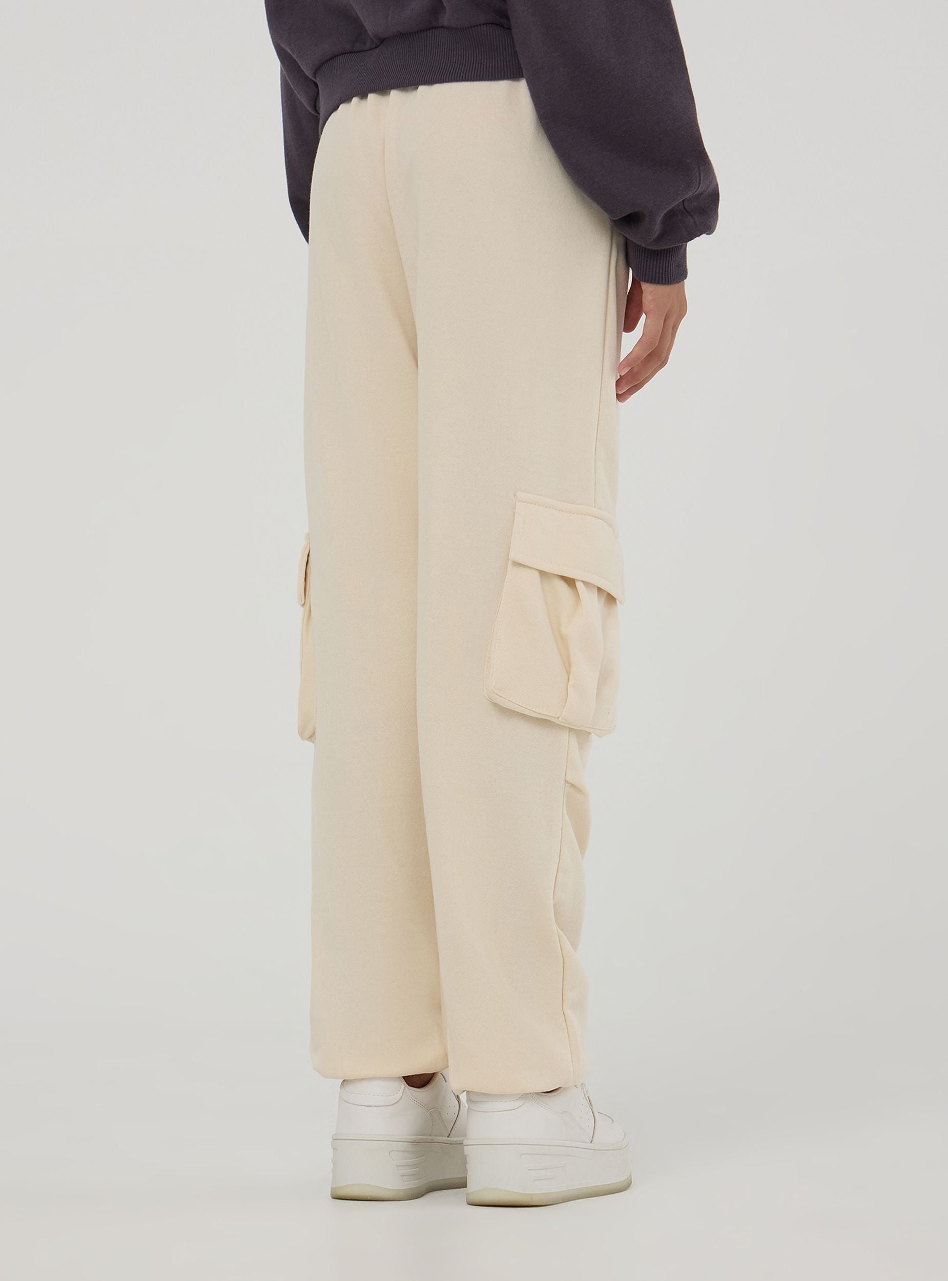 Pantaloni della tuta da bambina realizzati in tessuto leggero con elastico interno regolabile in vita con stopper e polsini alle caviglie elastici. Il design presenta due tasche cargo applicate lateralmente, offrendo un look pratico e alla moda. La vestibilità comoda e il materiale leggero li rendono ideali per l'uso quotidiano e per le attività sportive.Podrobnosti