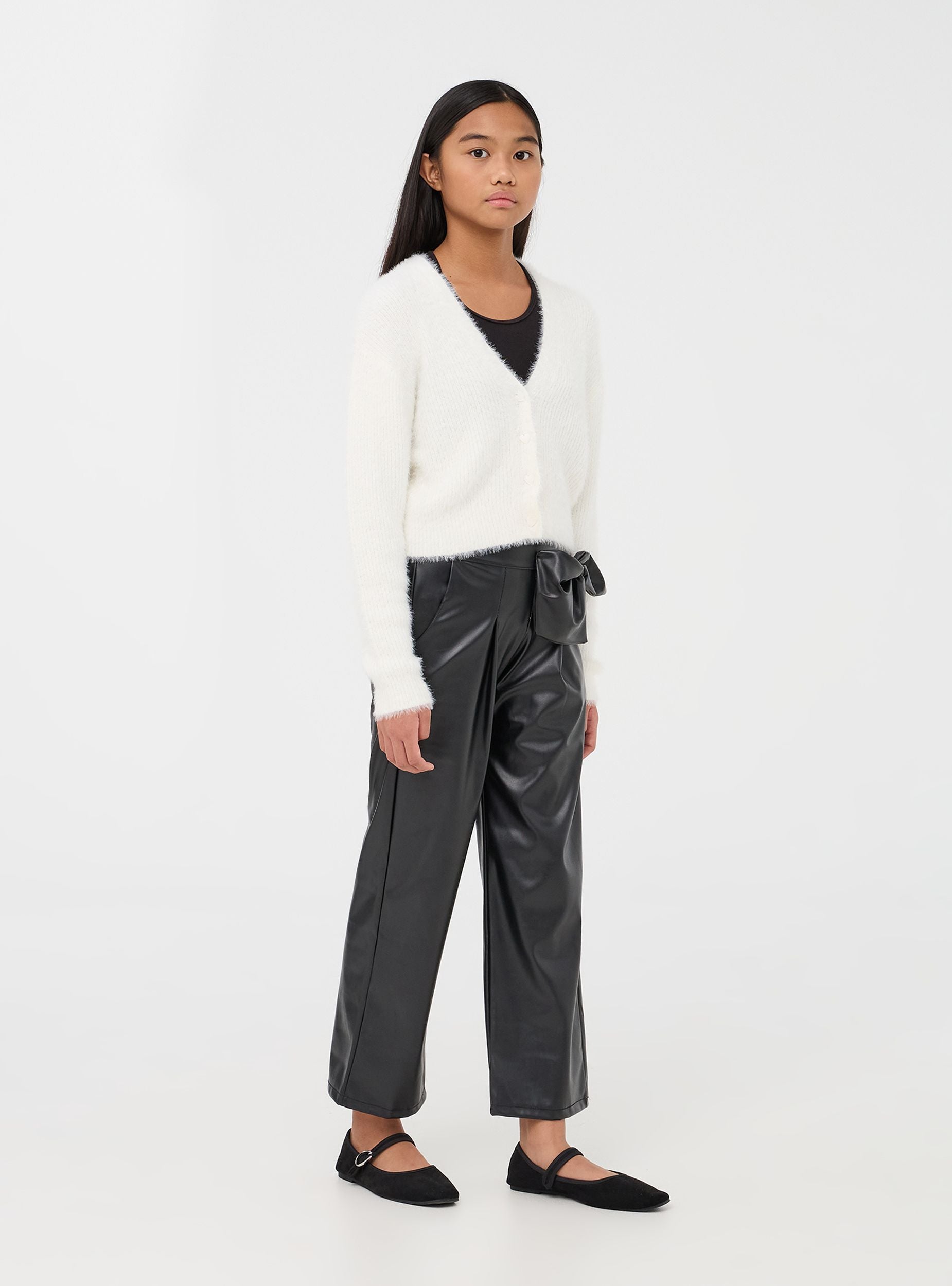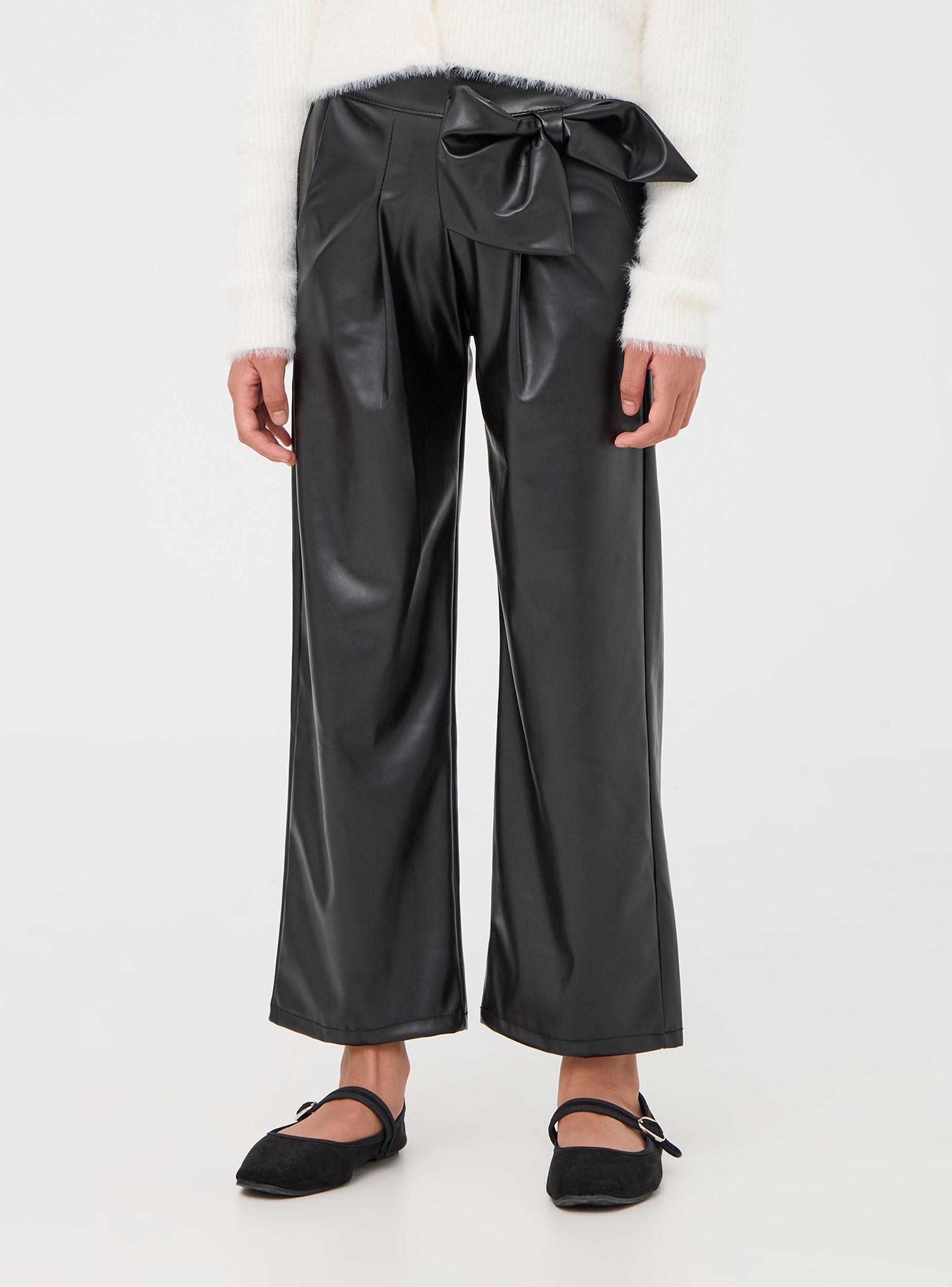 Pantaloni da bambina realizzati in effetto pelle. Modello wide leg con fiocco in vita. Perfetti per outfit ricercati e comodi.Podrobnosti