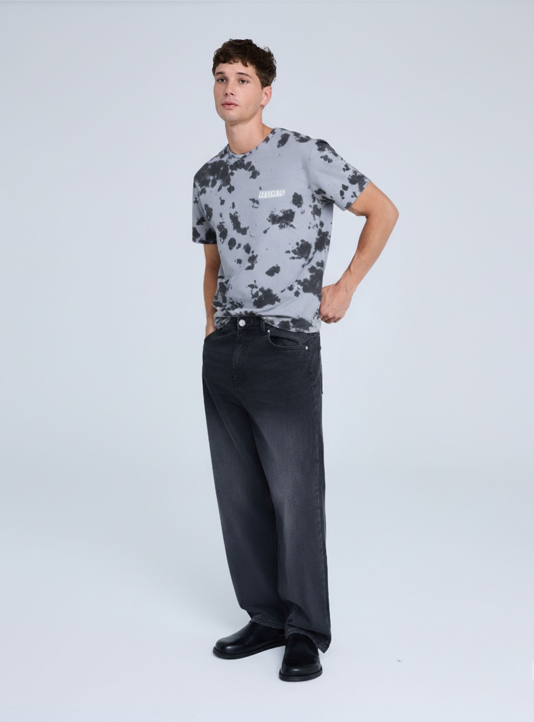 Maglietta da uomo con stampa tie-dye, perfetta per un look casual e moderno. Presenta una vestibilità rilassata, girocollo e maniche corte, ideale per essere abbinata a jeans o pantaloni sportivi. La stampa tie-dye aggiunge un tocco di originalità e stile, rendendola adatta per occasioni informali o per il tempo libero.