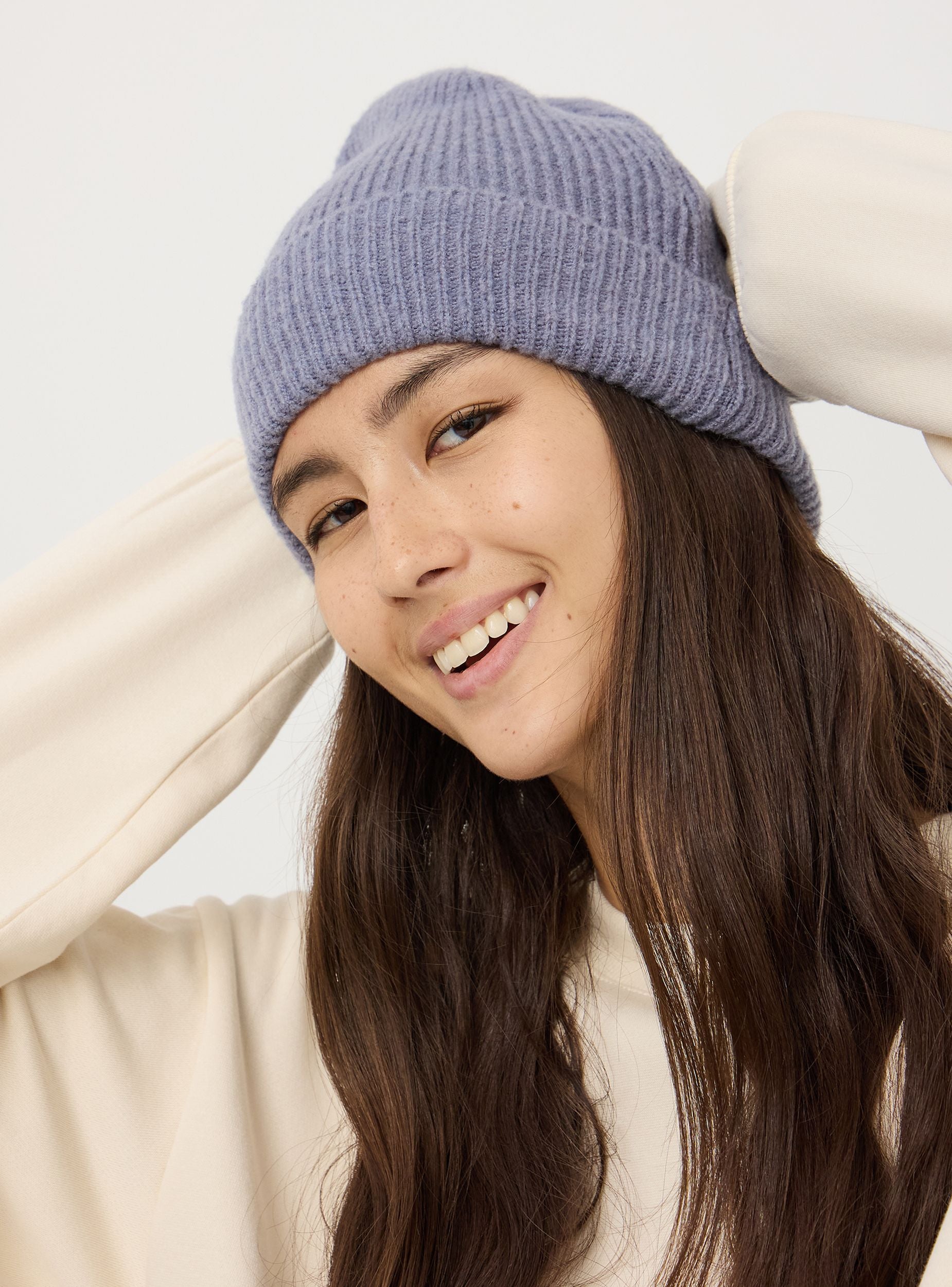 Berretto da donna a coste. Aggiungi un tocco di stile e calore al tuo abbigliamento invernale con questo beanie. Il design a coste verticali offre un look moderno e strutturato, mentre il bordo risvoltato aggiunge un elemento di comfort e vestibilità. Questo accessorio versatile è perfetto per completare i tuoi outfit invernali.Podrobnosti