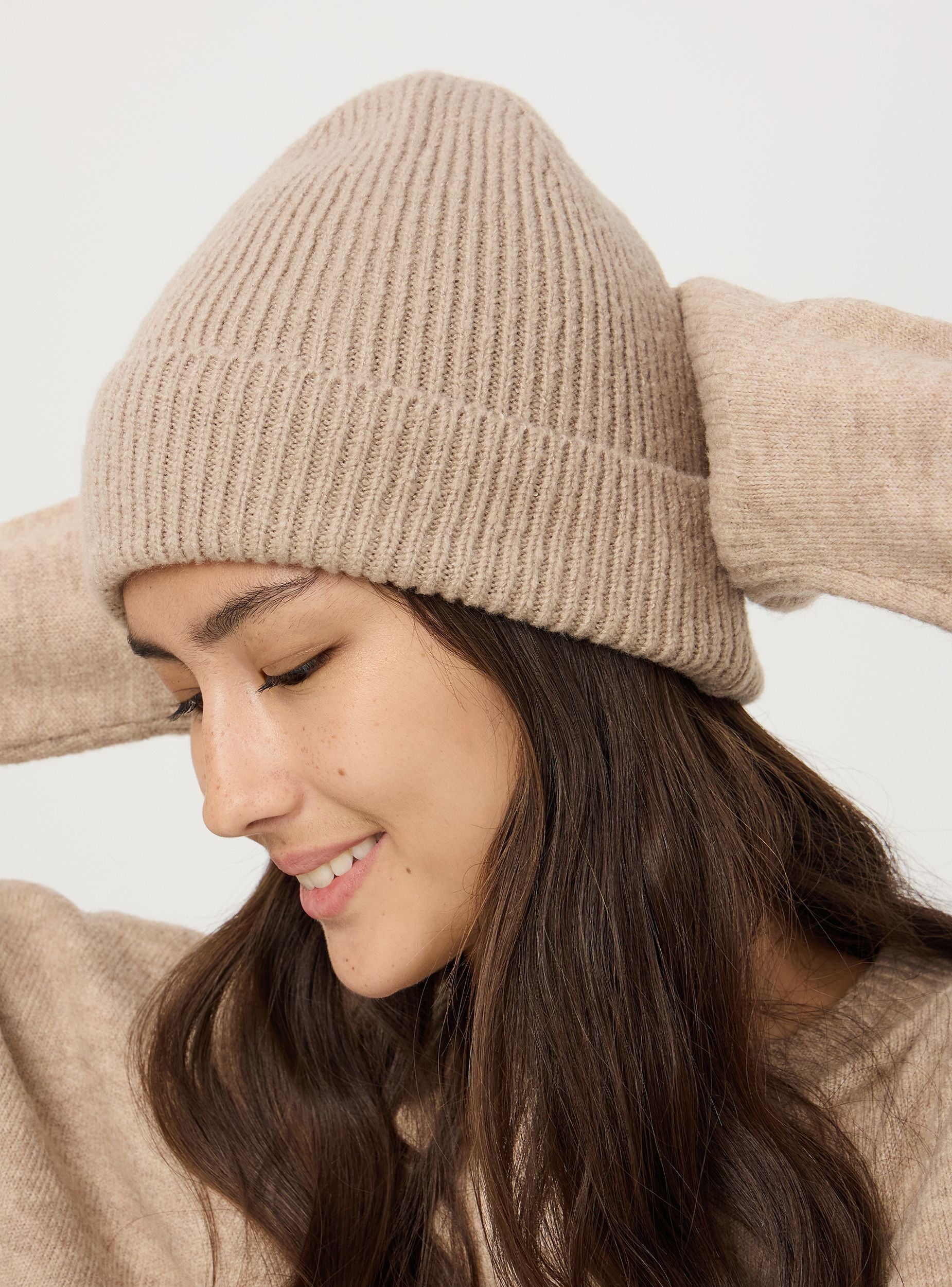 Berretto da donna a coste. Aggiungi un tocco di stile e calore al tuo abbigliamento invernale con questo beanie. Il design a coste verticali offre un look moderno e strutturato, mentre il bordo risvoltato aggiunge un elemento di comfort e vestibilità. Questo accessorio versatile è perfetto per completare i tuoi outfit invernali.Podrobnosti