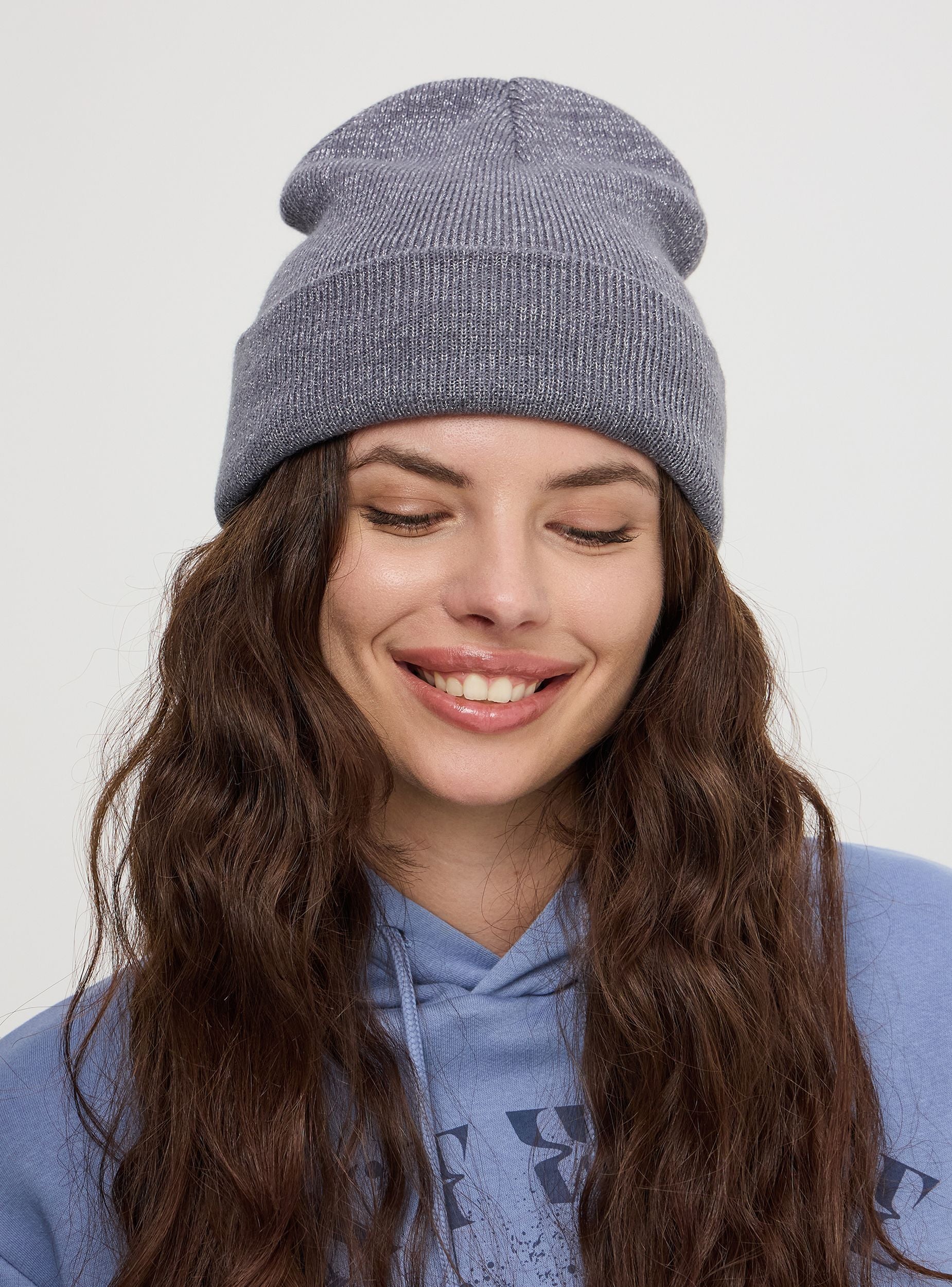 Berretto da donna a tinta unita luccicante. Un capo essenziale per l'inverno che garantisce calore e comfort. Il design semplice e versatile del beanie lo rende perfetto per completare qualsiasi outfit casual. Il bordo risvoltato aggiunge un tocco di stile, mantenendo le orecchie ben coperte durante le giornate più fredde. Ideale per passeggiate all'aperto, attività  sportive o semplicemente per aggiungere un elemento di tendenza al tuo look quotidiano.