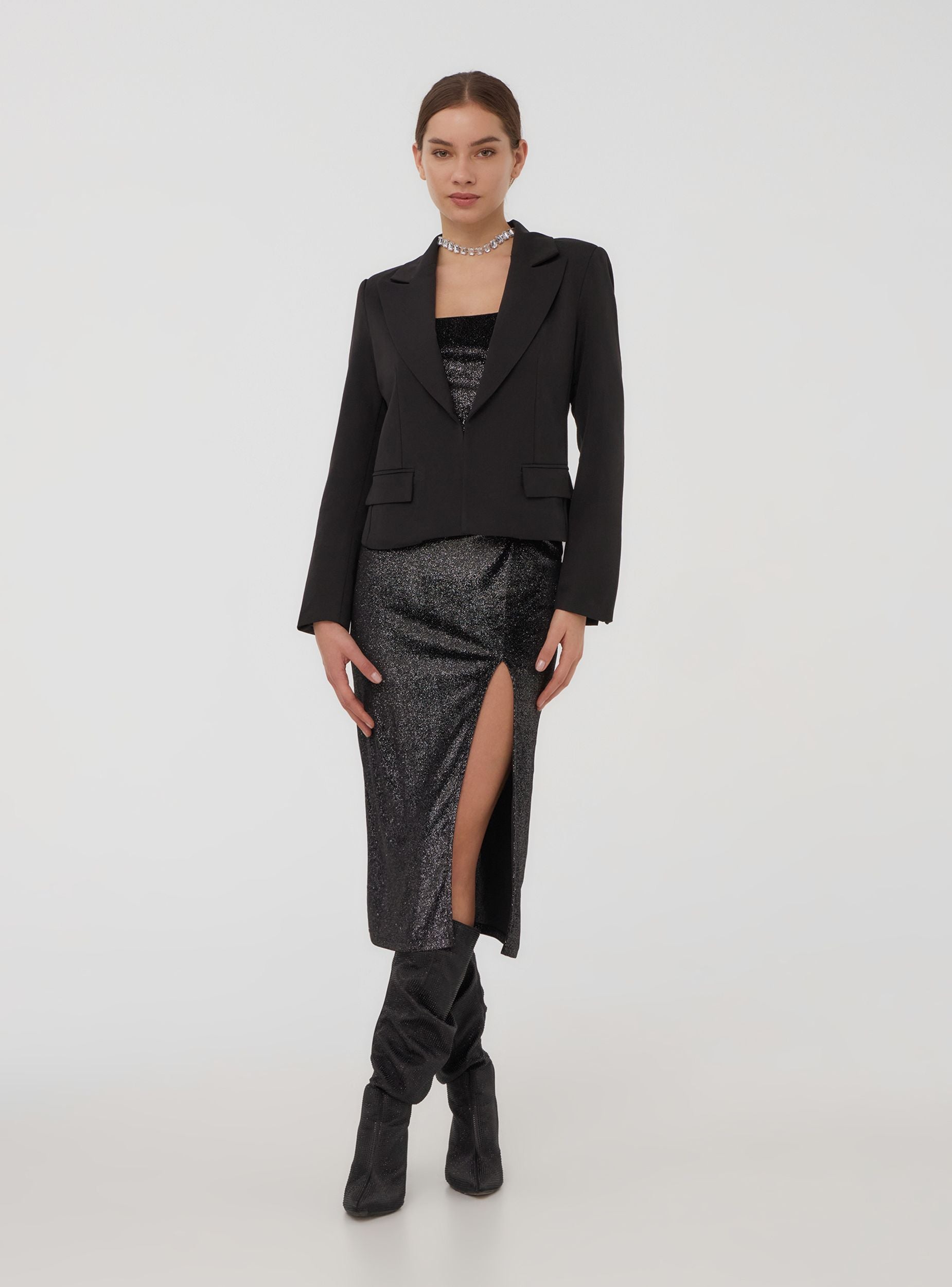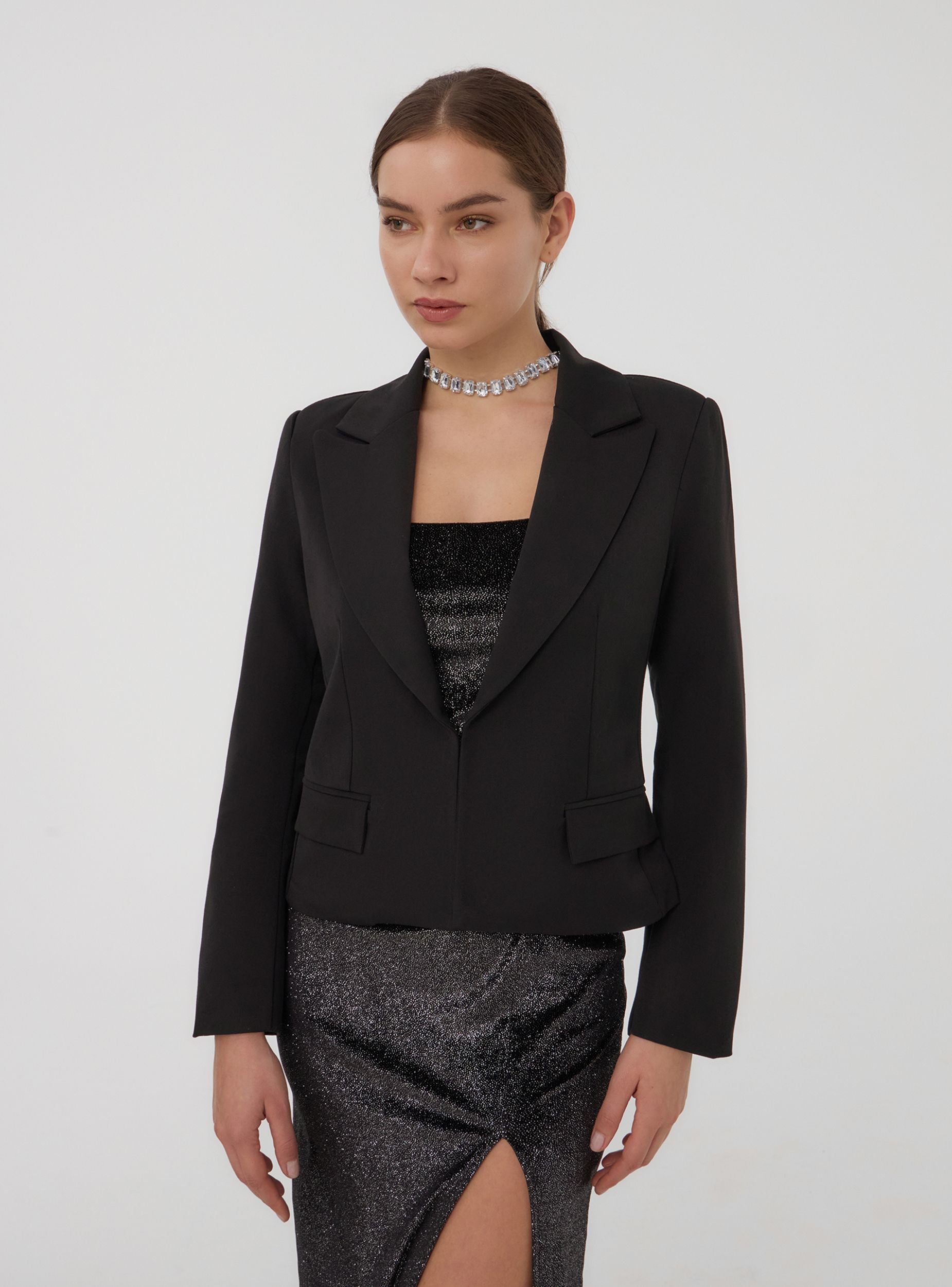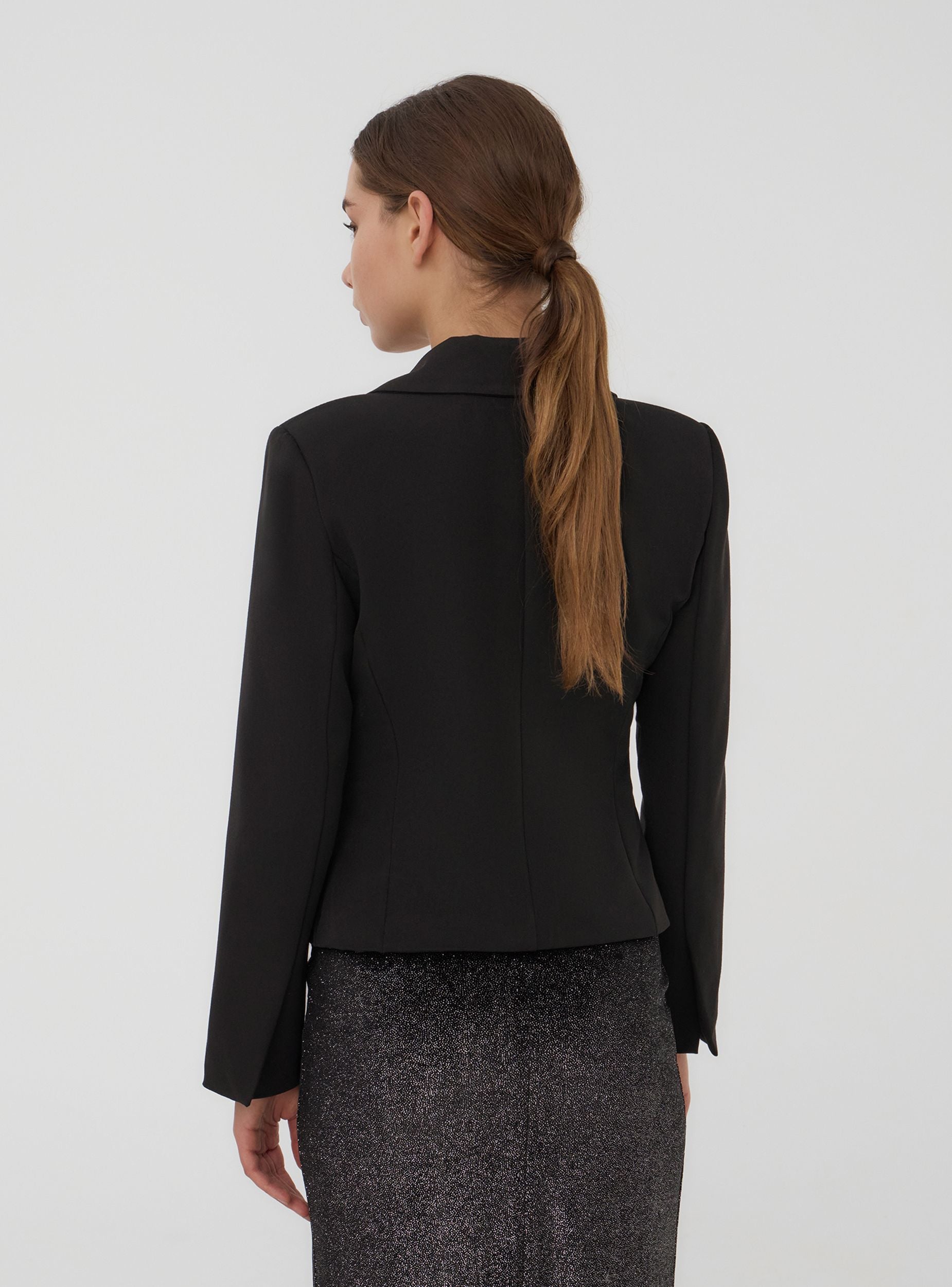 Giacca da donna dal design raffinato, perfetta per completare con eleganza il tuo outfit. Realizzata in tinta unita, presenta maniche lunghe e ampi revers che donano struttura e stile. Ideale per un look formale o casual-chic, offre un equilibrio tra comfort e versatilità. Le linee essenziali e il taglio curato la rendono un capo imprescindibile nel guardaroba, adatto a diverse occasioni e facilmente abbinabile.Podrobnosti