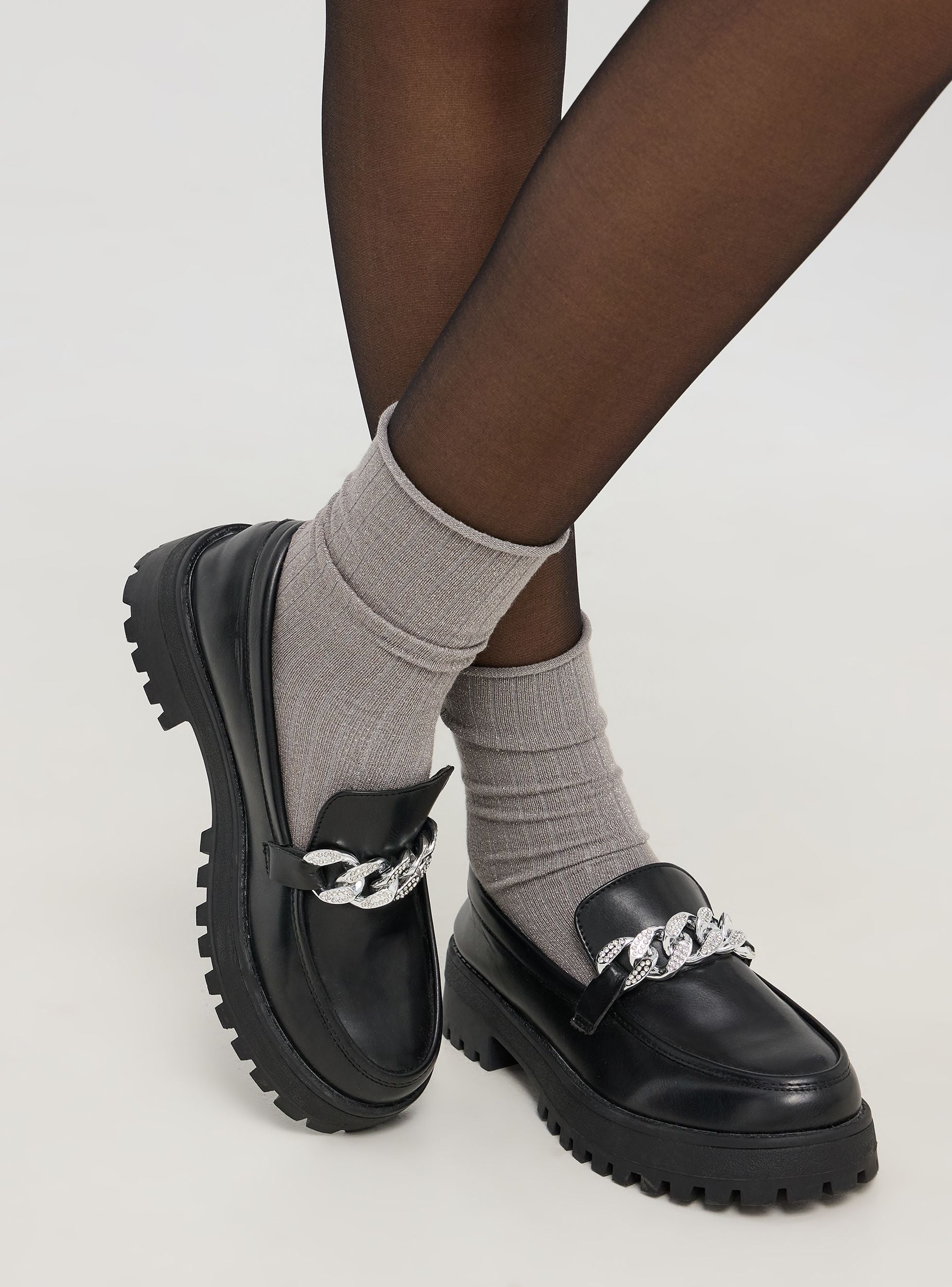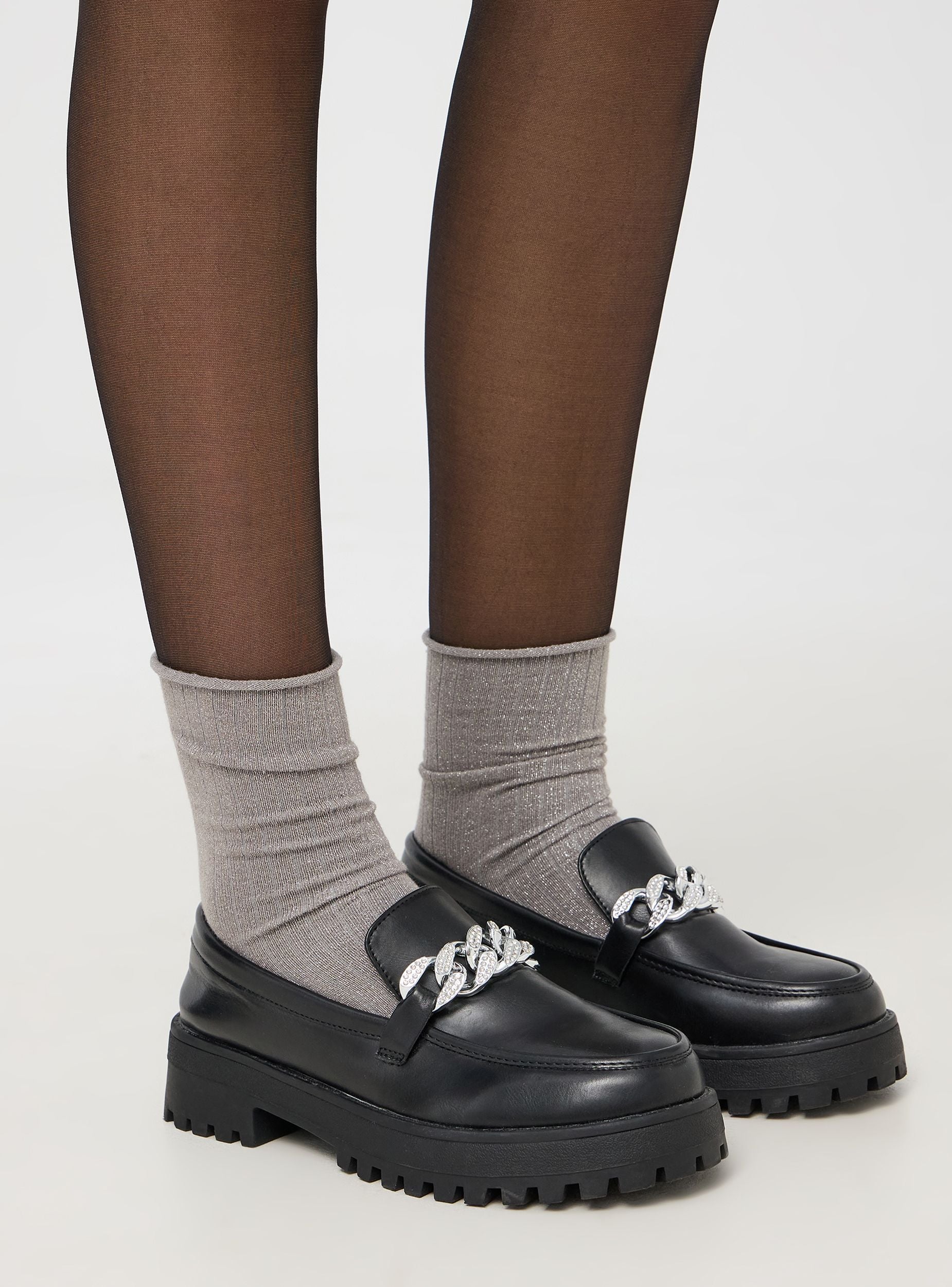 Mocassini da donna dal design elegante, perfetti per aggiungere un tocco di stile al tuo guardaroba quotidiano. La scarpa presenta una suola spessa che offre una buona aderenza e resistenza. La tomaia è decorata con una catena brillante che aggiunge un elemento di sofisticazione e originalità al modello. La calzata è facile e confortevole, rendendoli ideali per un uso prolungato durante la giornata. Questi mocassini combinano funzionalità e stile, ideali per un look casual ma curato.Podrobnosti