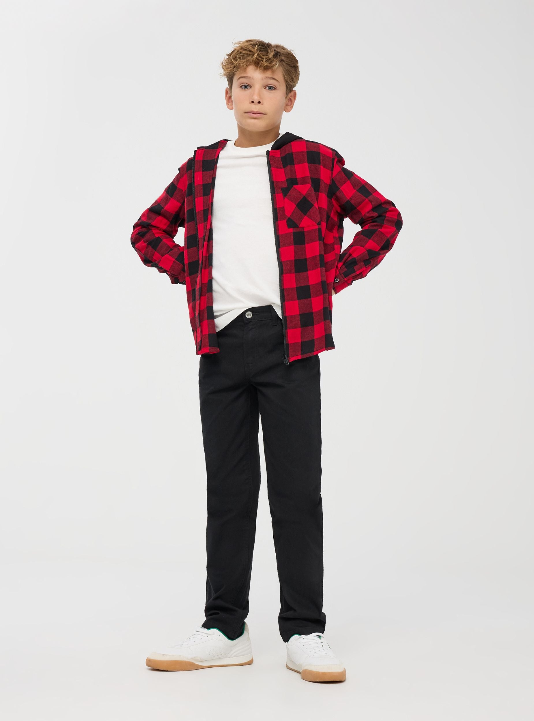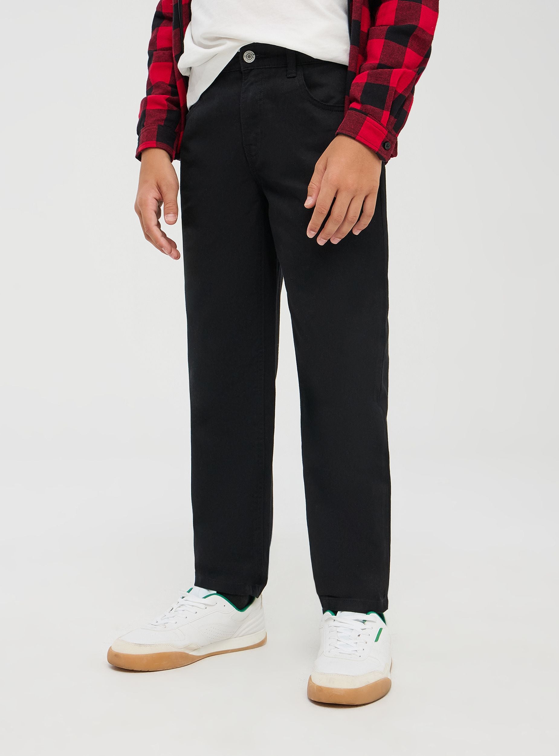 Scopri i nostri esclusivi pantaloni da bambino, realizzati in morbido cotone che assicura comfort tutto il giorno. Il design unico tinta unita li rende perfetti per ogni occasione, dal gioco al primo giorno di scuola. Grazie al pratico modello a 5 tasche, c'è sempre spazio per piccoli tesori da portare con sé. Il dettaglio del bottone metallico, la zip resistente e i passanti in vita aggiungono un tocco di stile e funzionalità, rendendoli un must-have nel guardaroba di ogni bambino.
