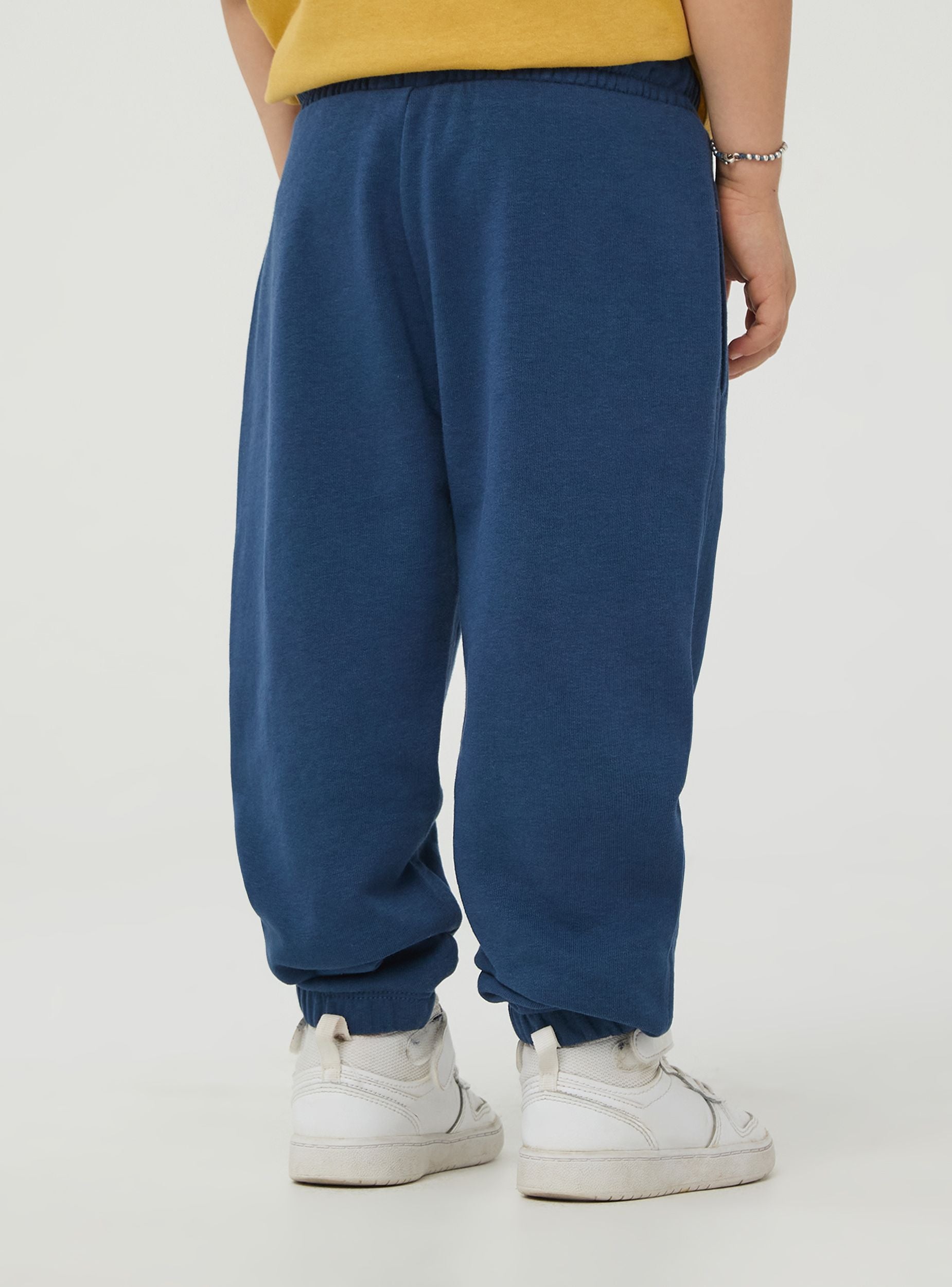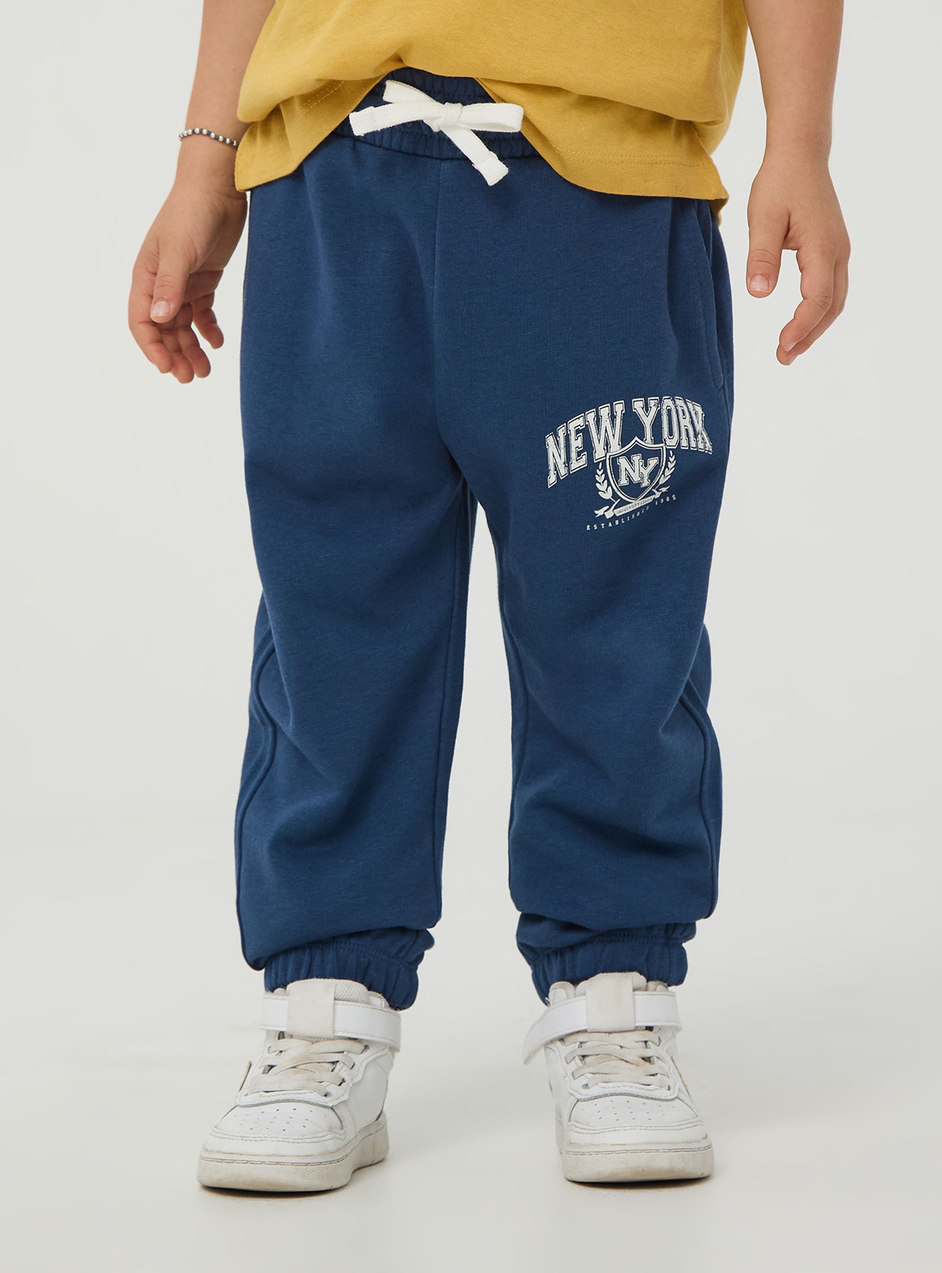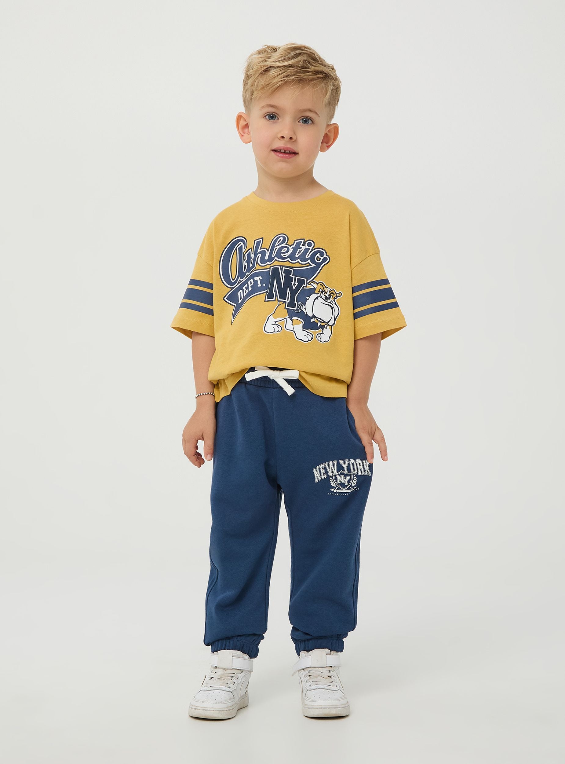 Pantaloni della tuta da bimbo realizzati in tessuto leggero a tinta unita con stampa, a contrasto, ispirata allo sport dei campus americani. Modello con pratiche tasche laterali, coulisse in vita a contrasto che consente una regolazione perfetta, ed elastico in vita e nei polsini per un comfort e una vestibilità ottimale. Ideali per il tempo libero e le attività quotidiane, questi pantaloni sono perfetti per i bimbi attivi che cercano comodità e stile.