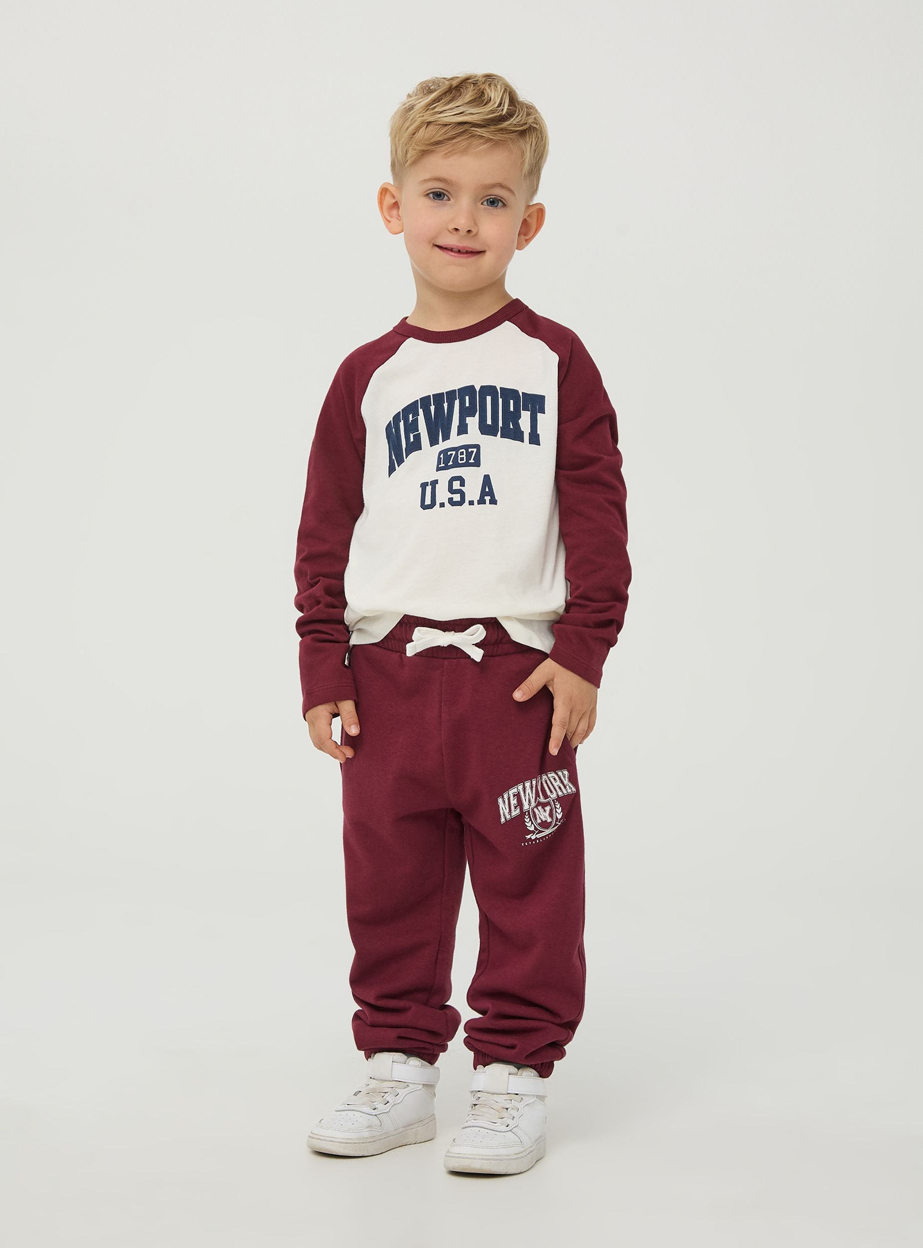 Pantaloni della tuta da bimbo realizzati in tessuto leggero a tinta unita con stampa, a contrasto, ispirata allo sport dei campus americani. Modello con pratiche tasche laterali, coulisse in vita a contrasto che consente una regolazione perfetta, ed elastico in vita e nei polsini per un comfort e una vestibilità ottimale. Ideali per il tempo libero e le attività quotidiane, questi pantaloni sono perfetti per i bimbi attivi che cercano comodità e stile.Podrobnosti