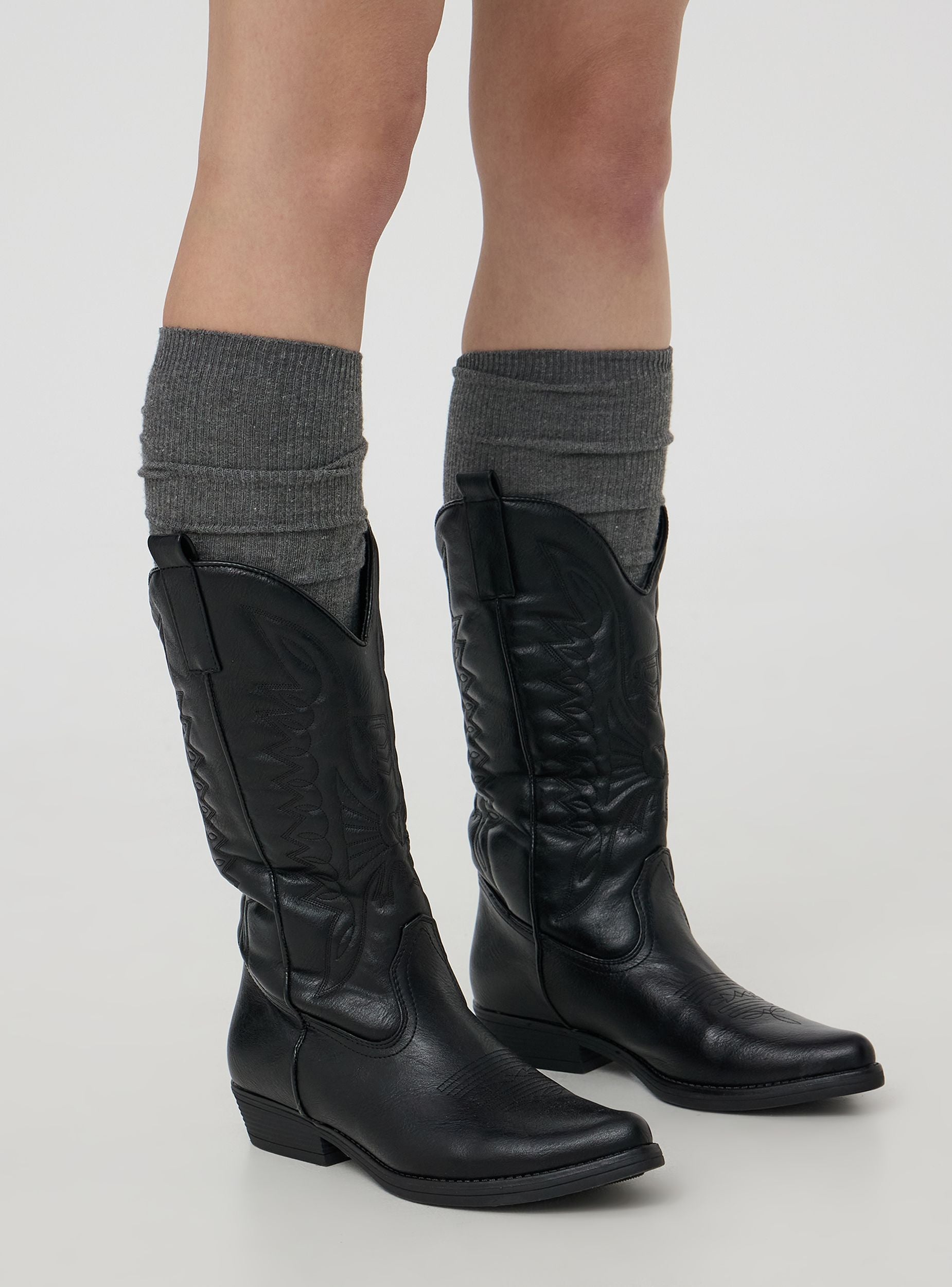 Stivali texani da donna, caratterizzati da un design iconico e distintivo che richiama lo stile western. Questi stivali presentano una punta affusolata, leggermente appuntita, tipica del modello texano. Il tacco è largo e inclinato, conferendo stabilità e un tocco di femminilità. La suola è robusta, progettata per durare nel tempo e affrontare vari terreni. Gli stivali texani da donna sono perfetti per aggiungere un tocco di carattere e stile a qualsiasi outfit, sia casual che più ricercato.