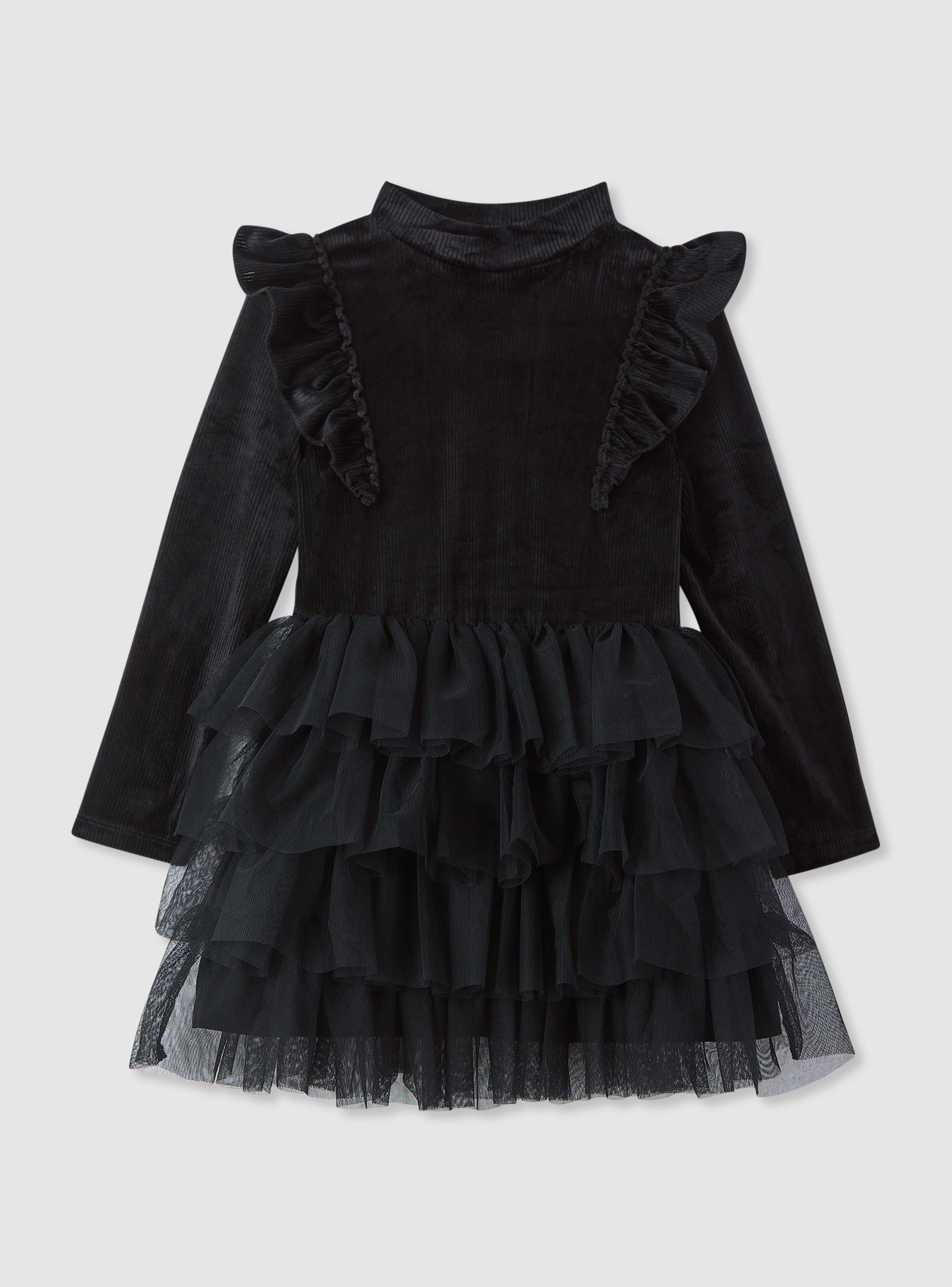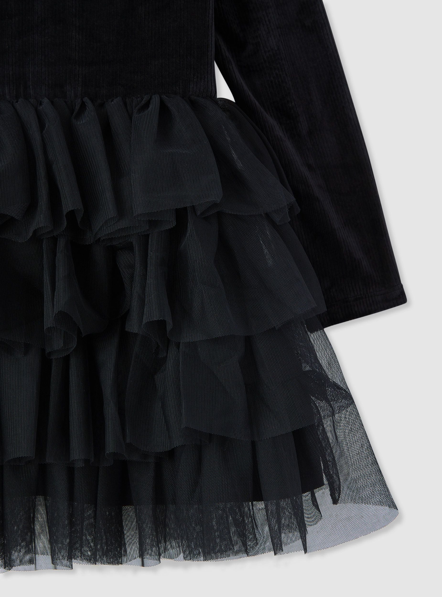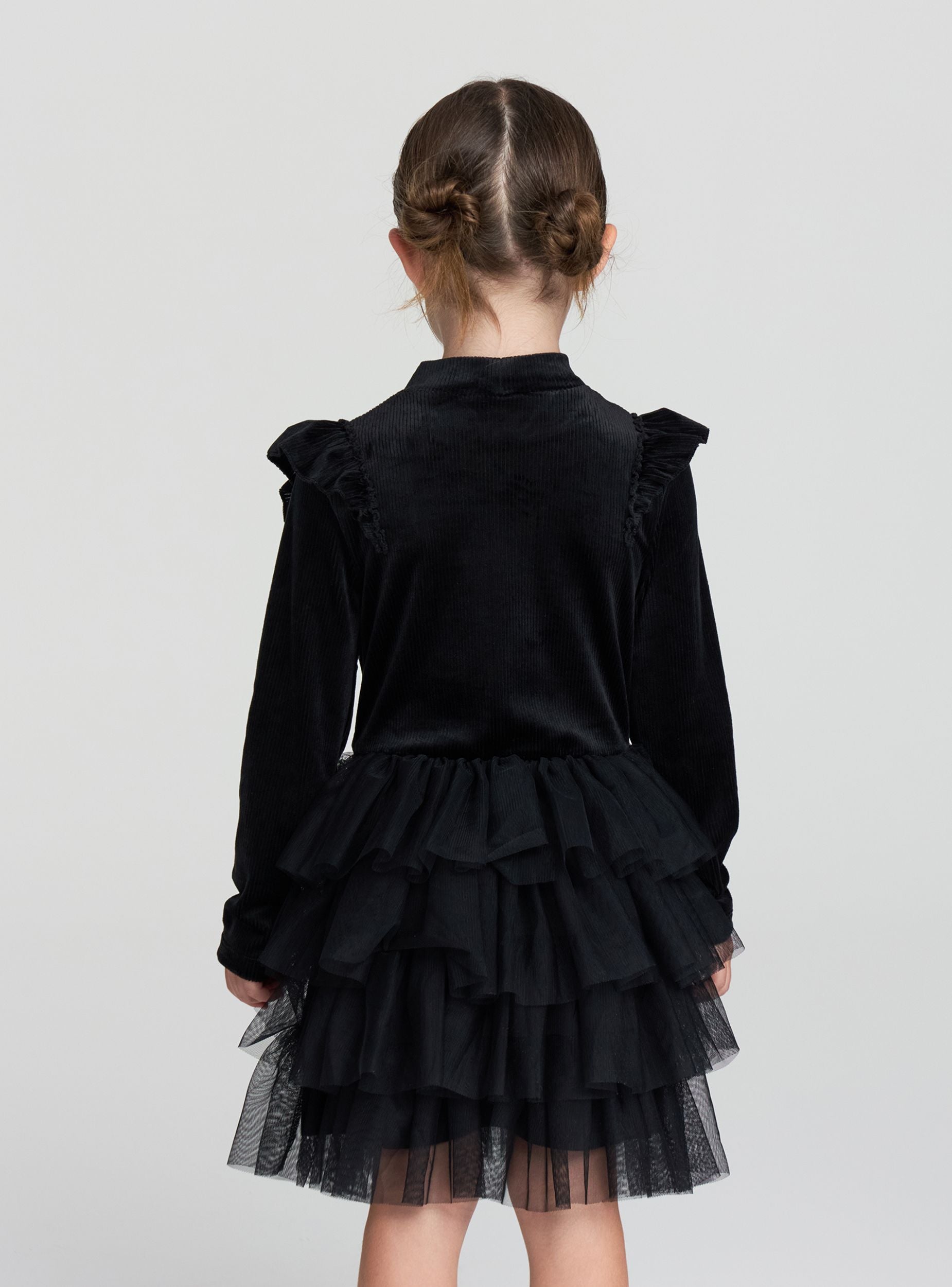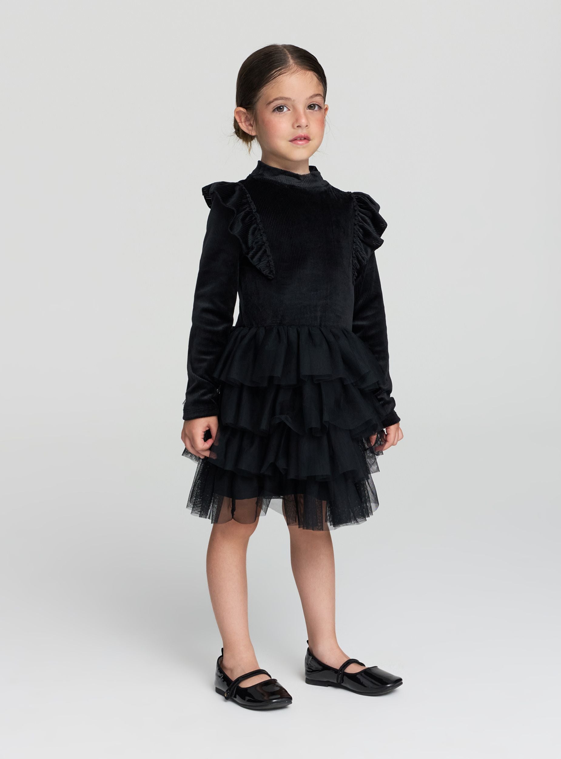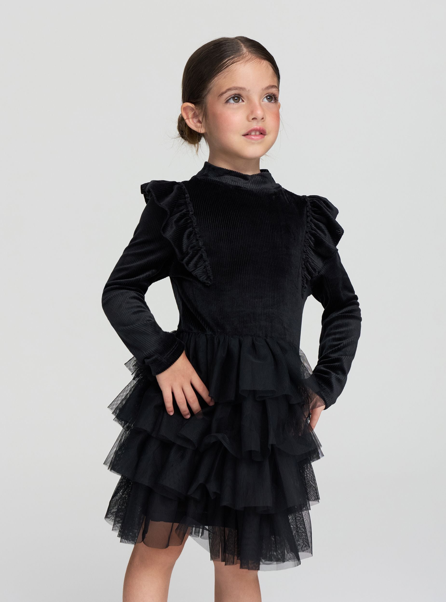 Abito a balze da bimba, perfetto per occasioni speciali o look eleganti dal gusto romantico. Il modello presenta maniche lunghe, gonna a più strati in tulle vaporoso e volants decorativi sulle spalle che donano movimento e raffinatezza. Il taglio svasato garantisce comfort e libertà nei movimenti, rendendolo ideale per cerimonie e feste.Podrobnosti