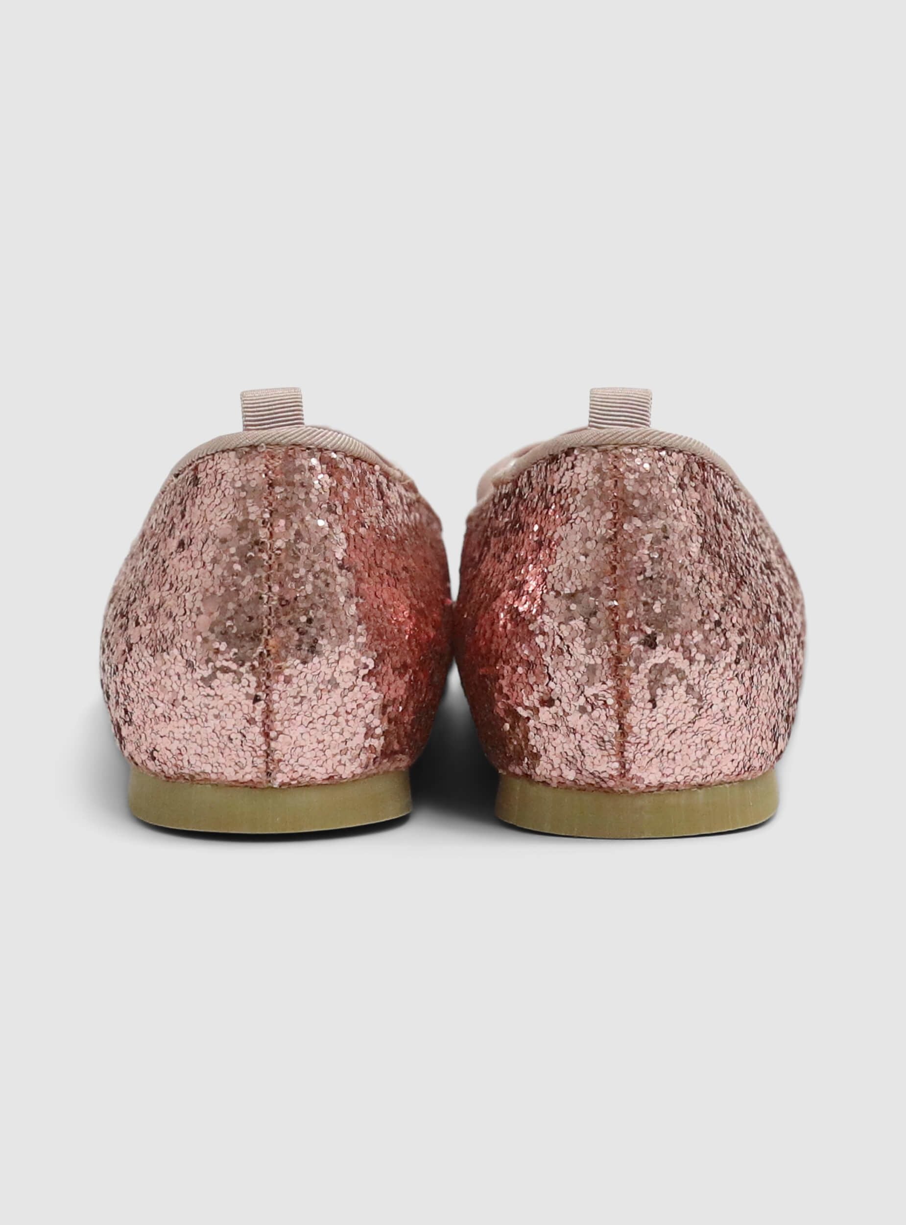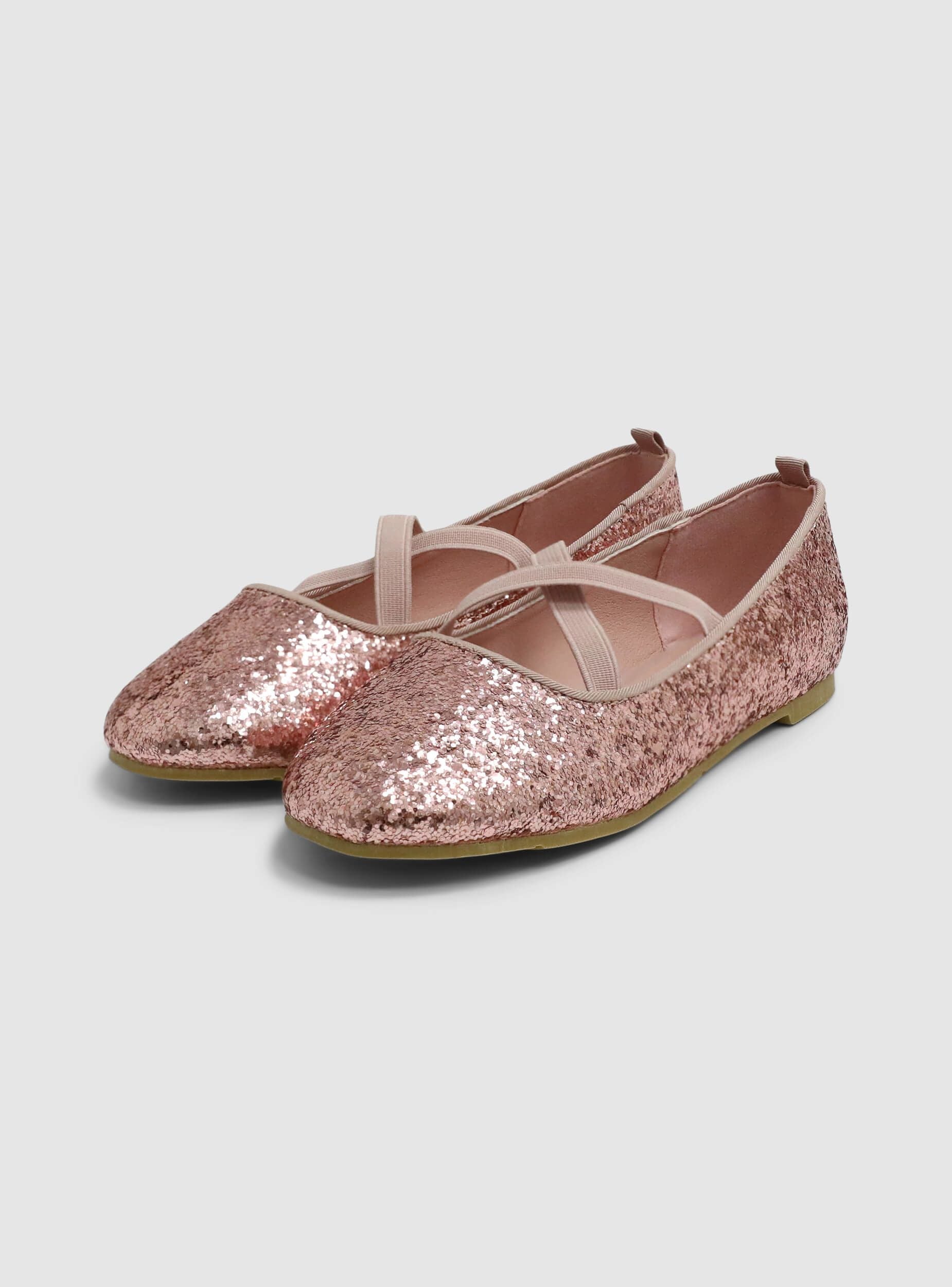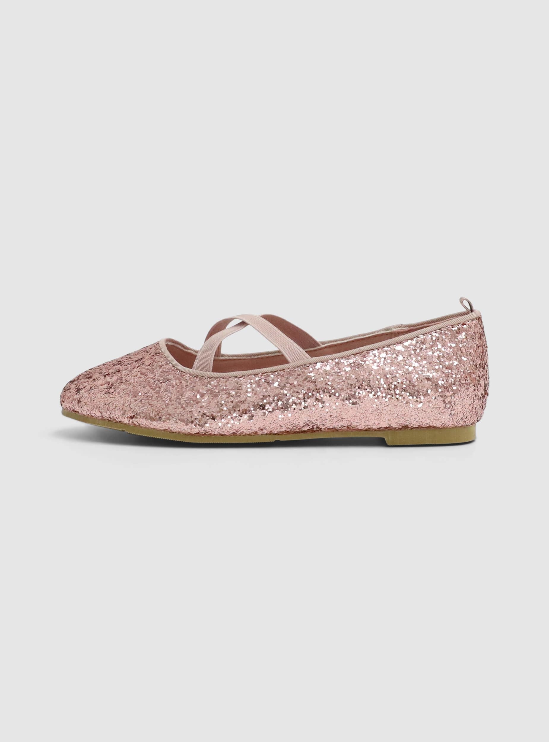 Balerina për vajza ideale për raste speciale dhe festa, të karakterizuara nga një sipërfaqe me efekt shkëlqyes dhe që i jep një prekje të ndritshme dhe lojale. Dizajni me elastikë të kryqëzuar garanton një përshtatje të qëndrueshme dhe komode, perfekte për të shoqëruar veshje elegante ose pamje më të rastësishme. Sole e sheshtë që siguron praktikë dhe liri lëvizjeje gjatë gjithë ditës.Detajet