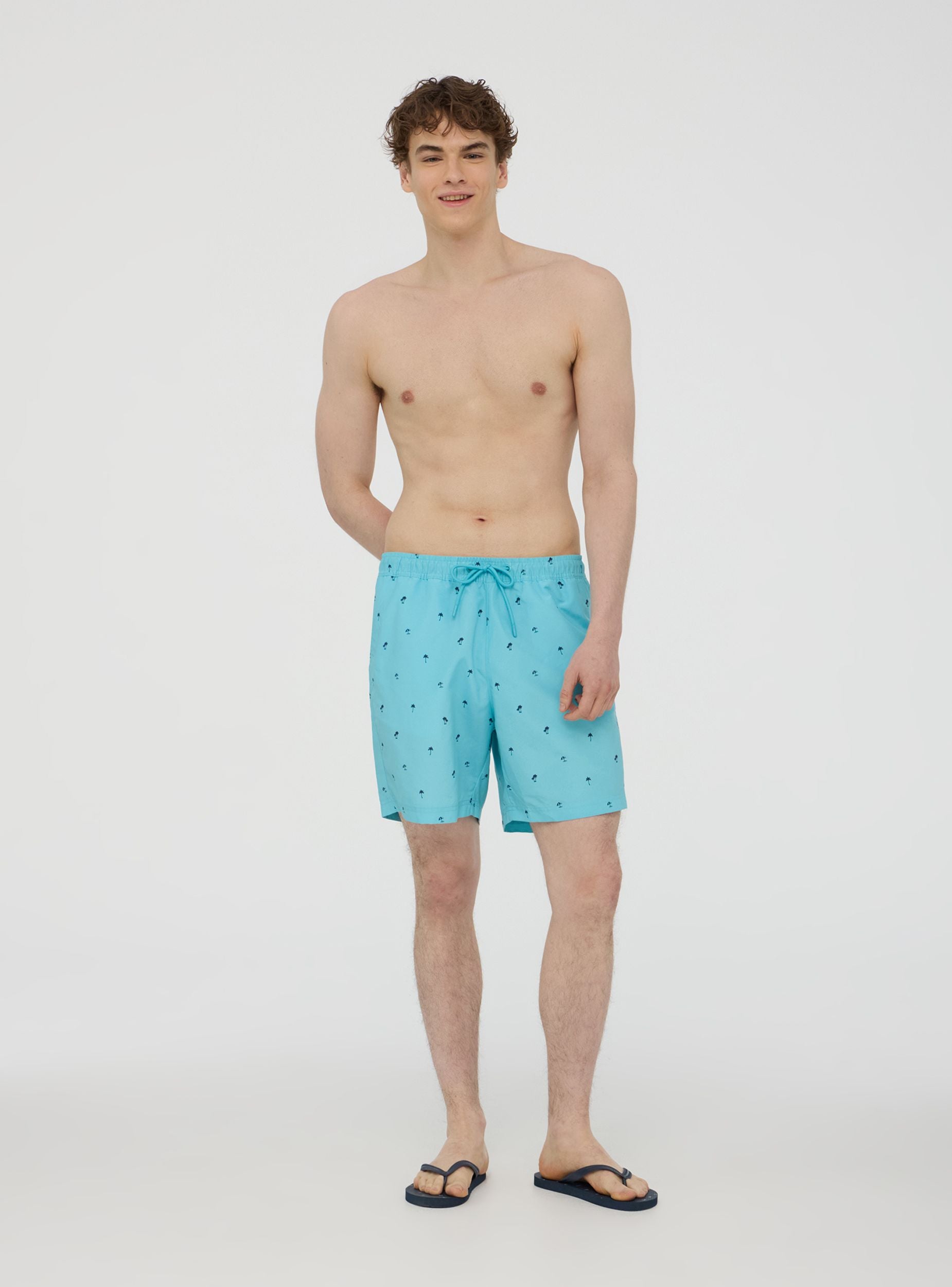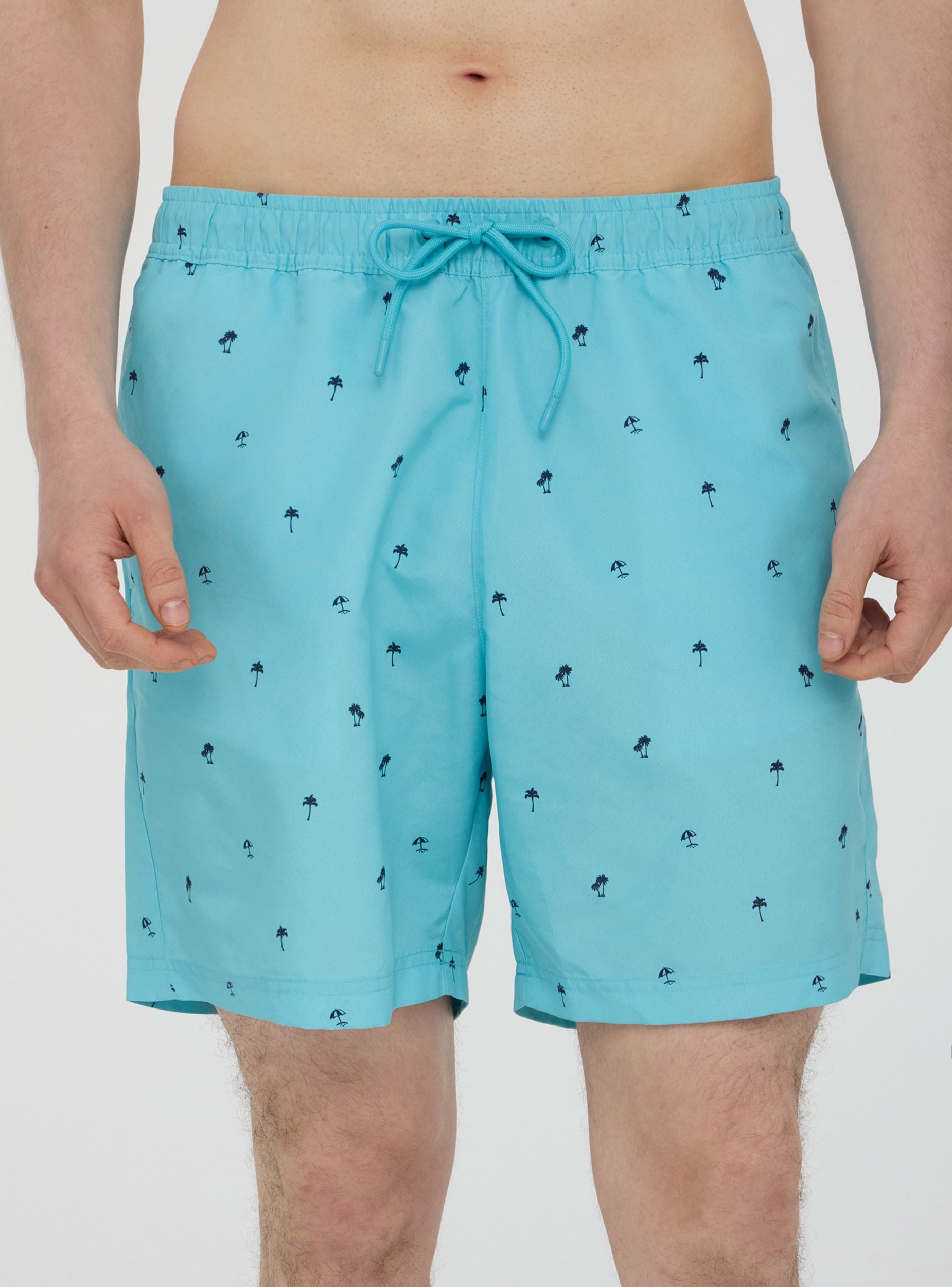 Pëlhurë perfekte për verën, këto bermuda me mikrofantazi palmash dhe çadrash evokojnë një atmosferë pushimi dhe relaksimi. Korrigjimi i rregullueshëm garanton një përshtatje komode, ndërsa xhepat anësorë shtojnë praktikën. Xhepi i pasëm me mbyllje në velcro është ideal për të ruajtur objekte të vogla. Ideale për t'u kombinuar me një t-shirt dhe sandale për një pamje të rastësishme plazhi.Detajet