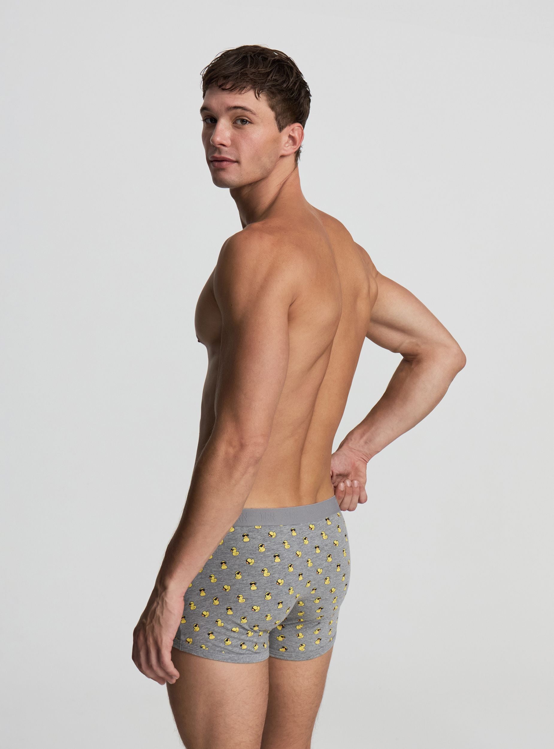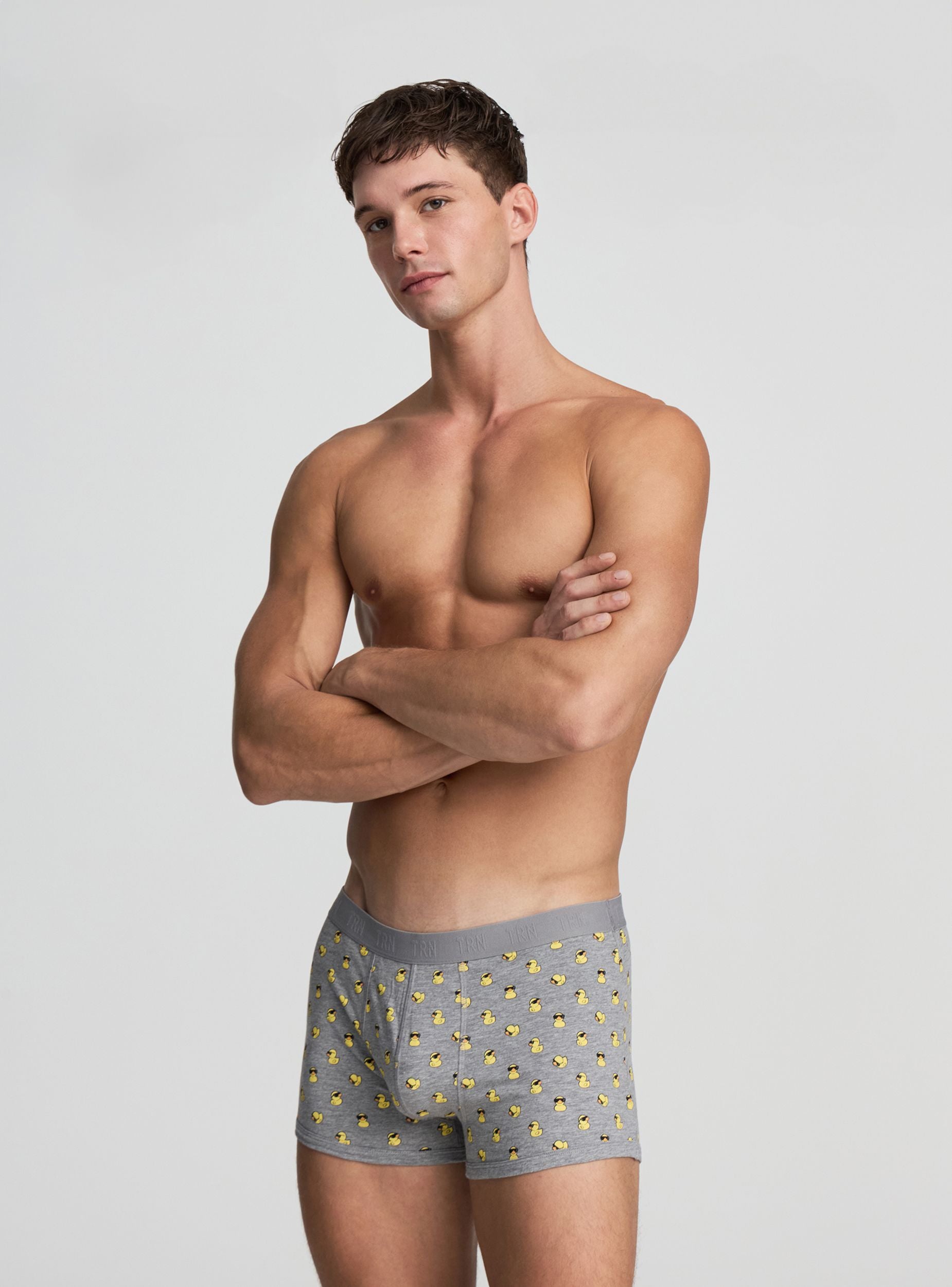 Boxer për burra të karakterizuar nga një printim i gjallë me model patkash. I përshtatshëm për një pamje të rastësishme dhe komode, perfekt për përdorim të përditshëm. Përshtatja e rehatshme garantohet nga materiali elastik, ndërsa belka elastike siguron një përshtatje të shkëlqyer. Një veshje shumëfunksionale që bashkon stilin dhe praktikën.