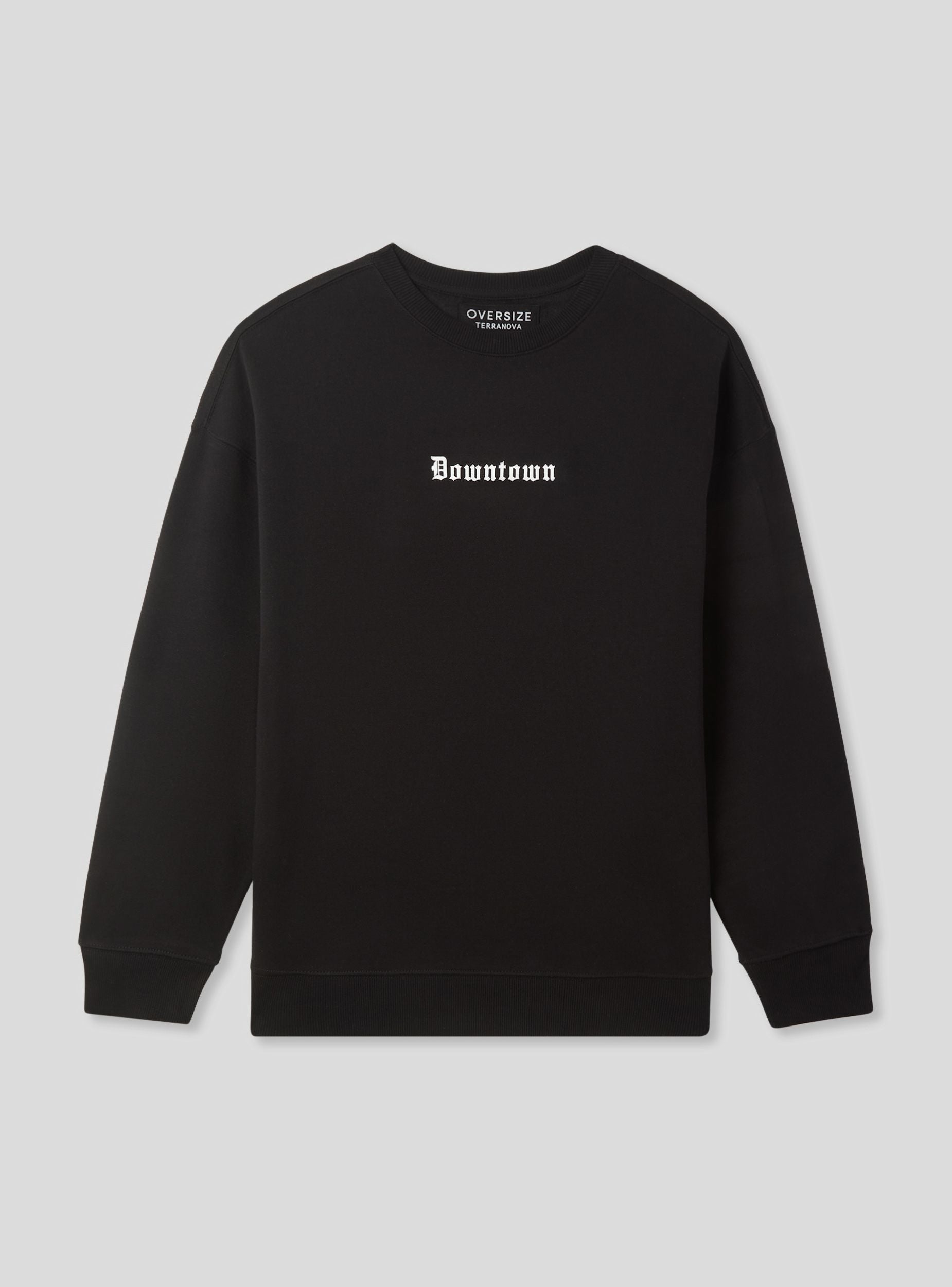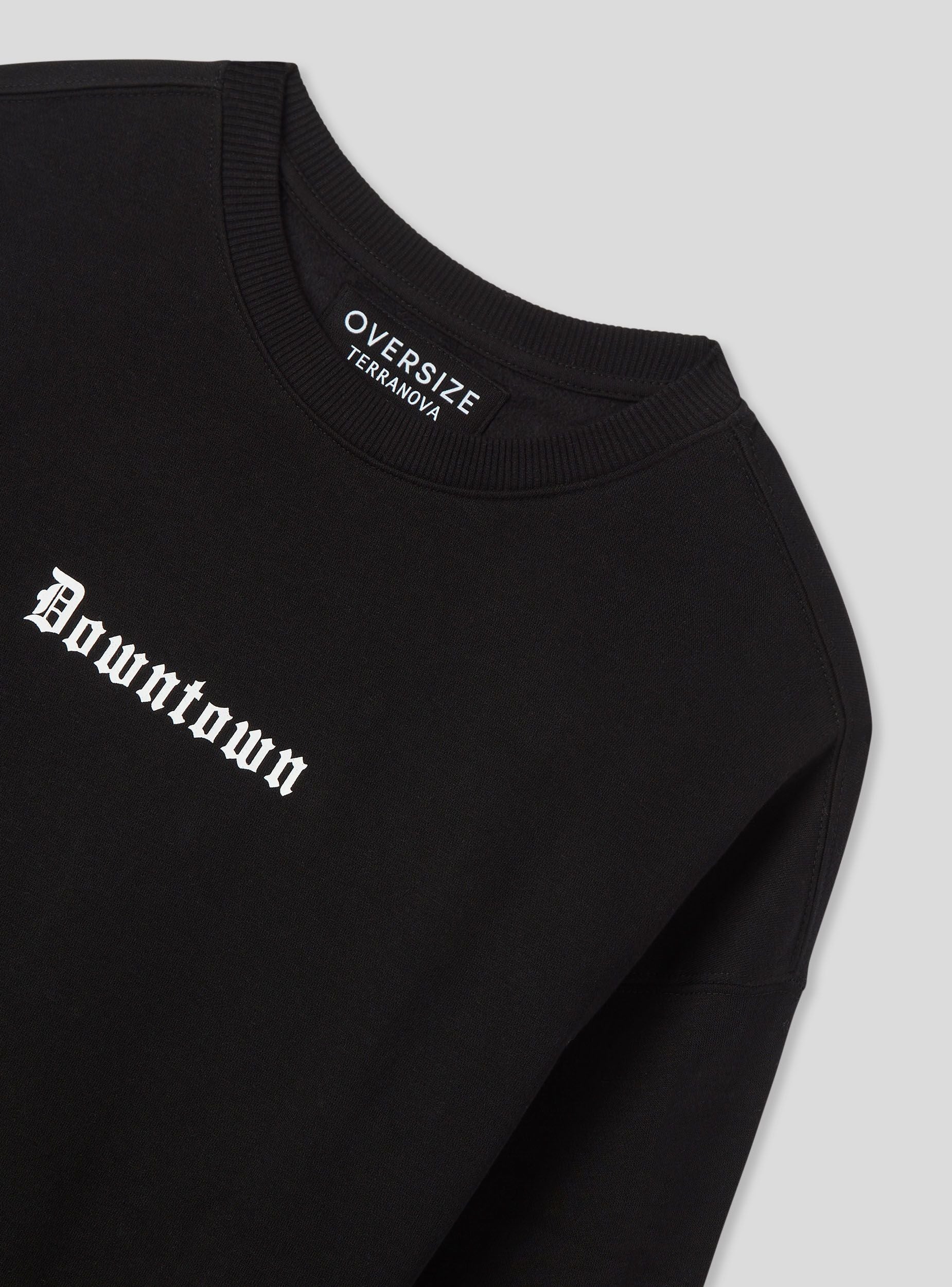 Hanorac oversize me shkrime në stil gotik përpara/pas