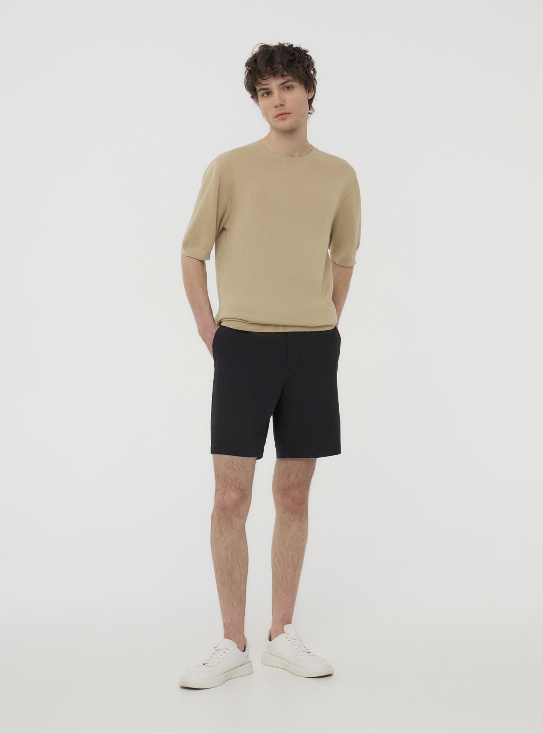 Pantallona të shkurtra me ngjyrë të njëtrajtshme për burra, ideale për një pamje të rastësishme dhe të relaksuar, perfekte për kohën e lirë ose për një veshje verore. Të karakterizuara nga një përshtatje të rregullt, me mbyllje me düsh, zip dhe kordë. Kanë një elastik në brez dhe xhepa diagonale. Një pjesë e shumëanshme dhe e rehatshme për ata që kërkojnë praktikë dhe stil në çdo rast.