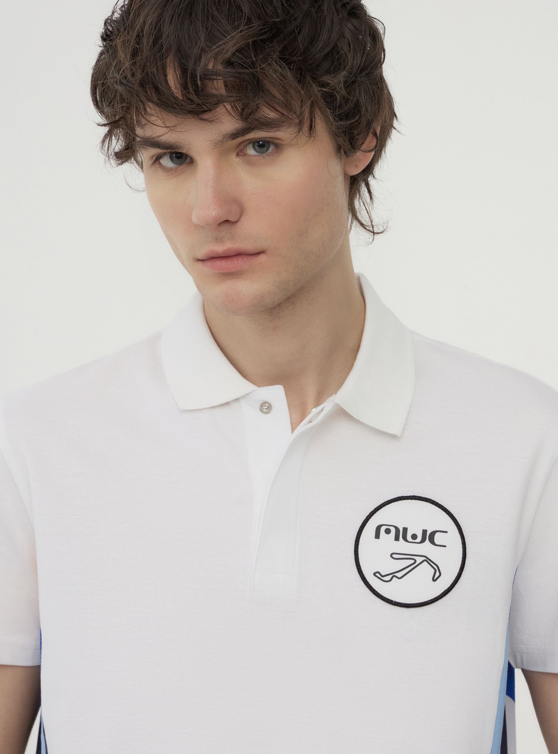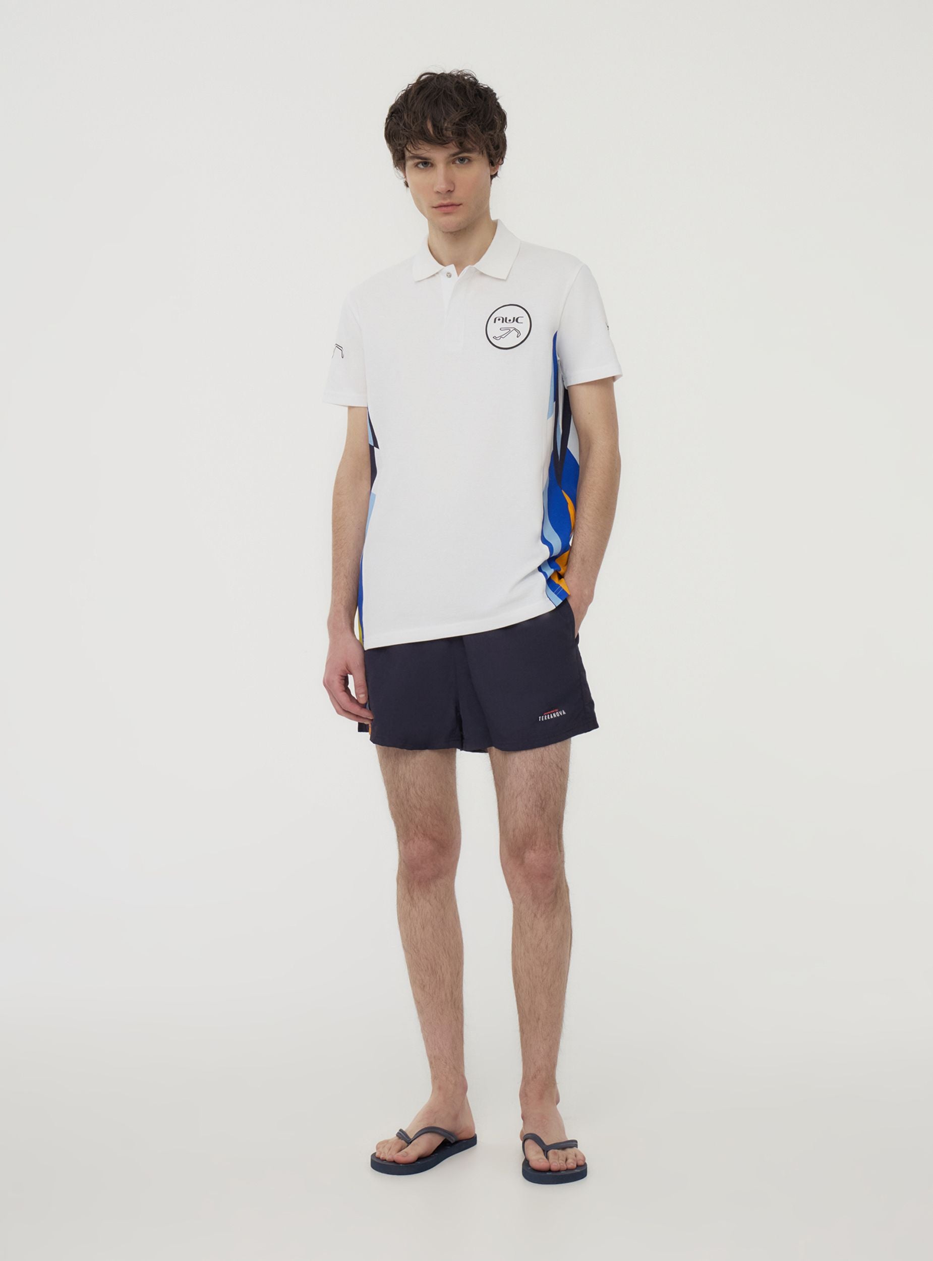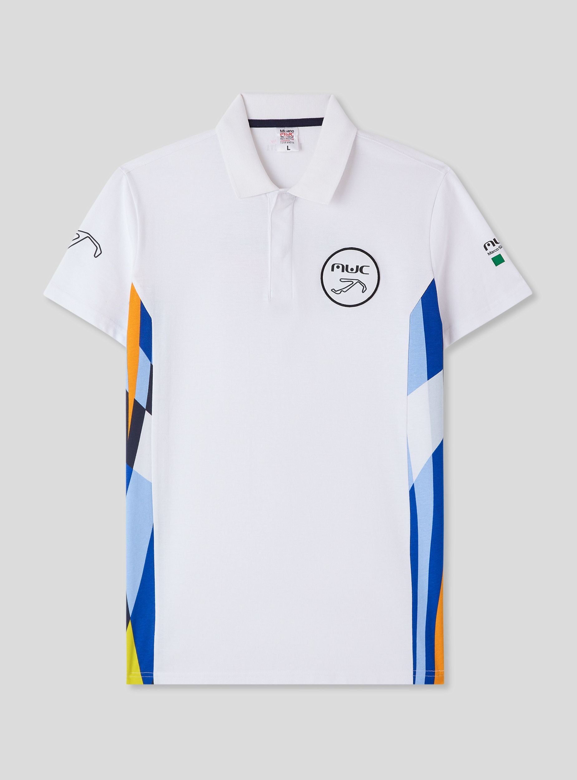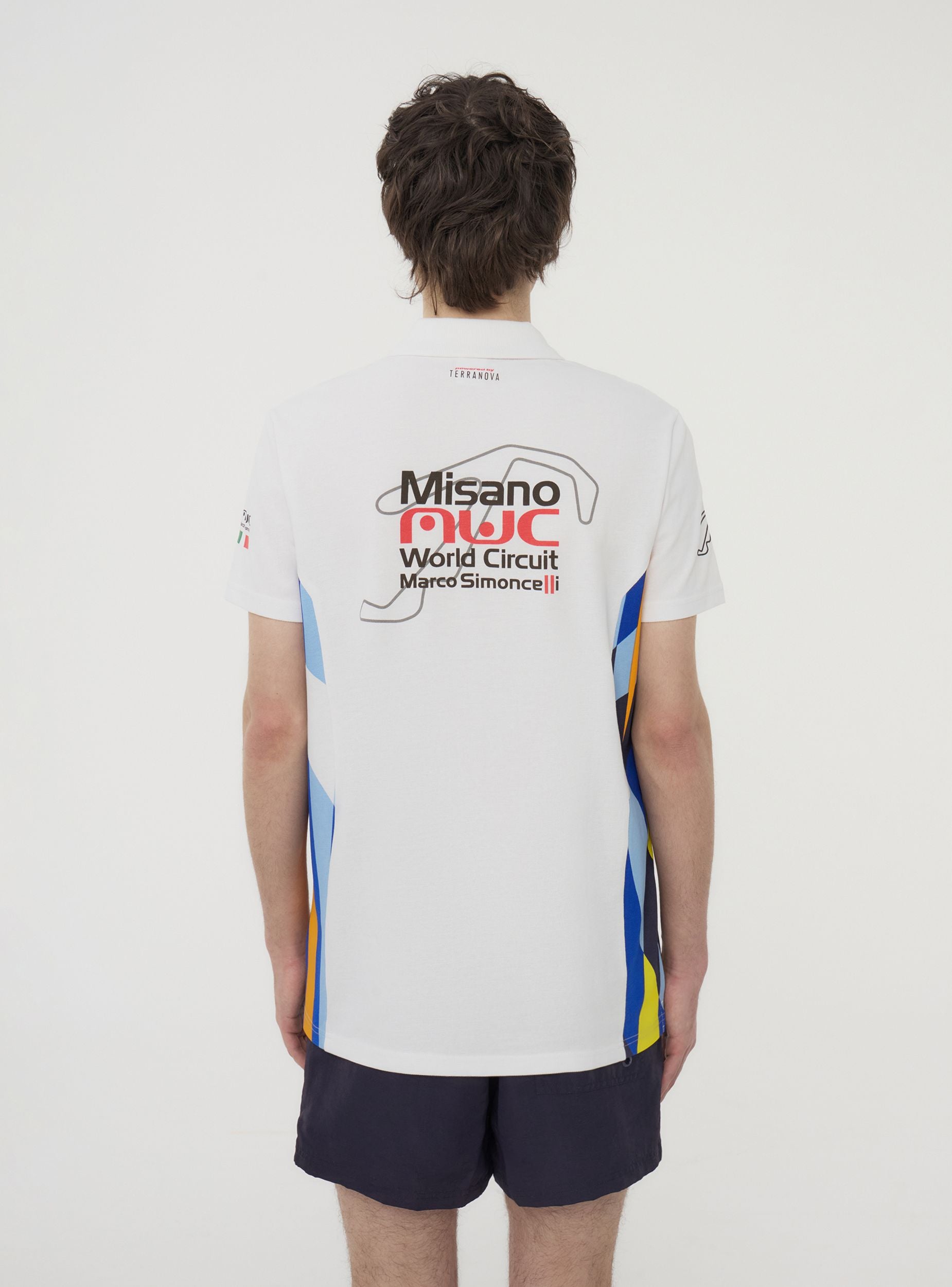 T-shirt për burra, model polo, me stripe anësore Misano World Circuit dhe shtypje në pjesën e prapme dhe në mëngë. Përshtatje normale.