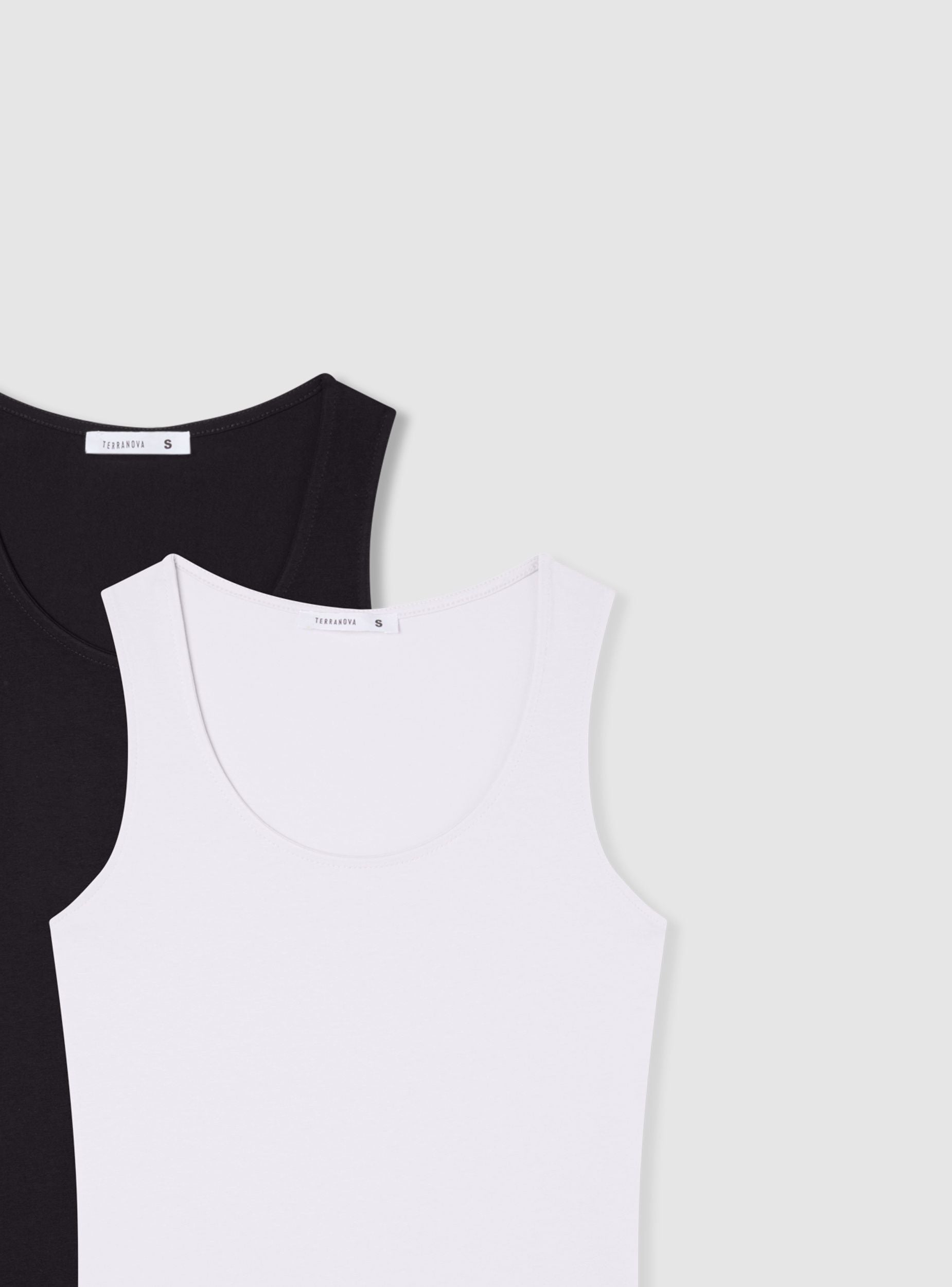 Paket përbëhet nga tre këmishë të grave, të realizuara nga një pëlhurë e butë pambuku elastik me ngjyrë të vetme. Çdo këmishë ofron një rehati të jashtëzakonshme falë frymëmarrjes dhe butësisë së pambukut, ideale për përdorim të përditshëm. Dizajni pa mëngë dhe përshtatja e ngushtë theksojnë siluetën, duke i bërë ato perfekte për t'u veshur si vetëm, ashtu edhe nën veshje të tjera. Shto shumëllojshmëri në garderobën tënde me këtë paketë praktike prej tre këmishash bazë.