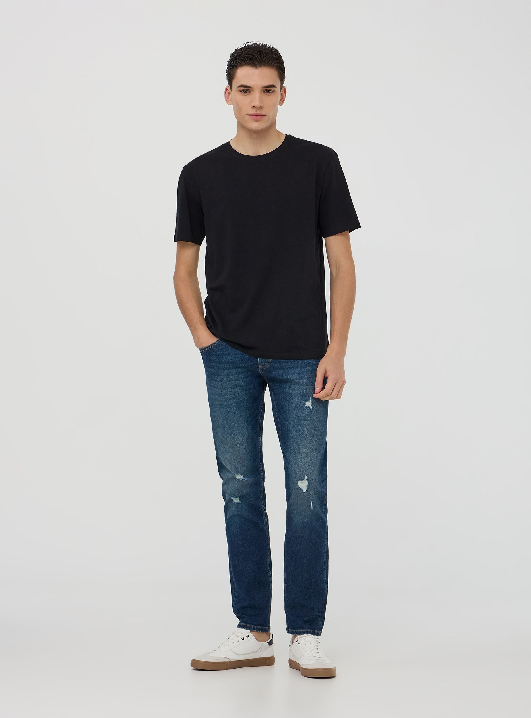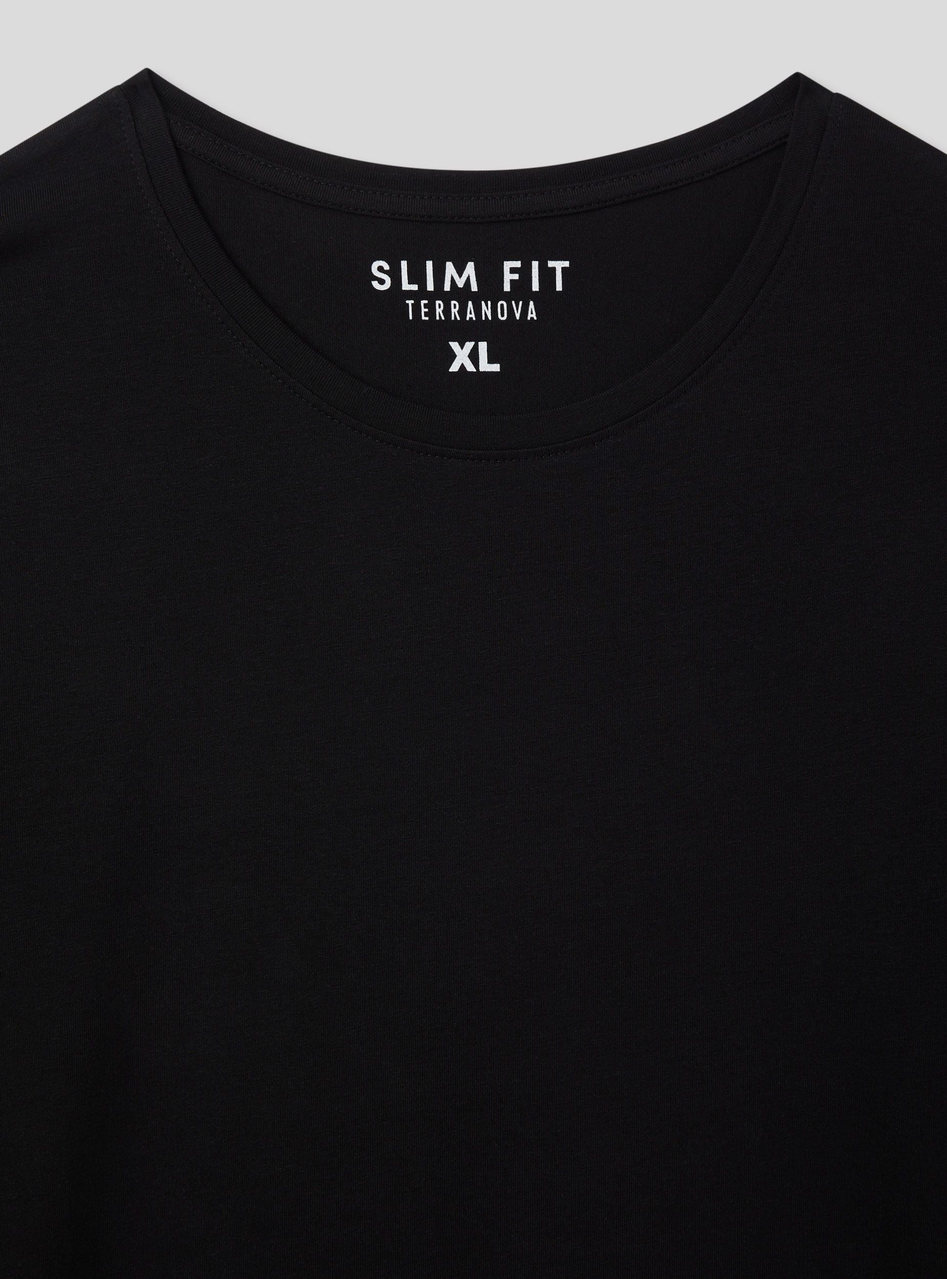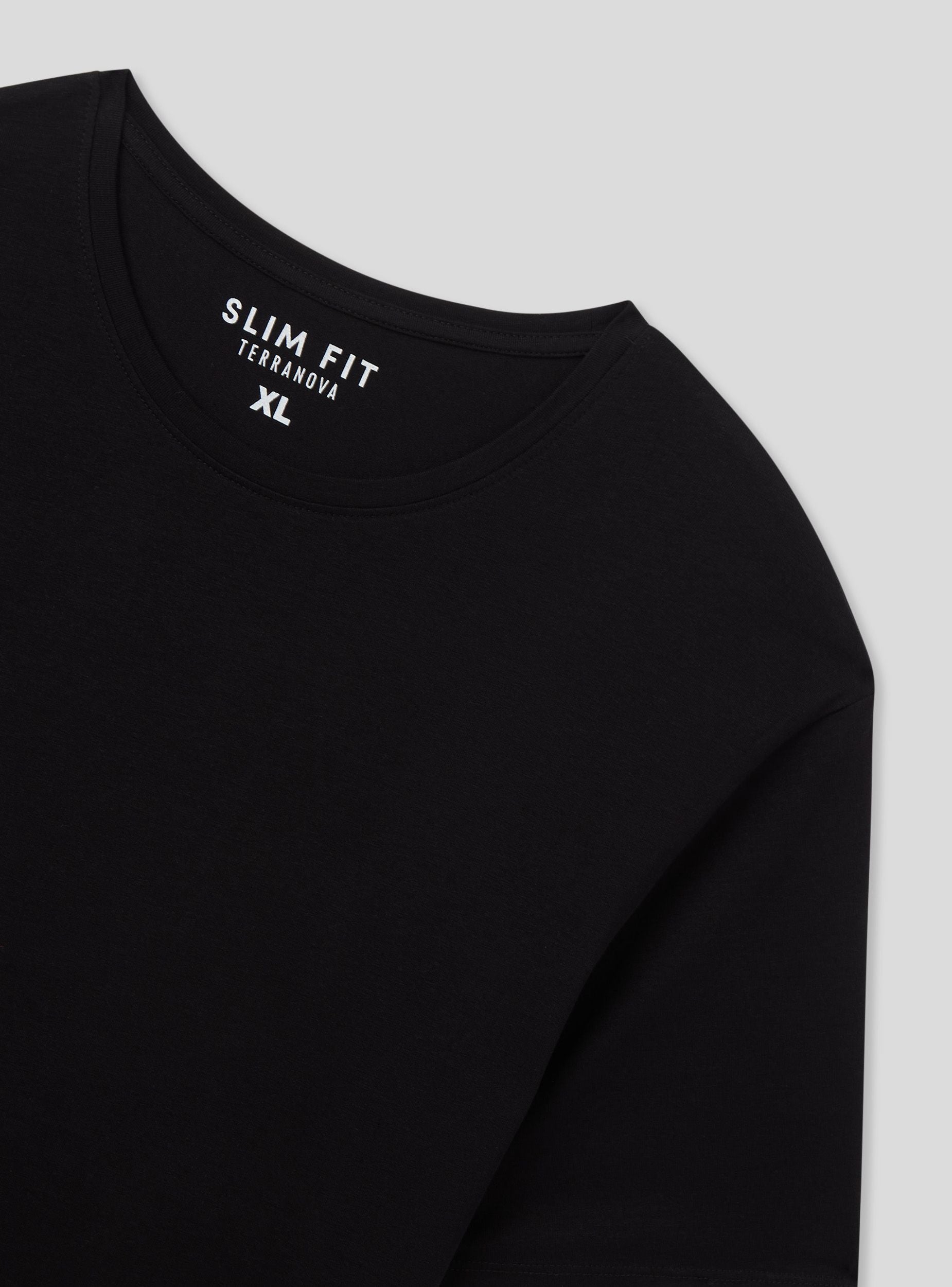 Të gjitha përshkrimet e mësipërme janë të përshtatshme për një bluzë për burra, ideale për një pamje të rastësishme dhe dinamike, e përsosur për kohën e lirë ose për një veshje sportive. E karakterizuar nga një përshtatje ngushtë dhe elastike, ka një dizajn me ngjyrë të vetme me mëngë të shkurtra dhe qafë rrethore. Një zgjedhje shumë funksionale për ata që kërkojnë komoditet dhe stil në çdo rast.