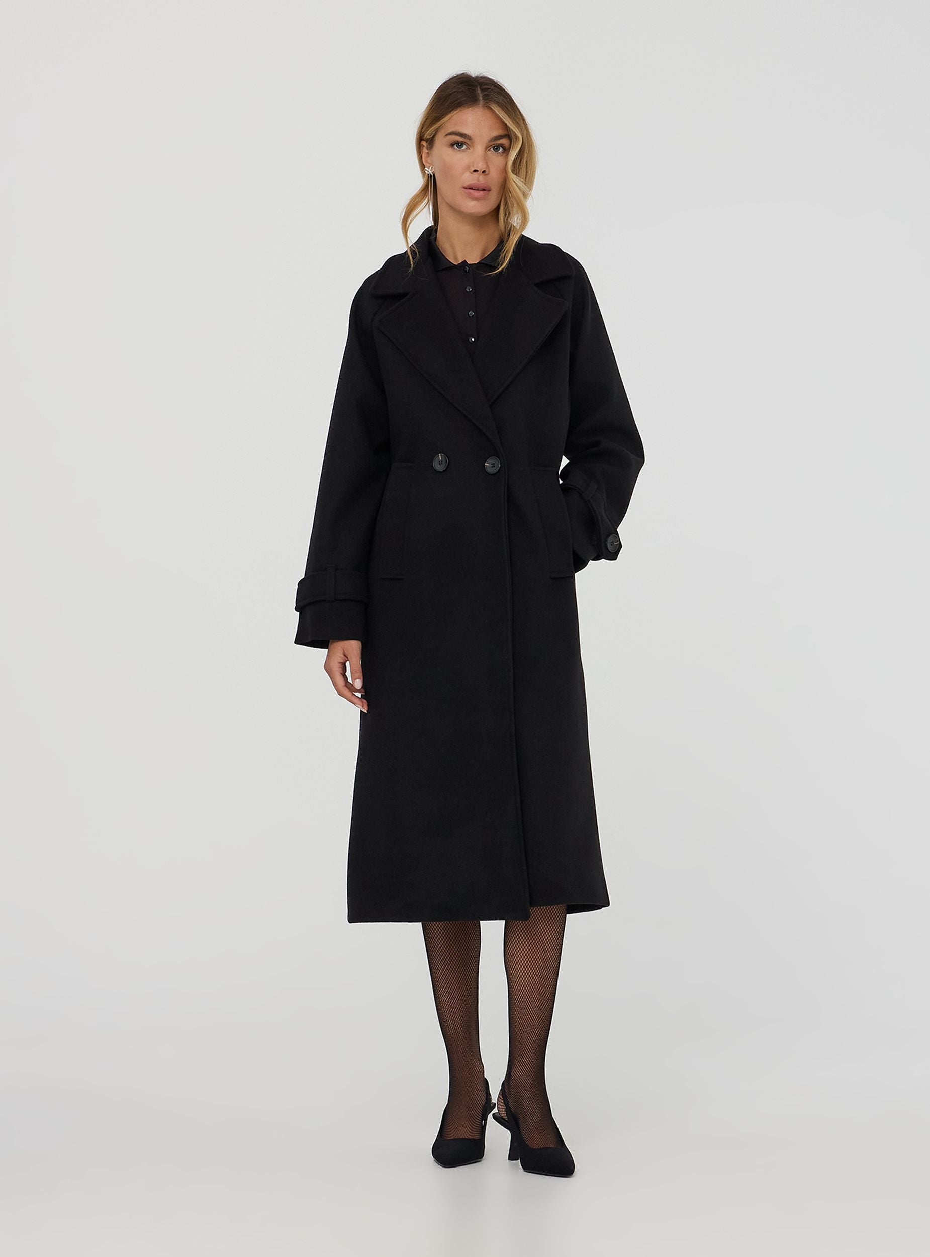 Pëlhurë për gra me stil të rafinuar dhe pa kohë, e karakterizuar nga një linjë e gjatë që vlerëson figurën. Dizajni me dy butona, i pasuruar me butona përpara, i jep një prekje stili, ndërsa reversat e gjera shtojnë elegancë dhe strukturë. E përsosur për të kompletuar pamje formale ose të rastësishme, kjo pëlhurë përshtatet në raste të ndryshme, duke garantuar gjithmonë një pamje sofistikuar dhe të përsosur.Detajet